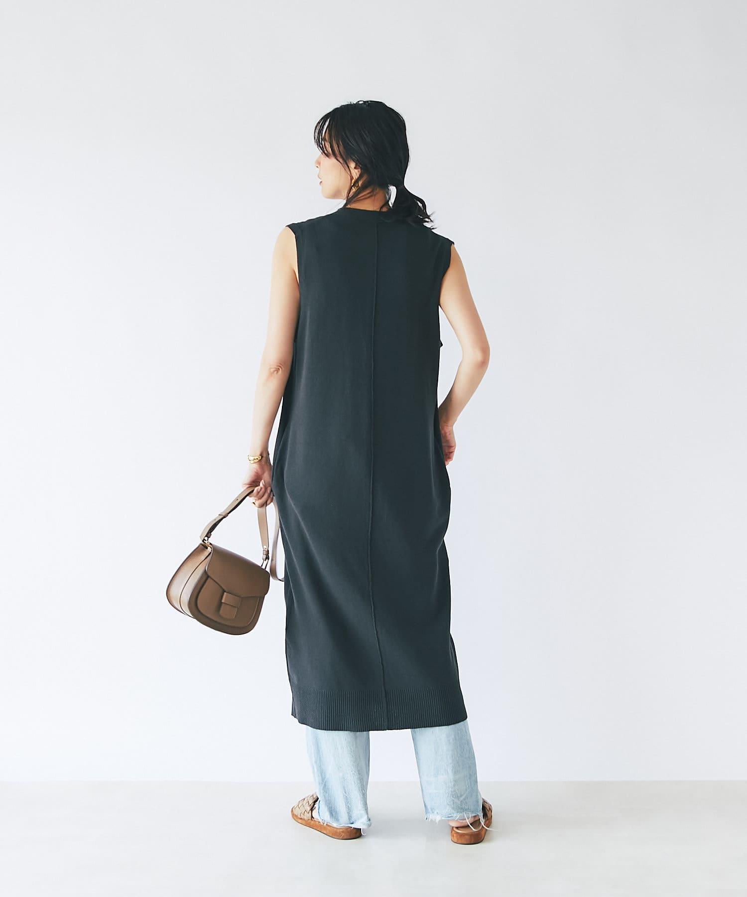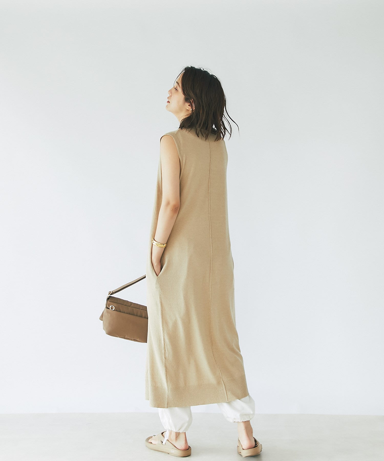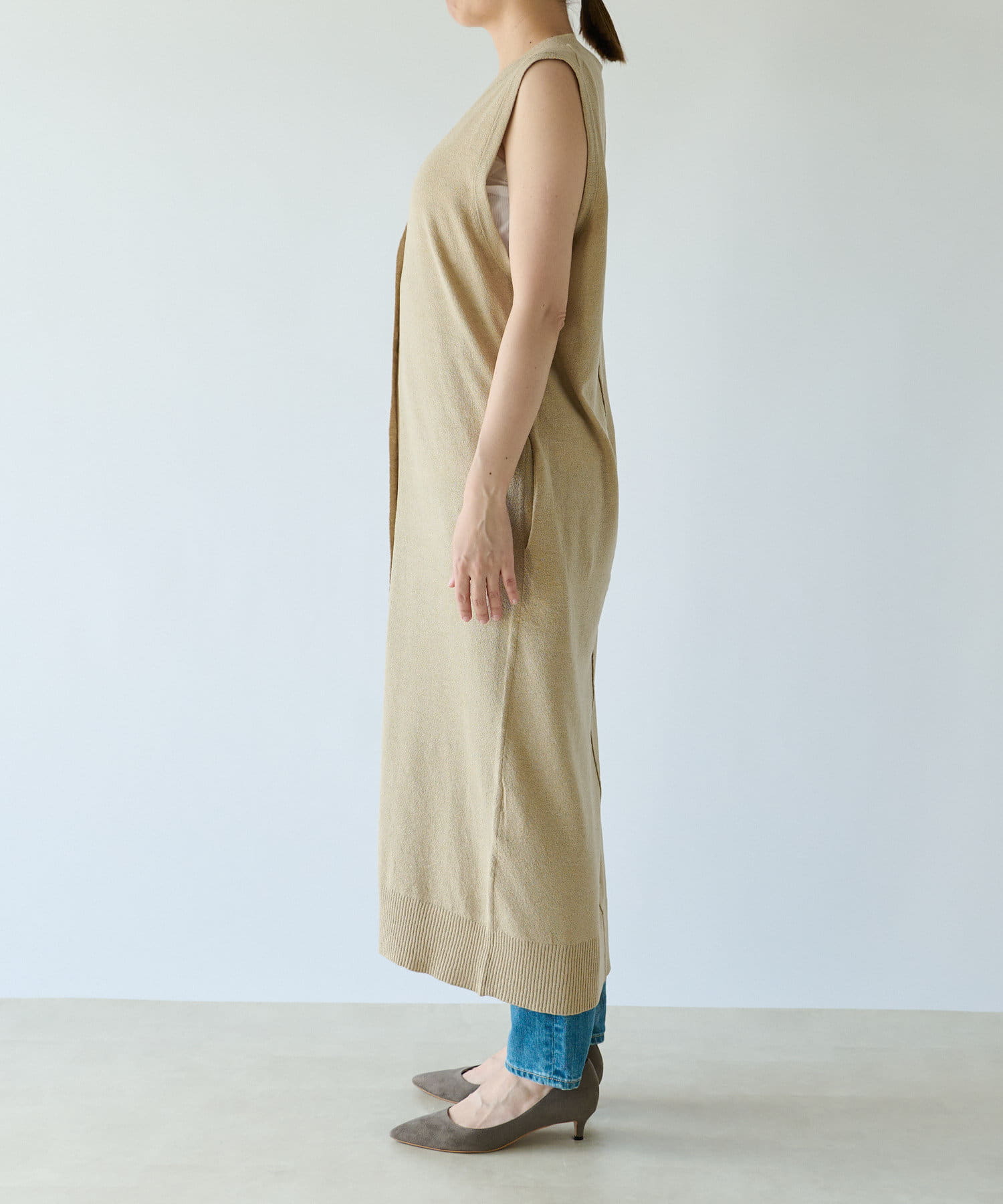 TOP > RIVE DROITE > レディース > トップス > ベスト/ジレ > 【コーディネートを格上げする】リネン混ロングジレニット