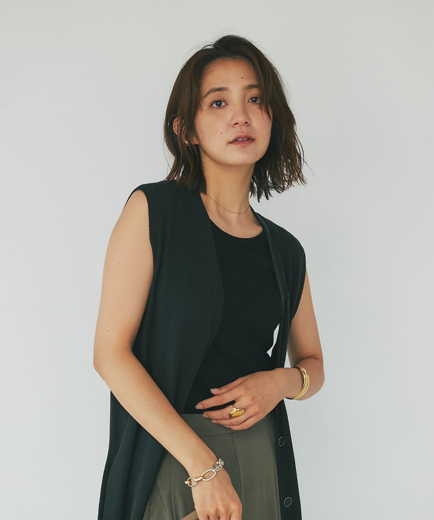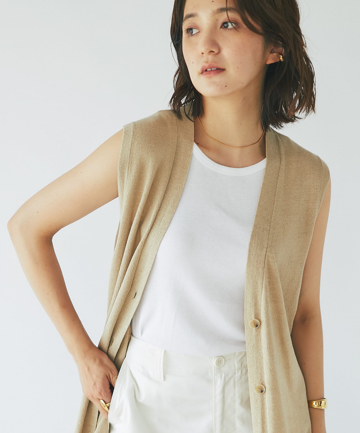 • スタイリングを格上げしてくれる大人のジレです