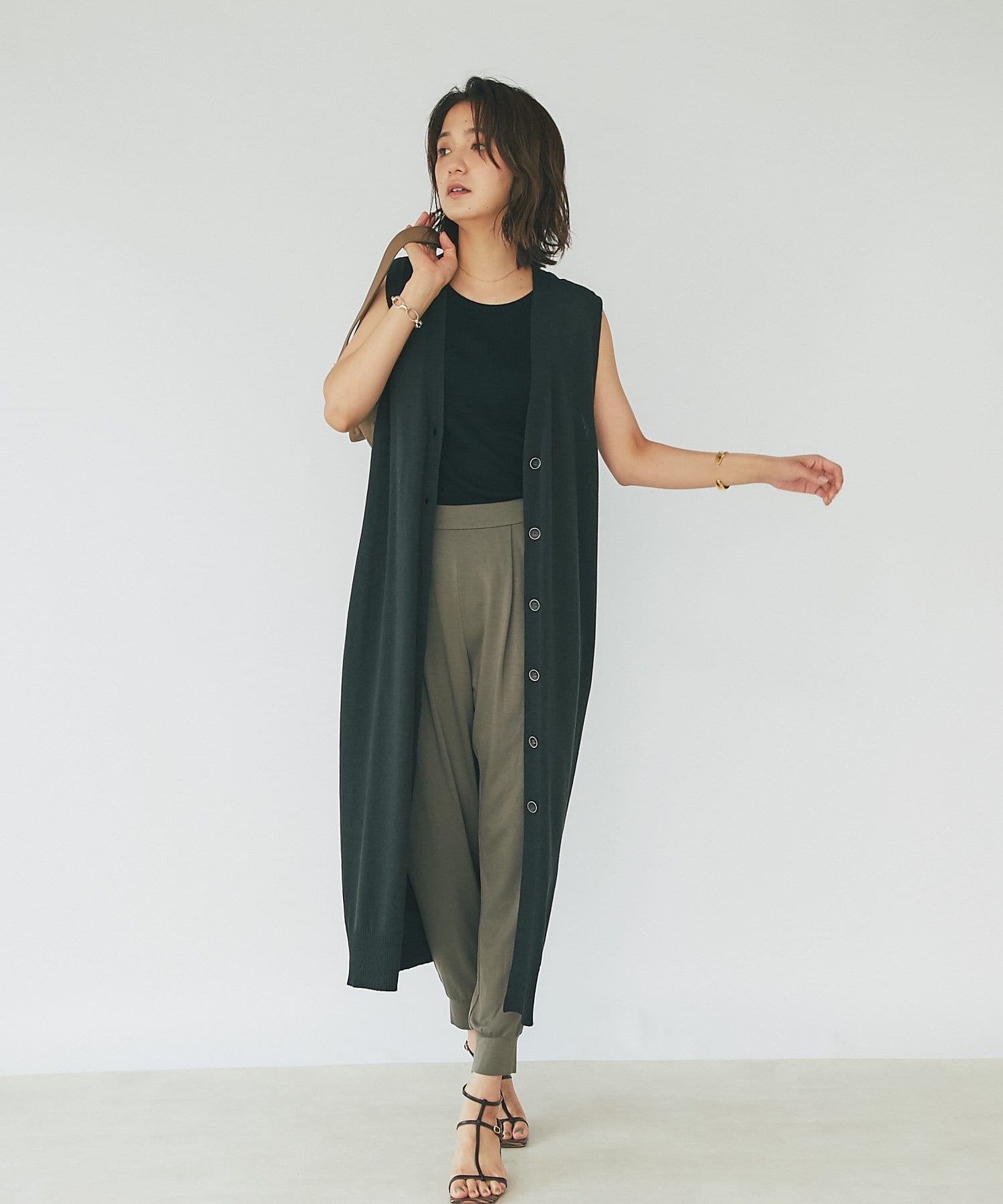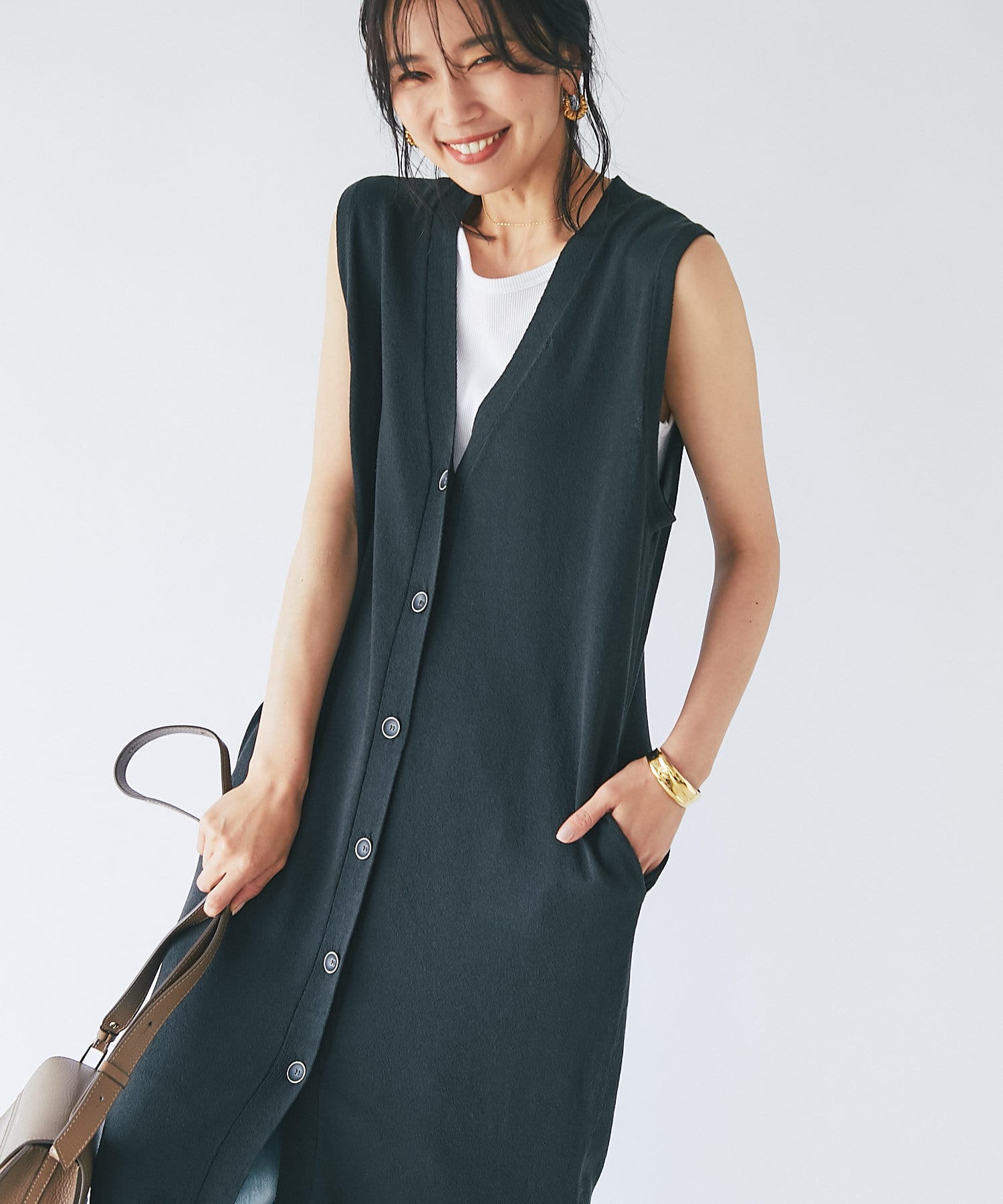 スタイリングを格上げしてくれる大人のジレです。