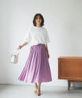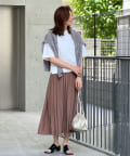 • フェミニンなピンクスカートで上品さを残しつつ甘すぎないコーディネート