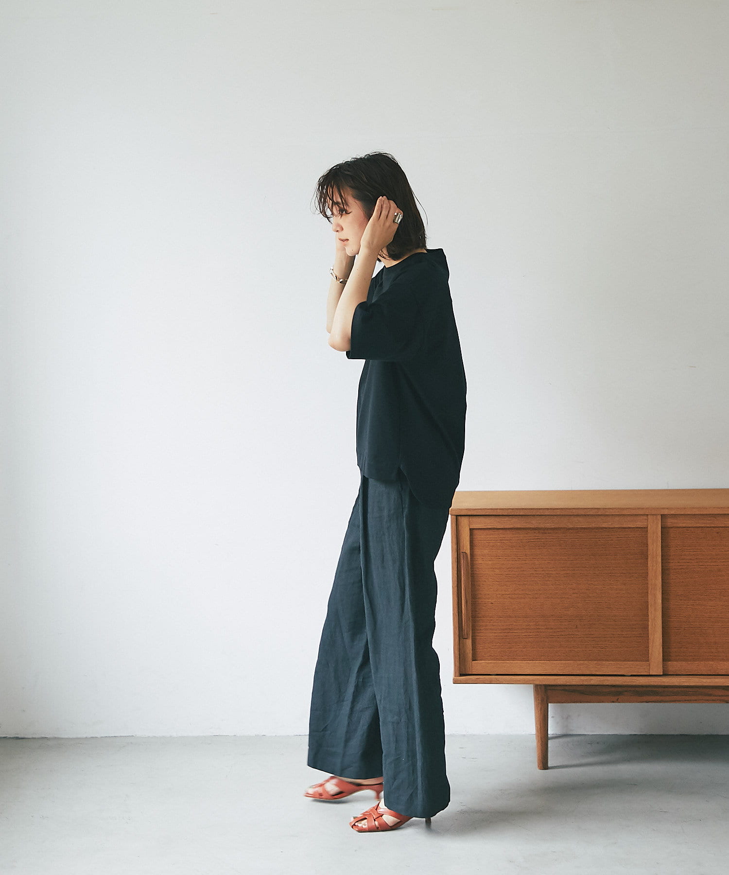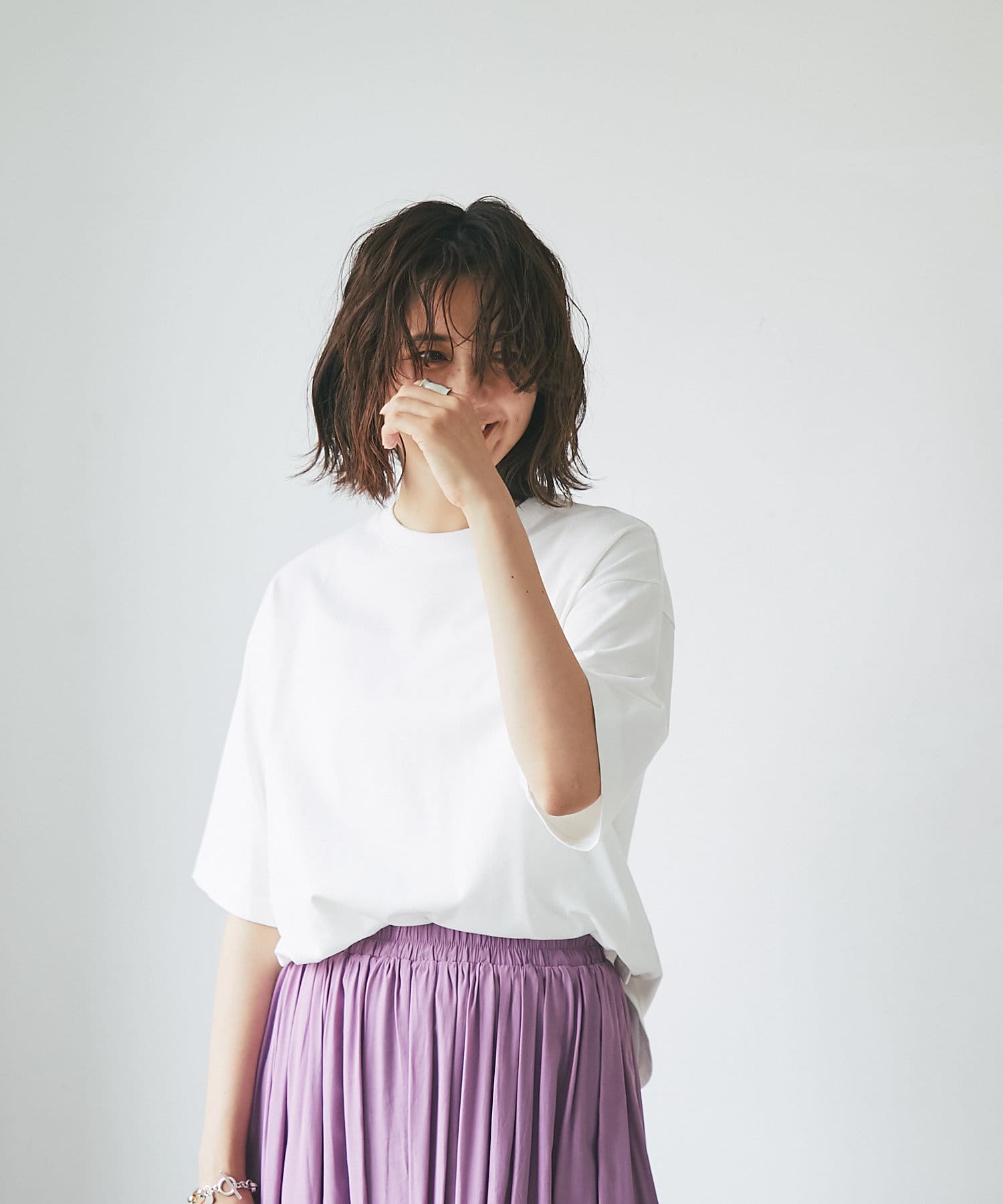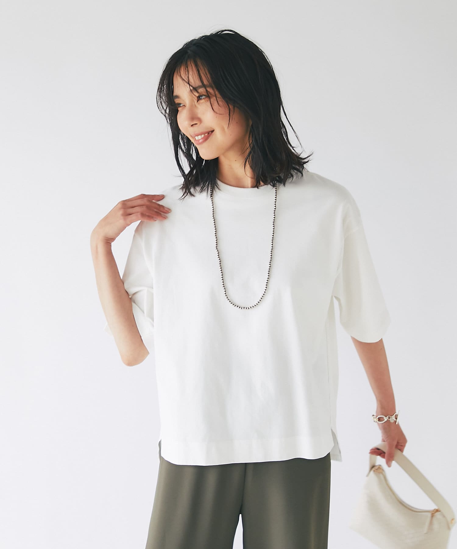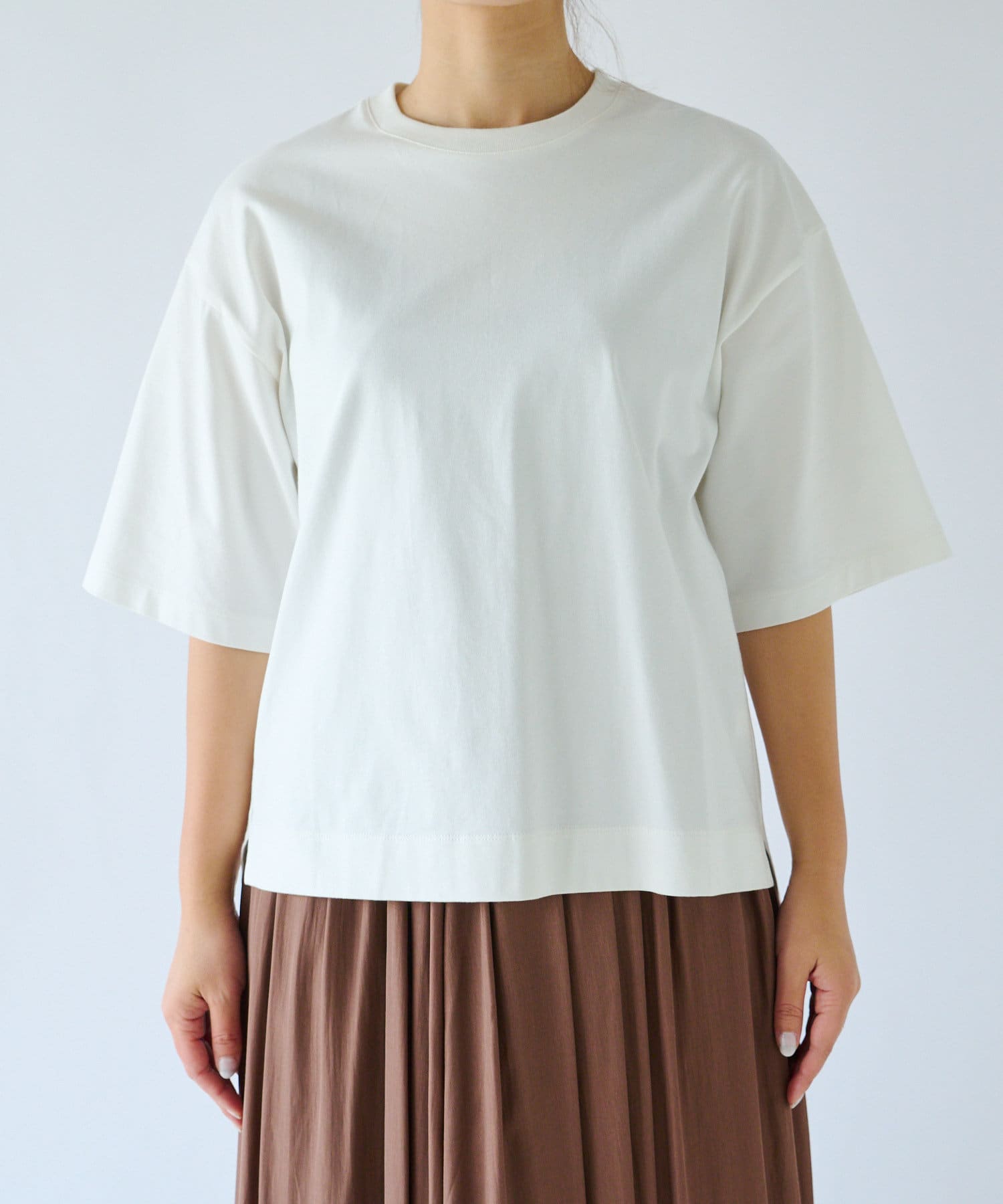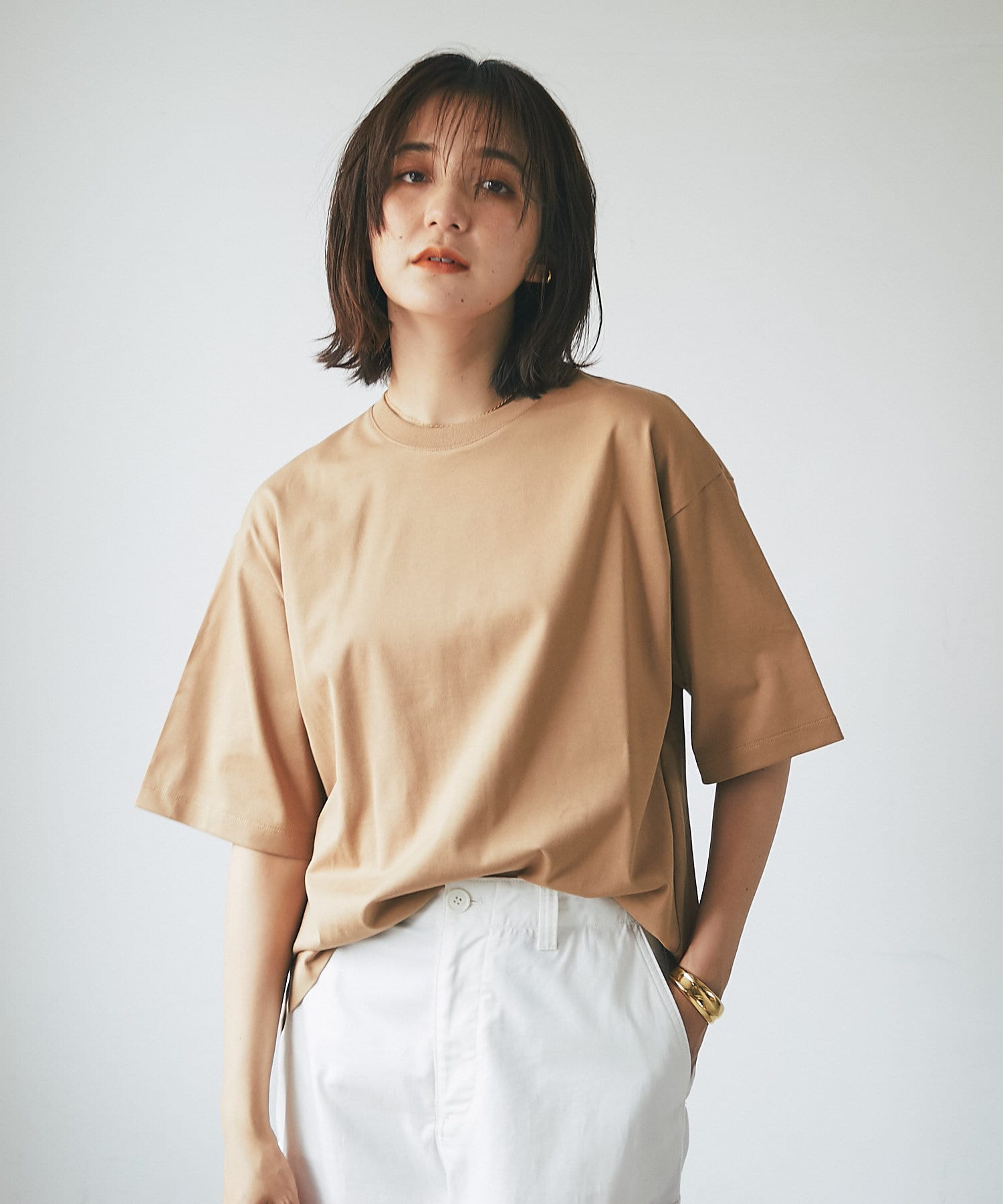 • ドロップショルダーがカジュアルな印象のカットソー