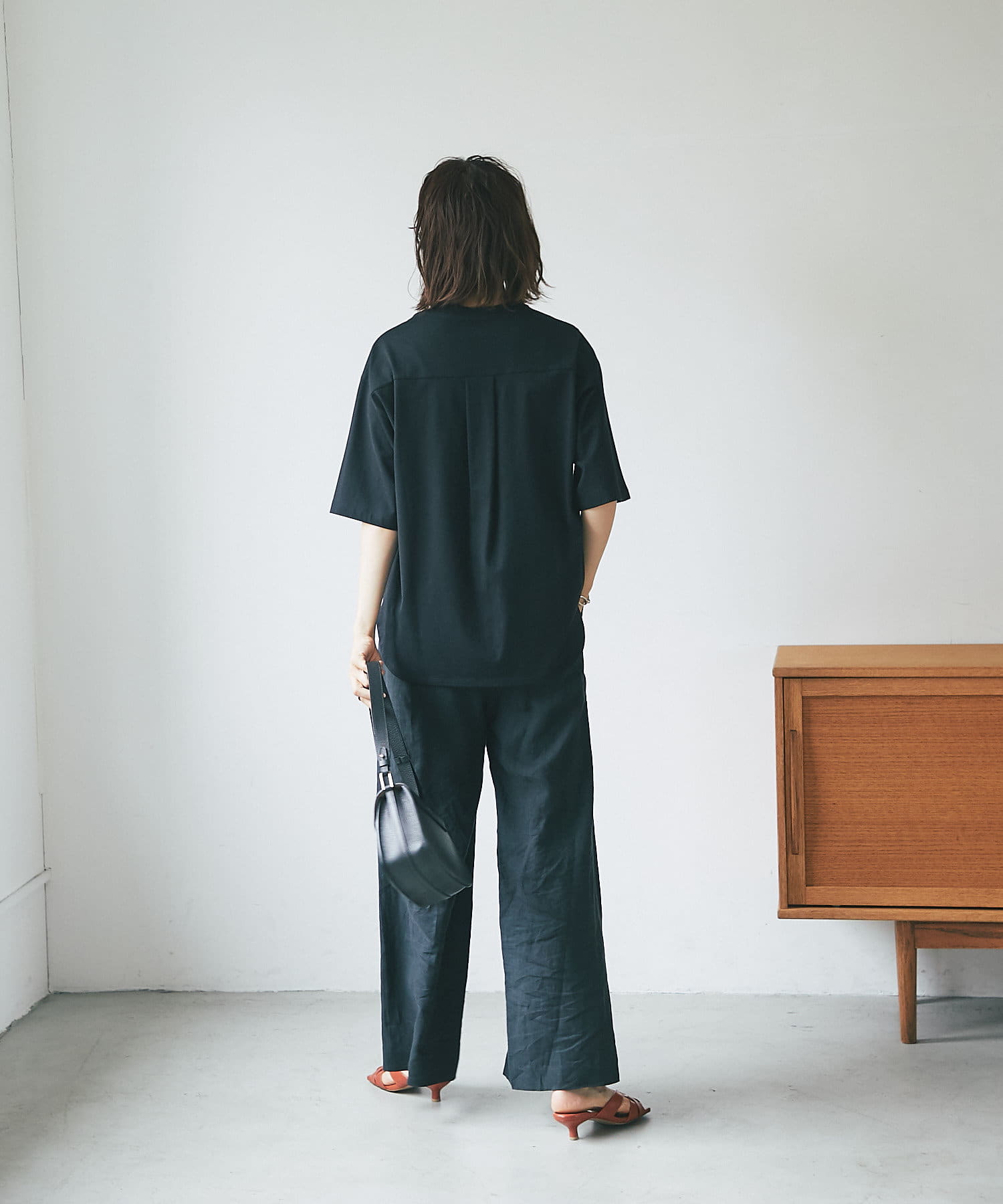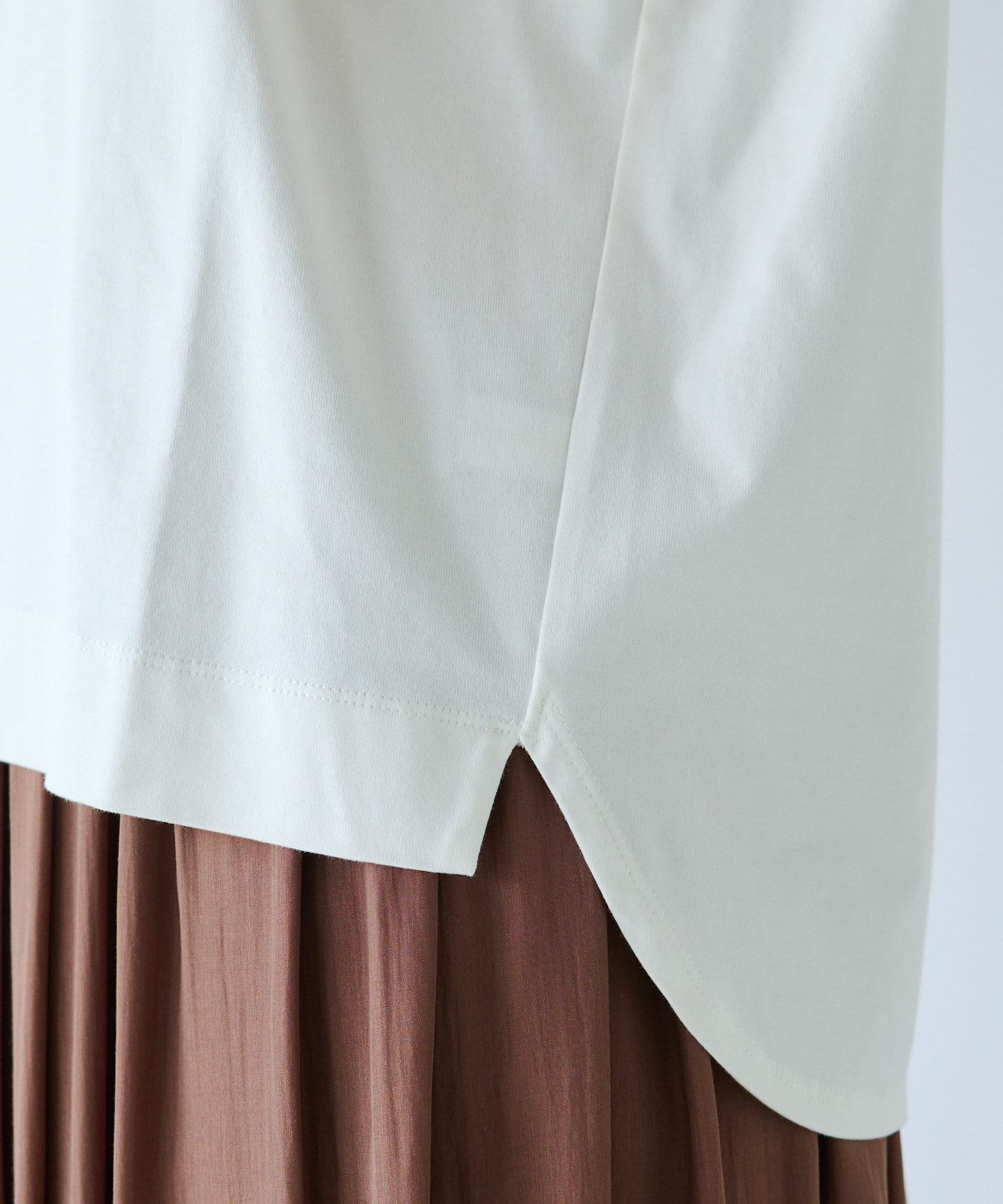 • 二の腕カバーが叶う袖丈とラウンドしたバックスタイルが女性らしい一枚