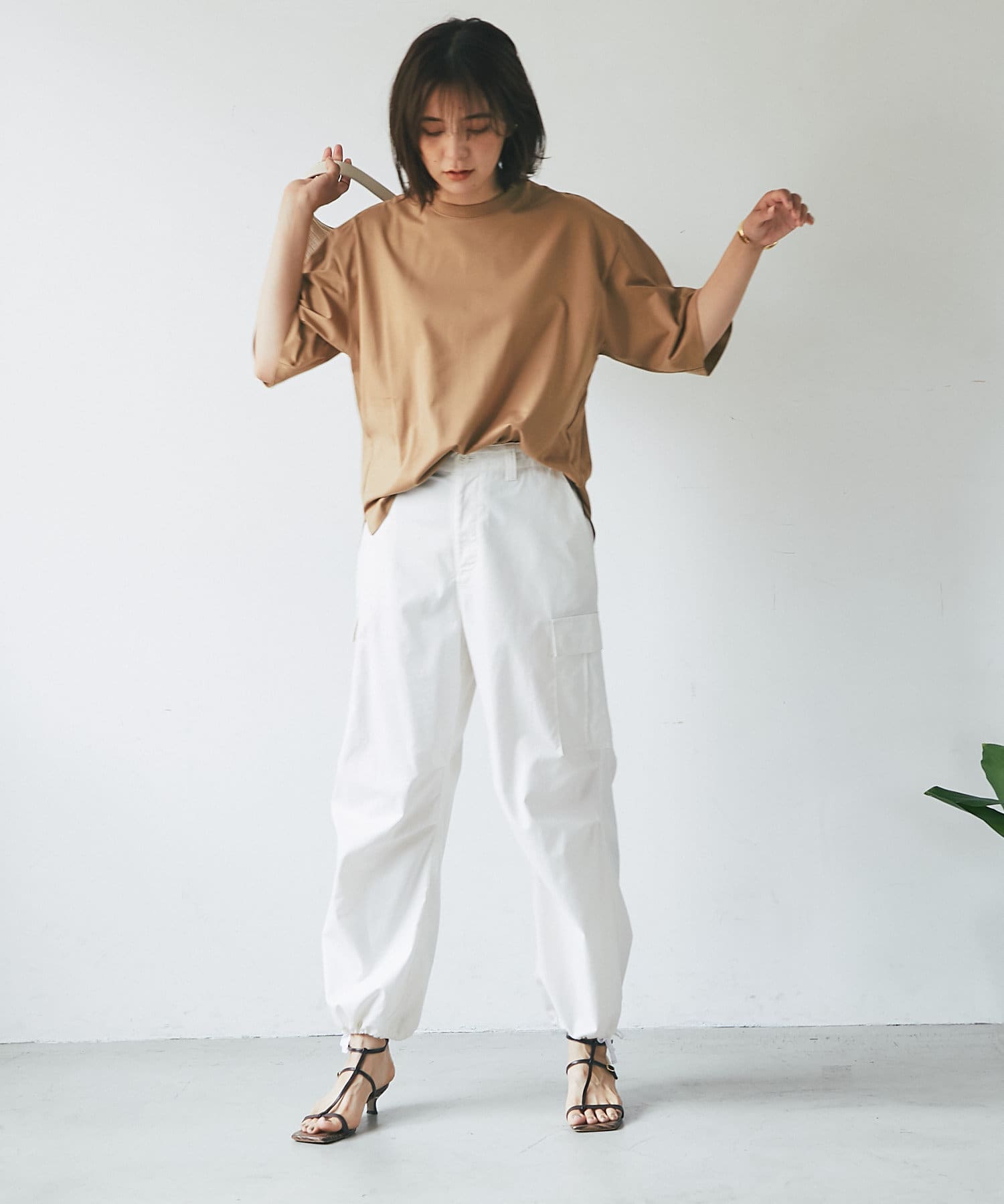 • ホワイトアイテムに映えるキャメル