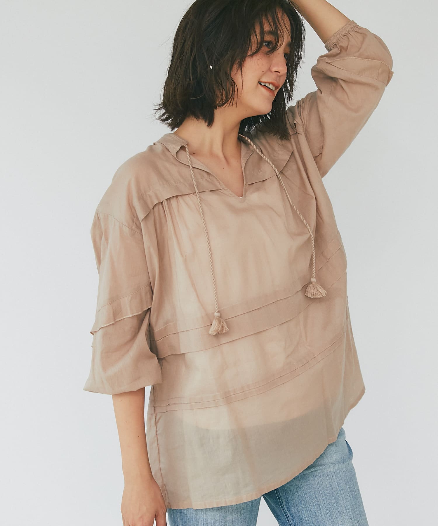 【女性らしいエアリーな風合い】ボイルタックブラウス
