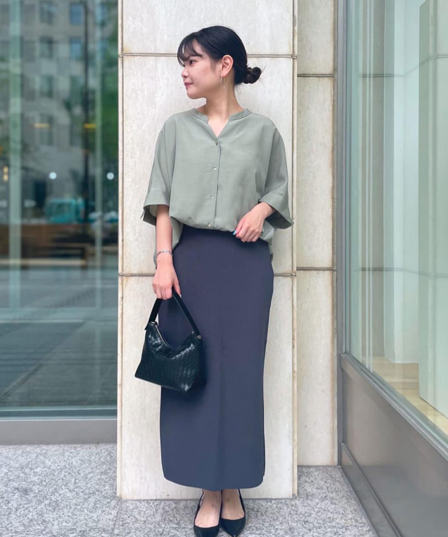 • 程よいツヤ感がキレイなブラウスは、二の腕もしっかりカバーしてくれます☺︎