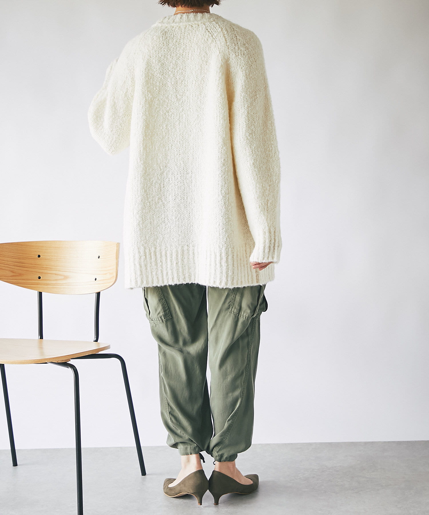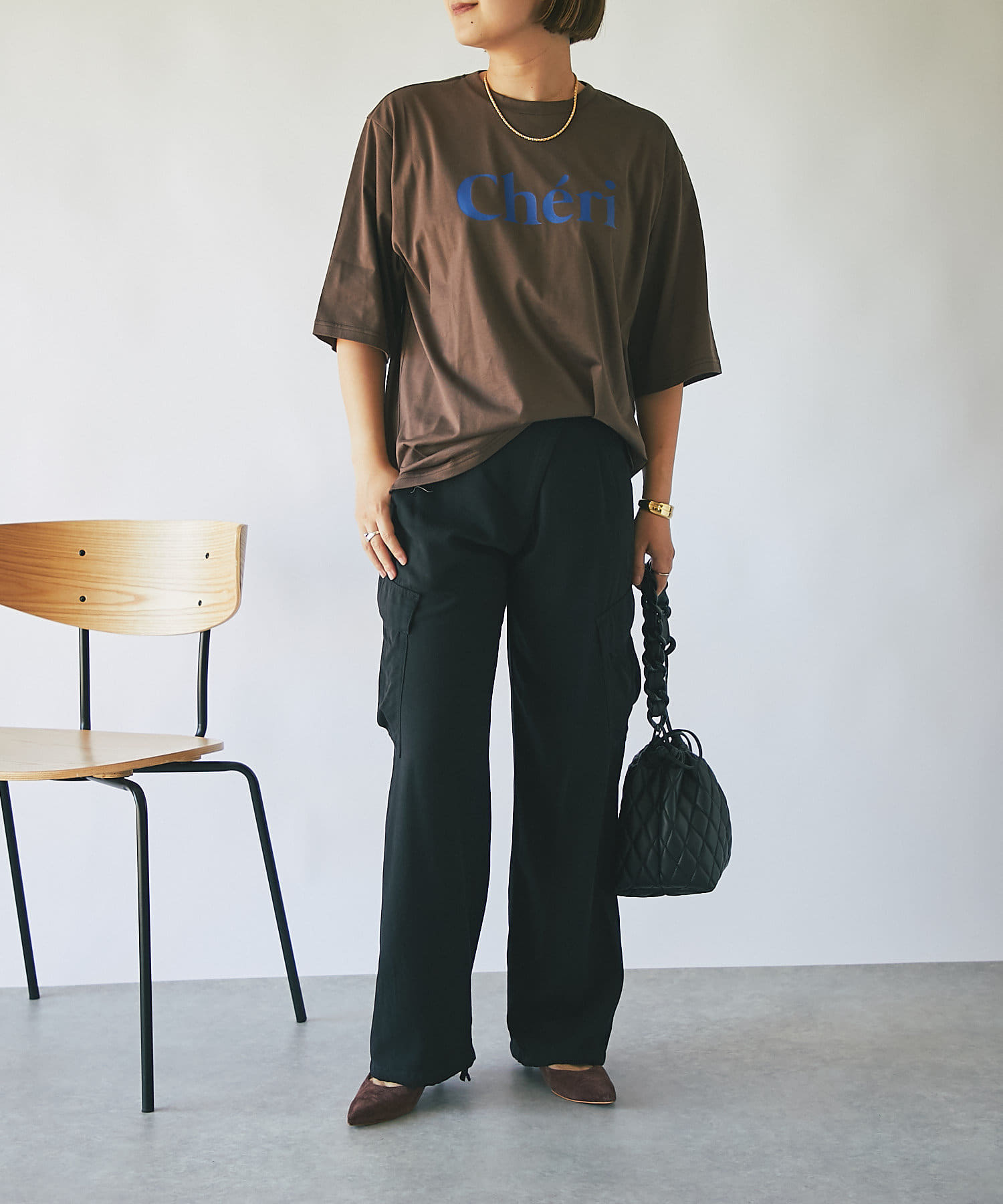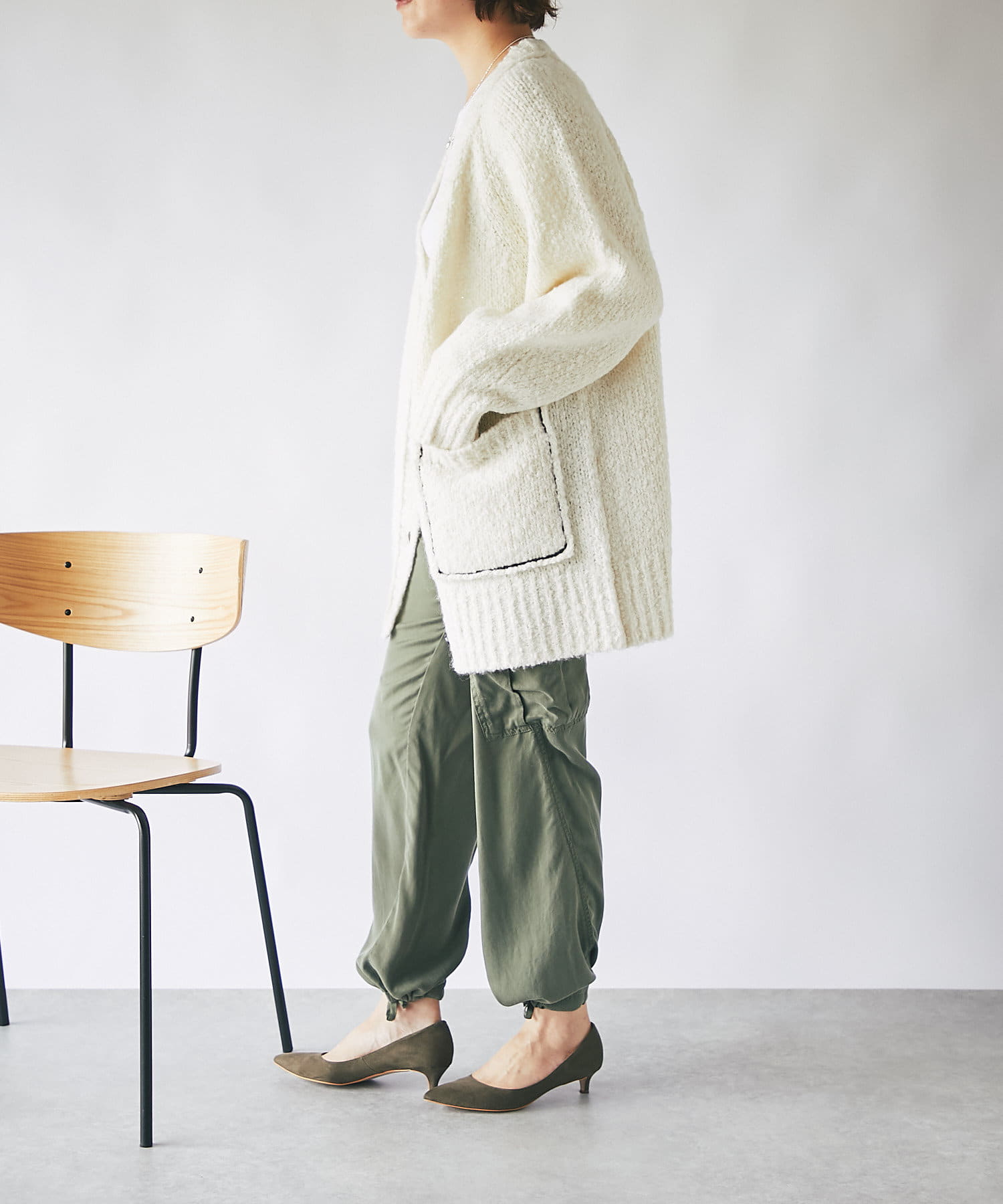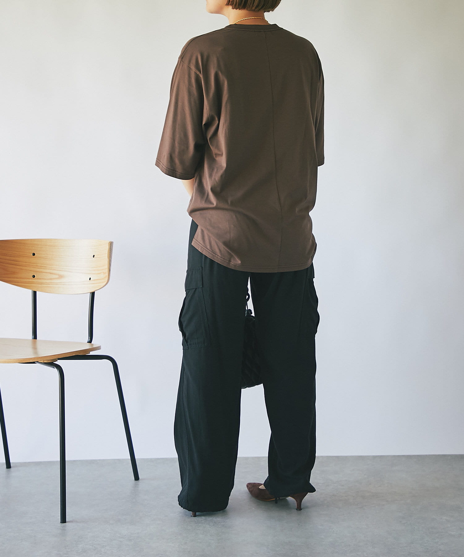 生地に落ち感があり、カジュアルになりがちなカーゴパンツを女性らしく着こなせます。