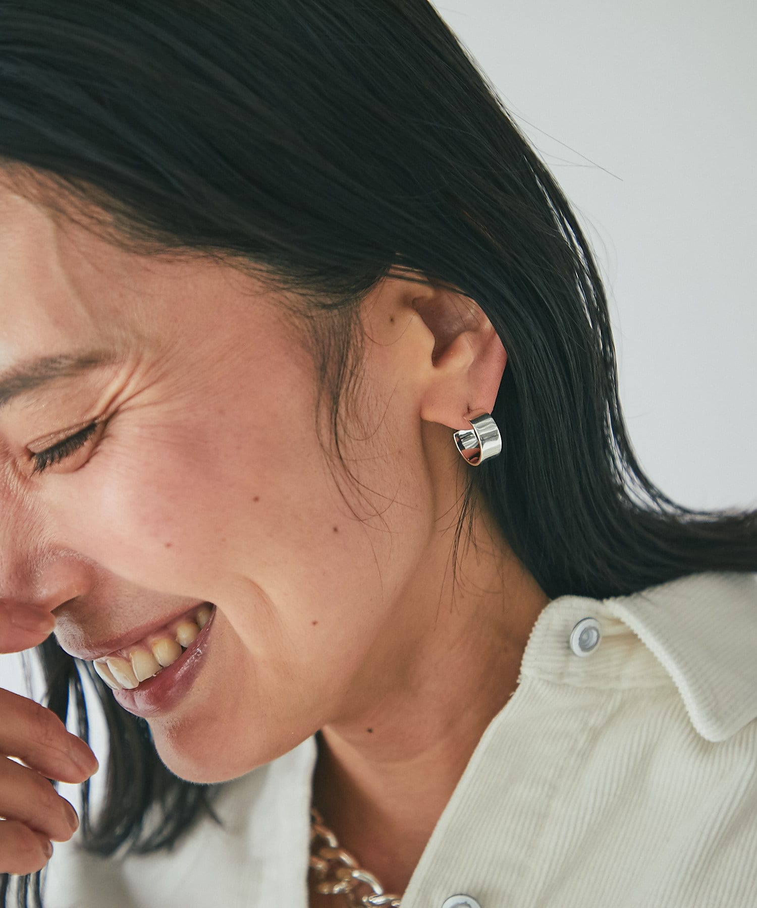 複数穴が開いている方は片耳にレイヤードをして付けるとさらにオシャレさがUP。