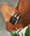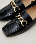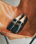 着こなしのスパイスになる大人の足元には欠かせないゴールドチェーンローファー。