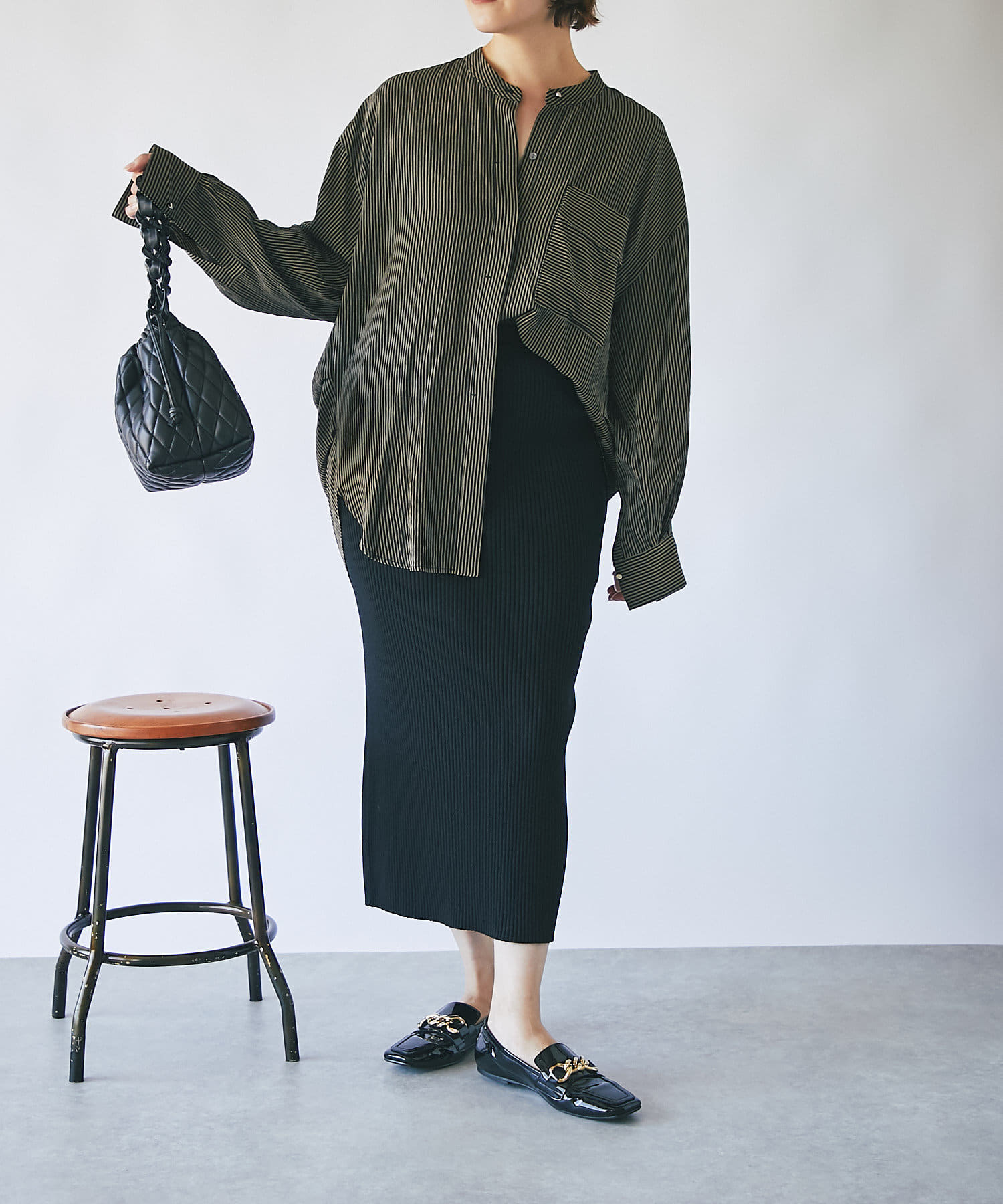マニッシュなデザインながらも、女性らしいアイテムの外しとしても使えるのでスタイリングを選ばずに着用出来ます。