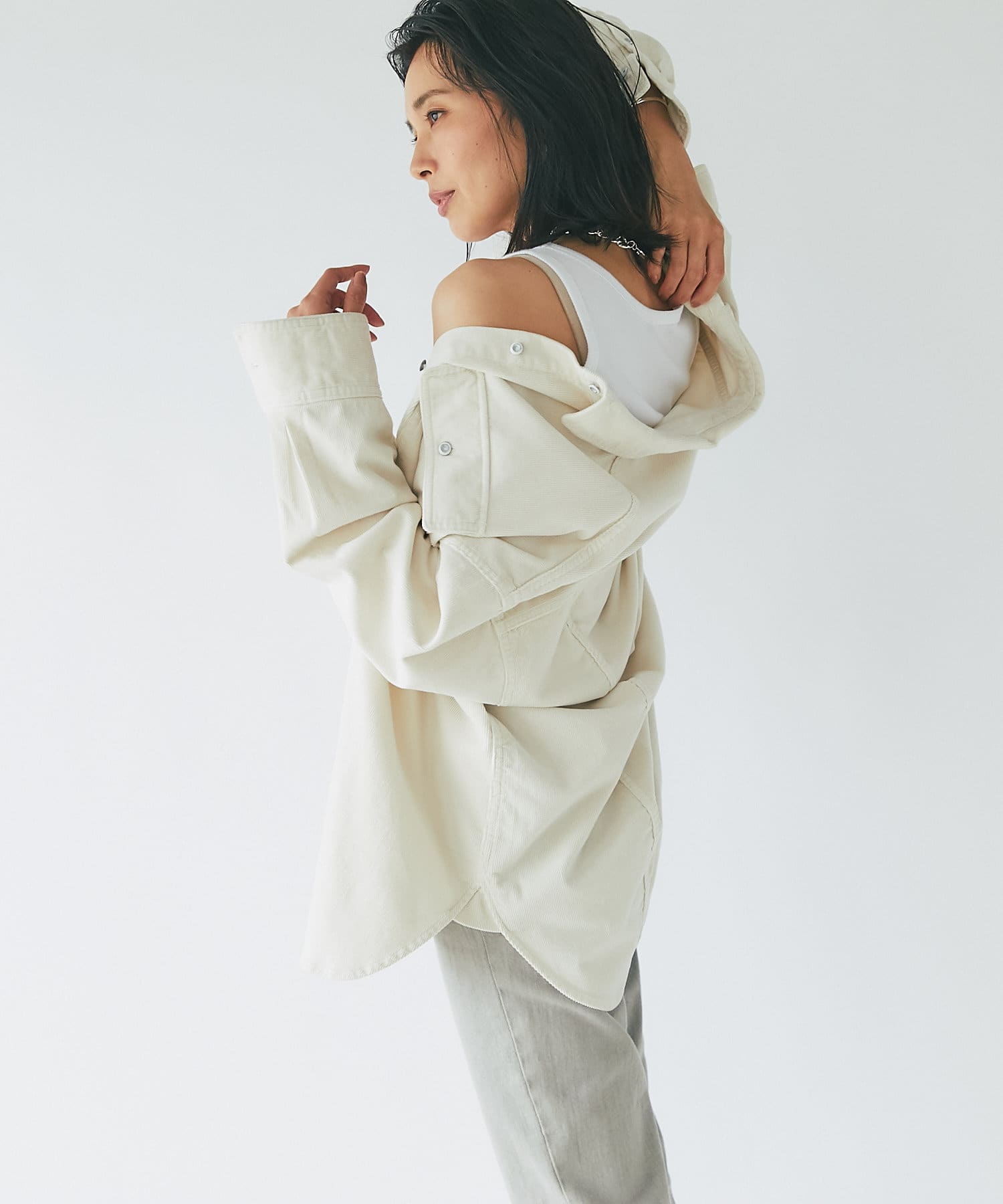 オーバーサイズなので女性らしさを感じられる1枚となります。