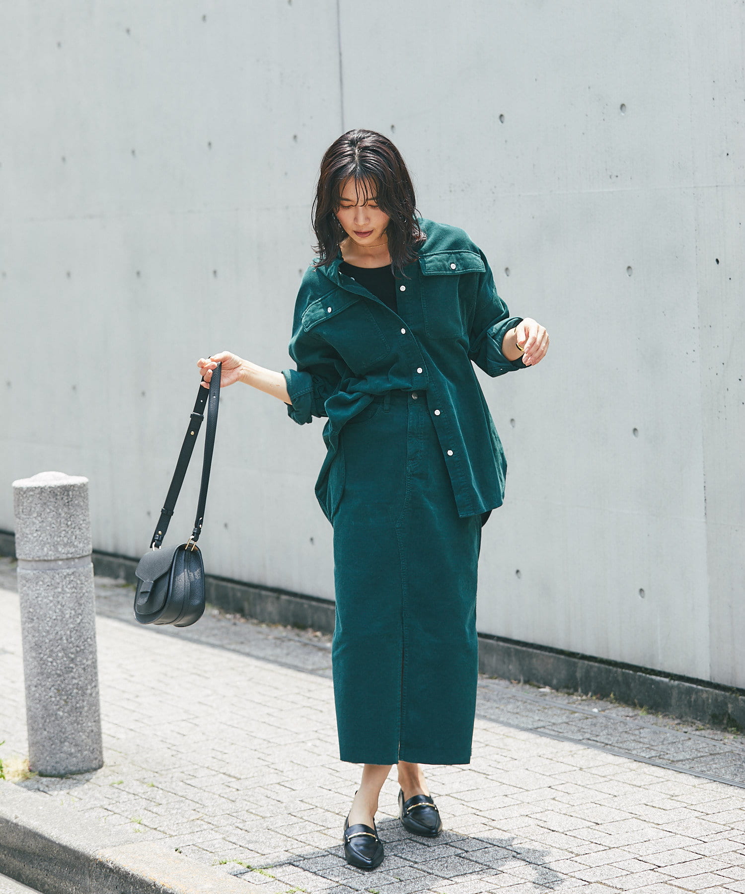 女性らしくタイトスカートやワンピスに羽織るのがオススメ。