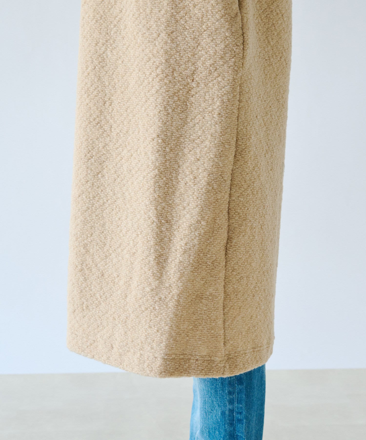 凹凸がある表面感と軽くてソフトな着心地が魅力的。ウール混になっているので、保温性も◎