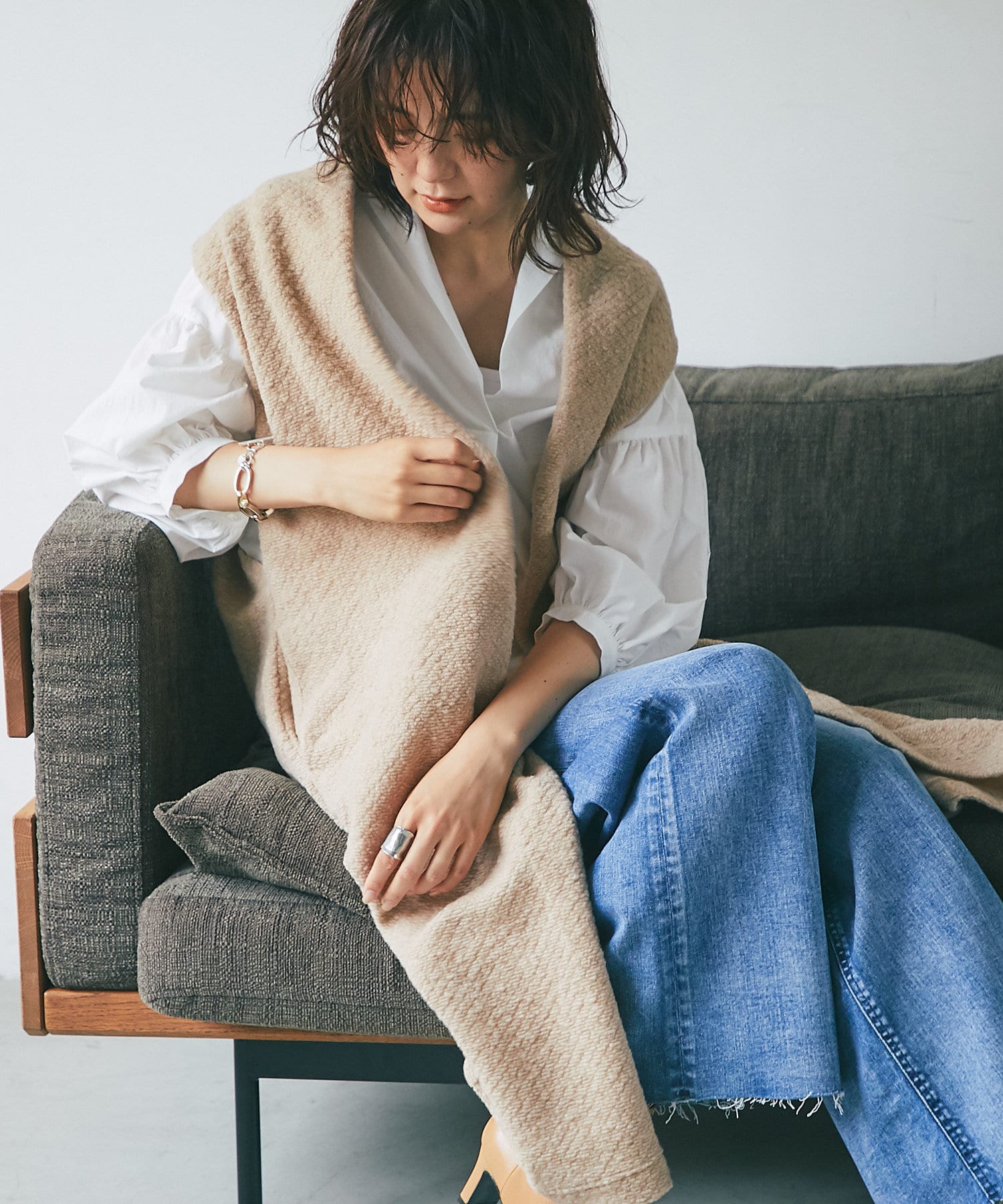 シンプルなシャツ&デニムに羽織るだけで旬なトレンドコーデに早変わり。