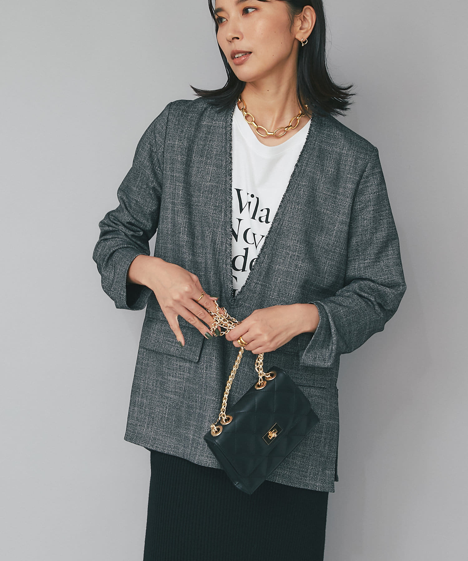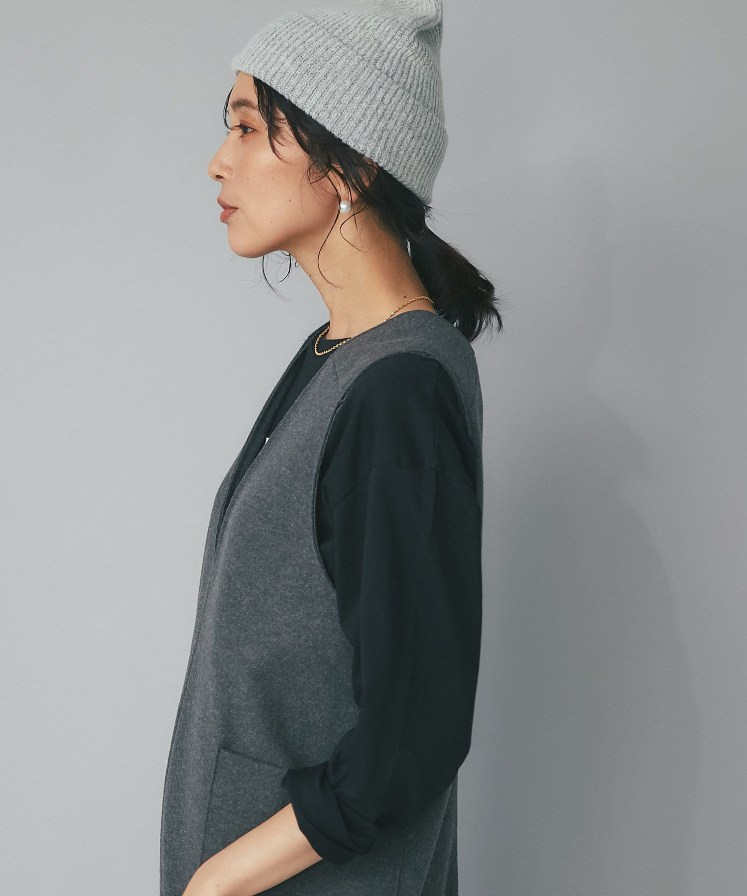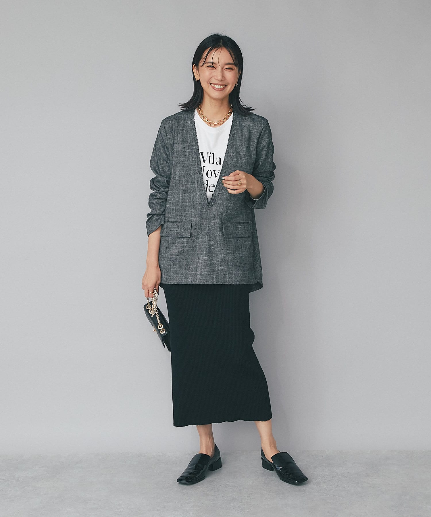一枚はもちろん、ニットの下に着用したレイヤードスタイルがオススメ。