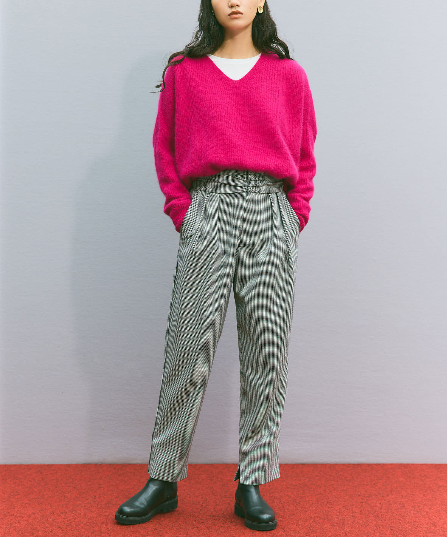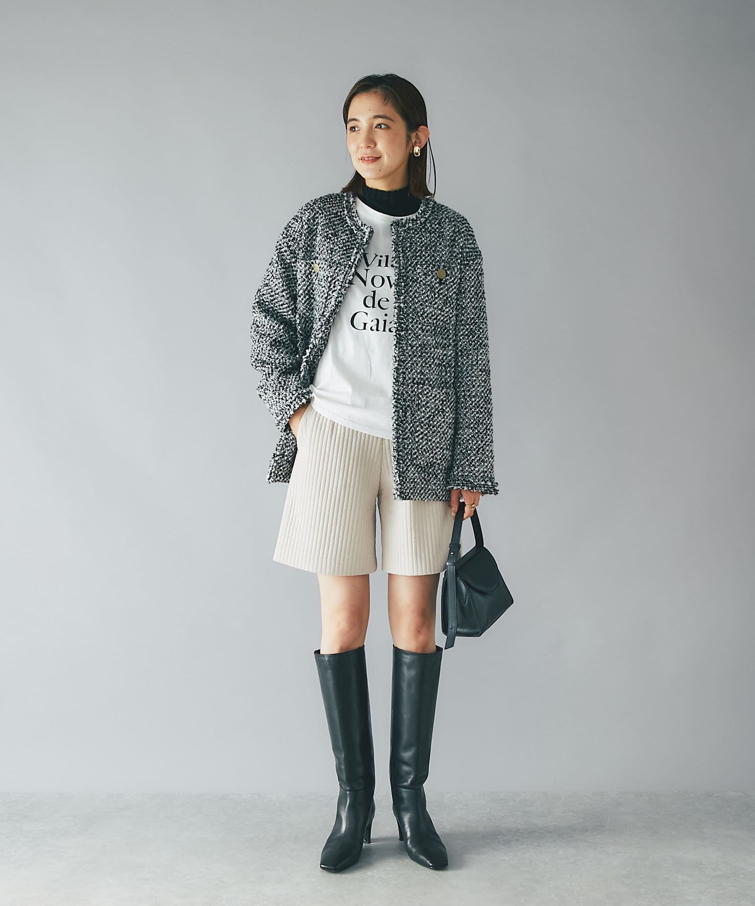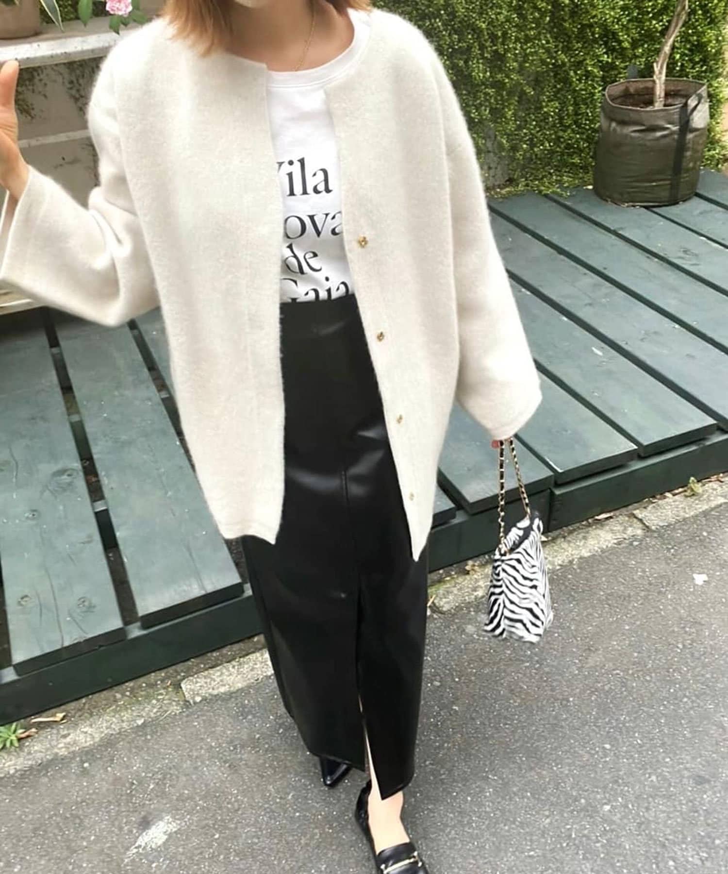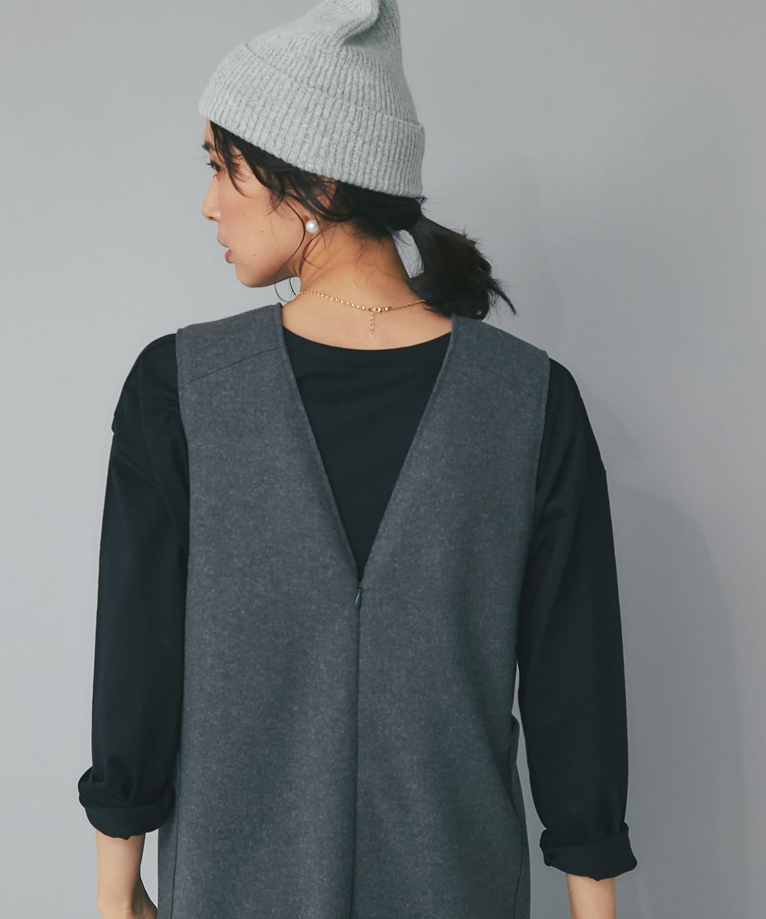 一枚はもちろん、ニットの下に着用したレイヤードスタイルがオススメ。
