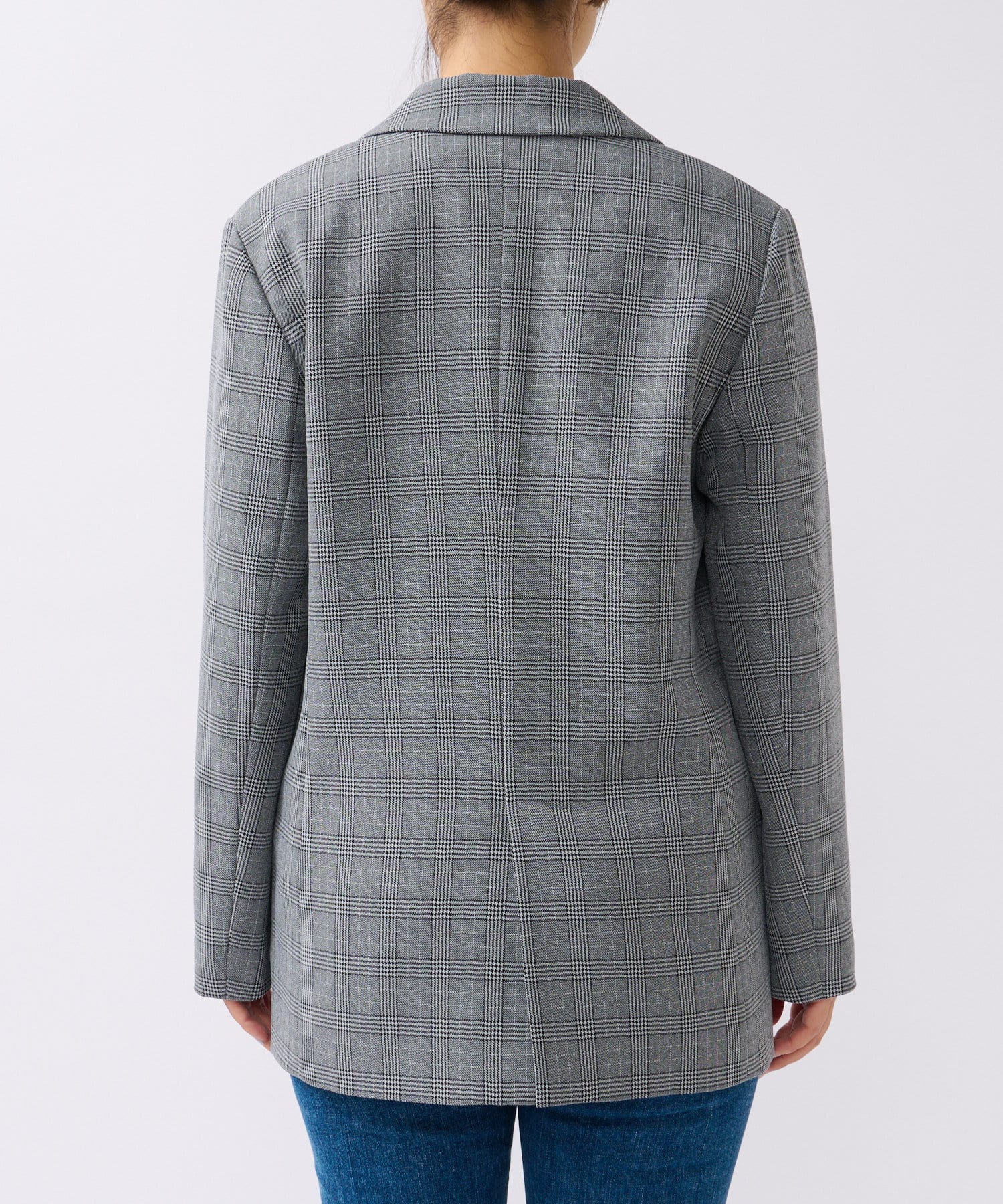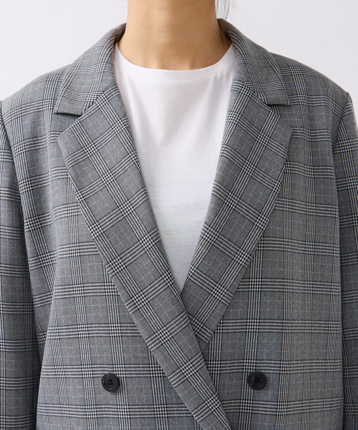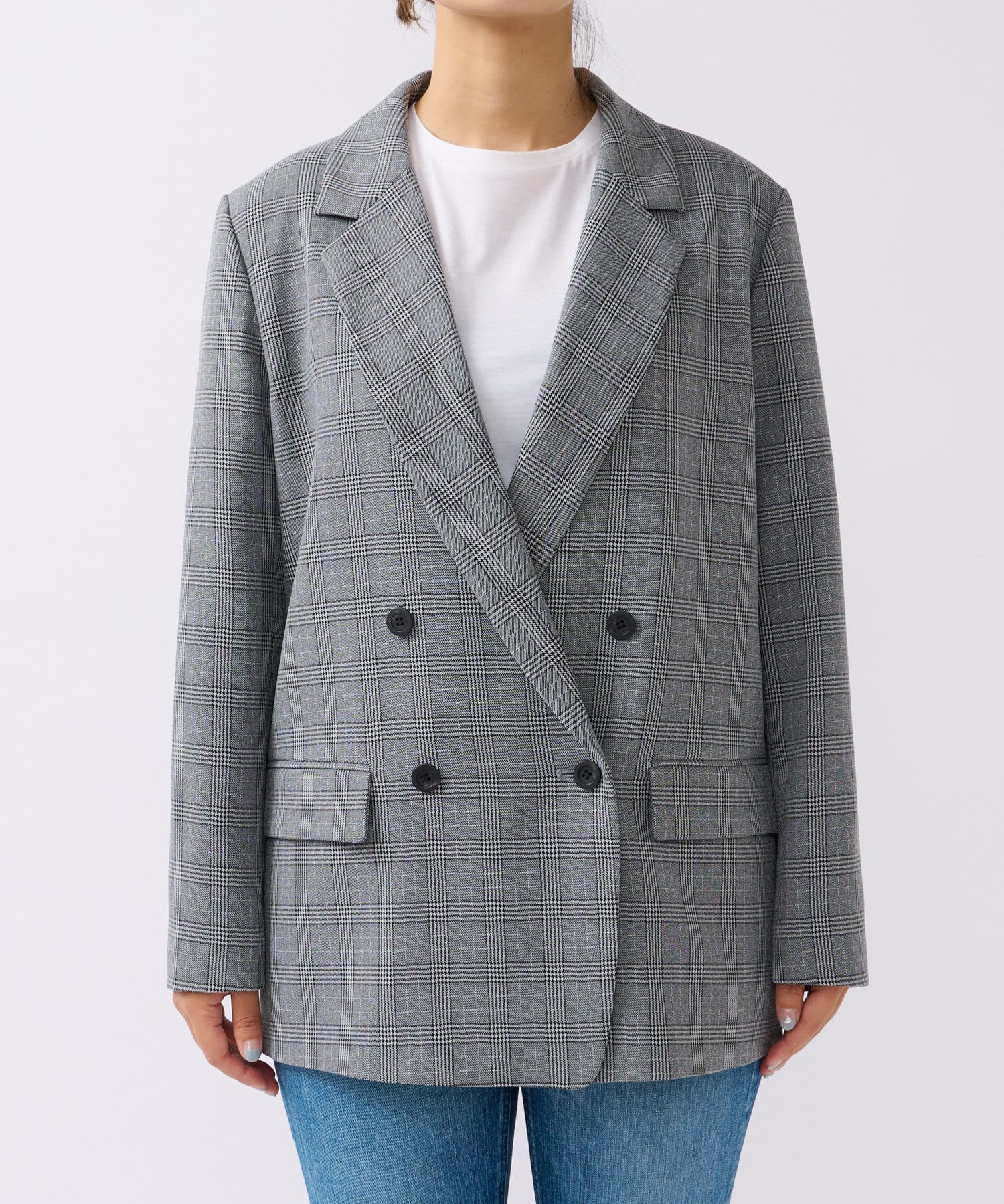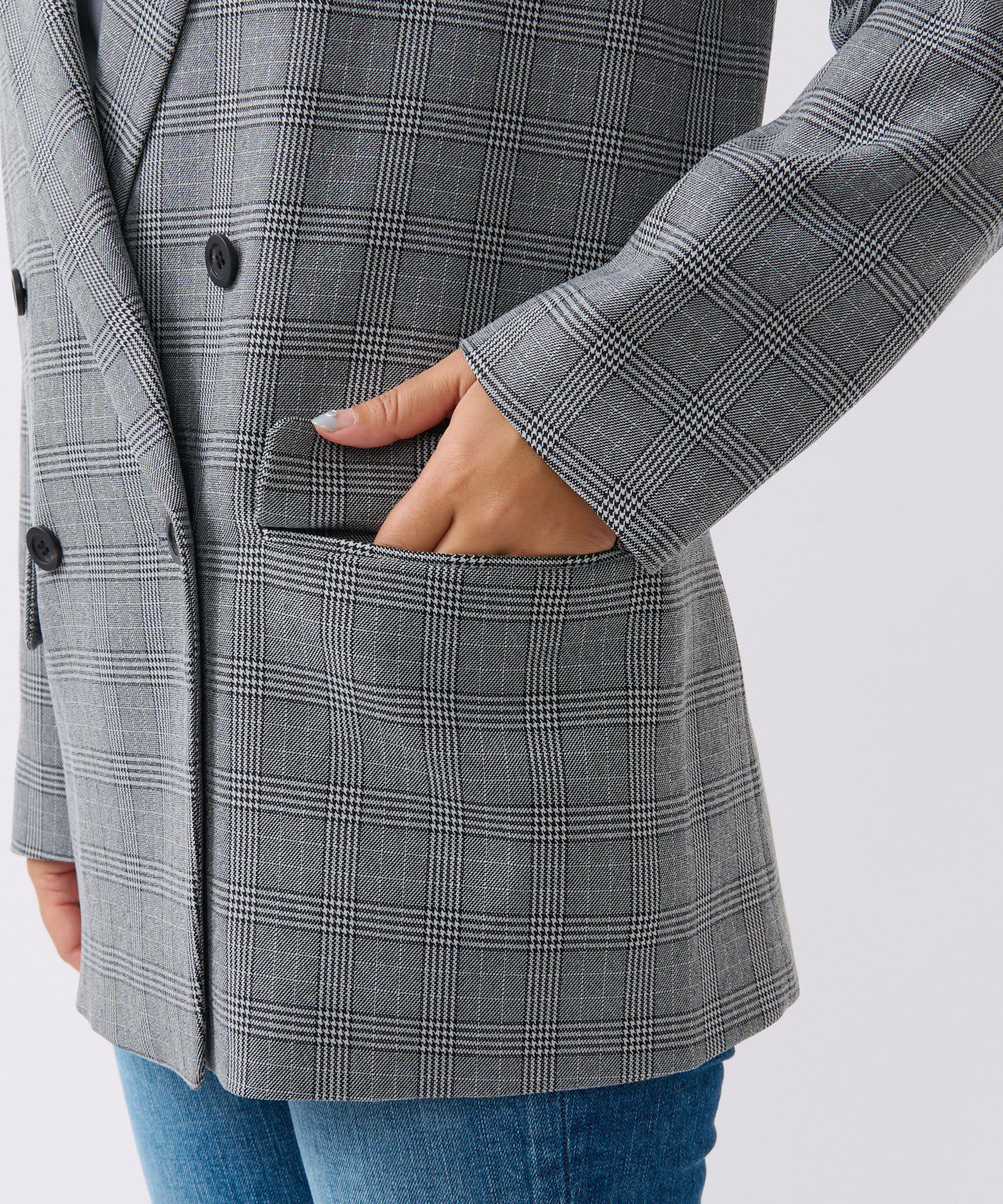 クラシックなグレンチェックを使用したダブルブレストのテーラードジャケット。
