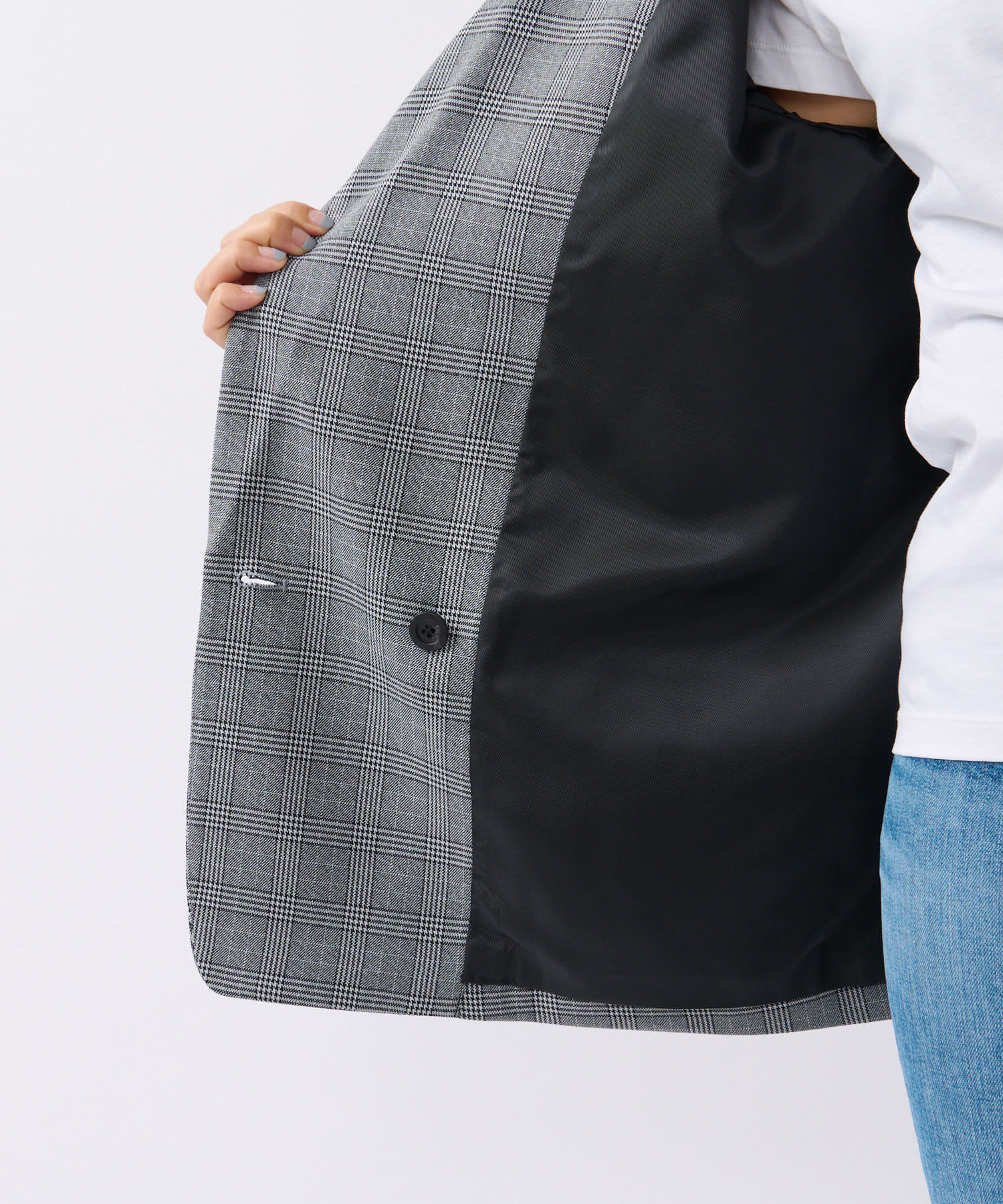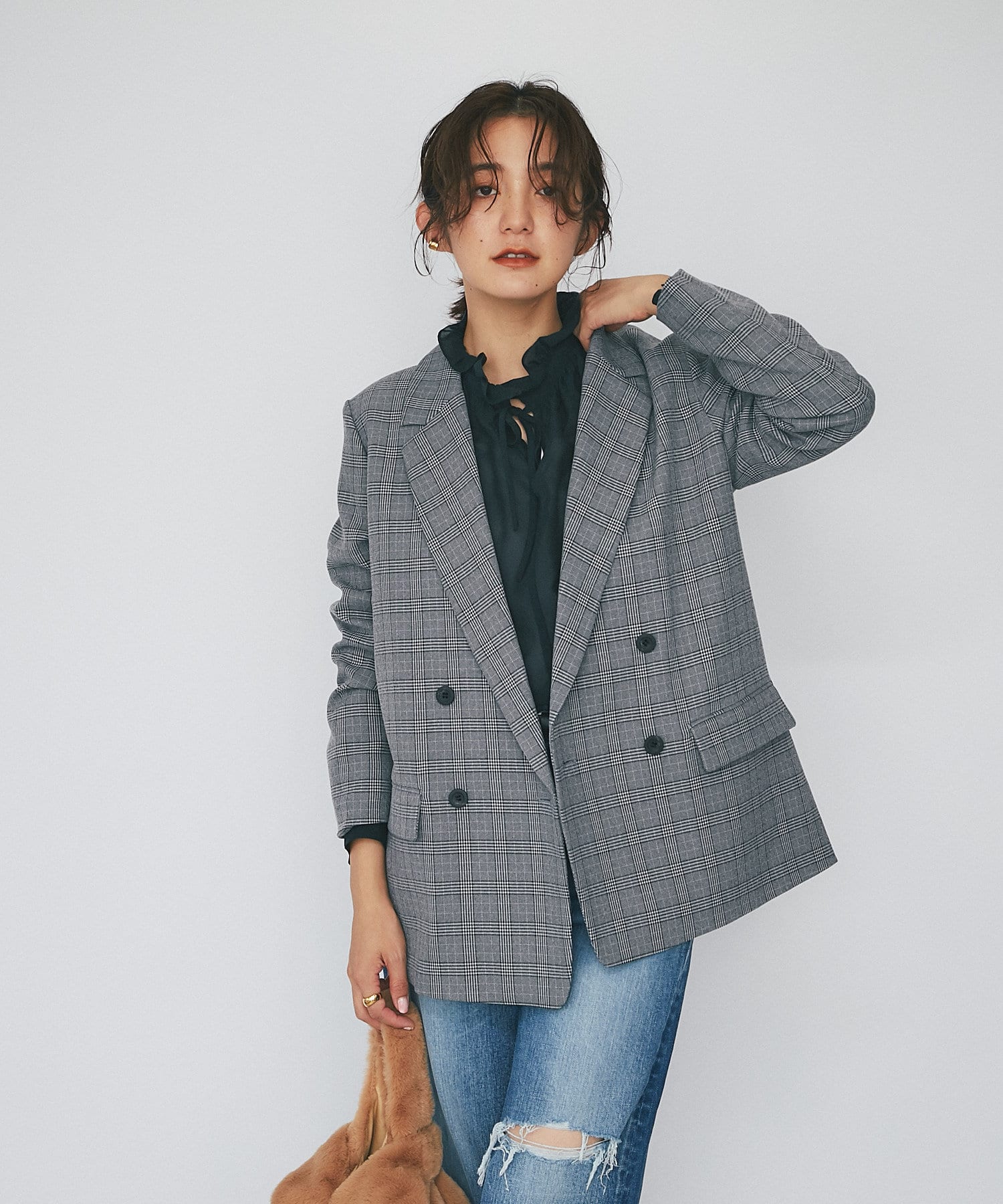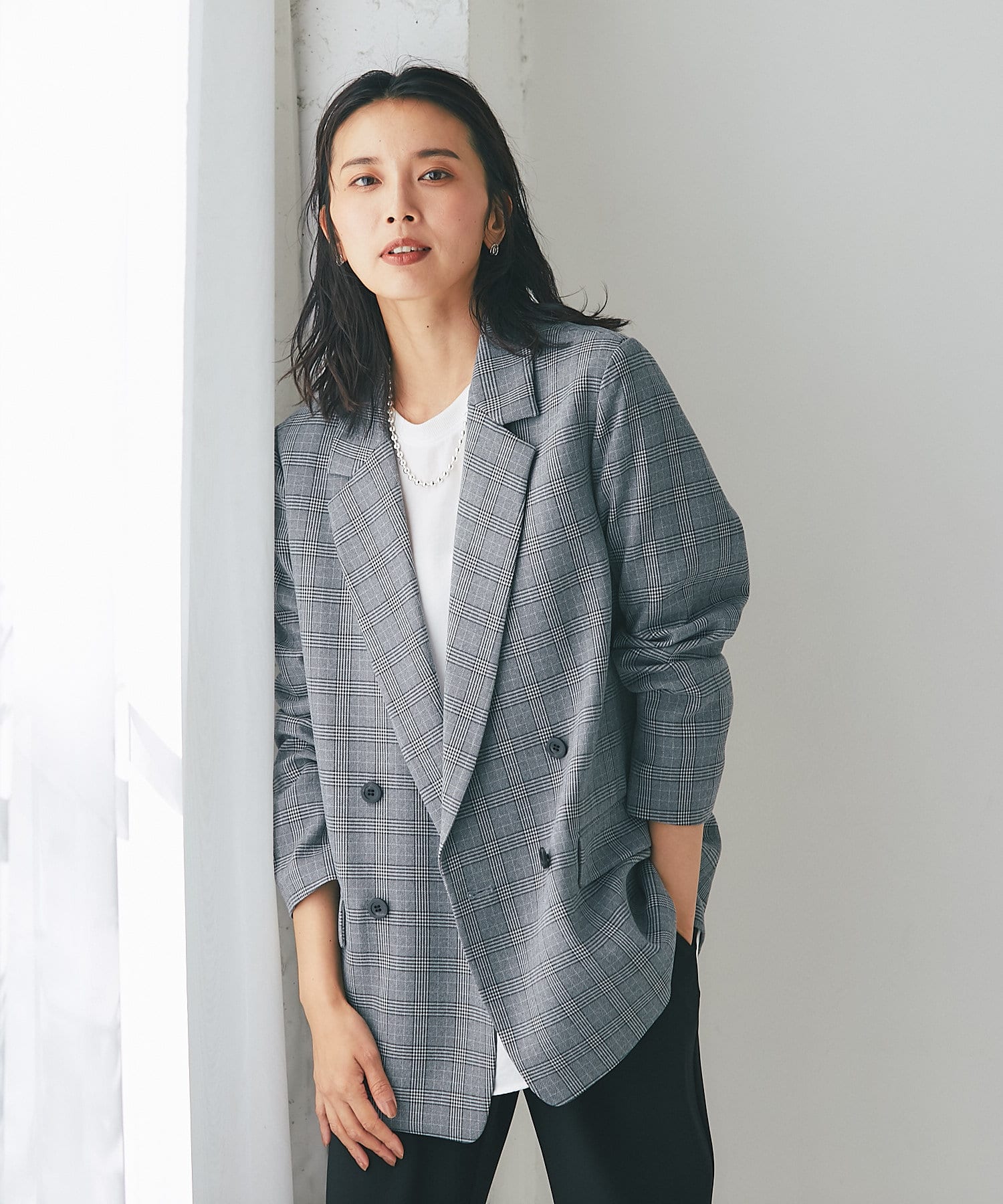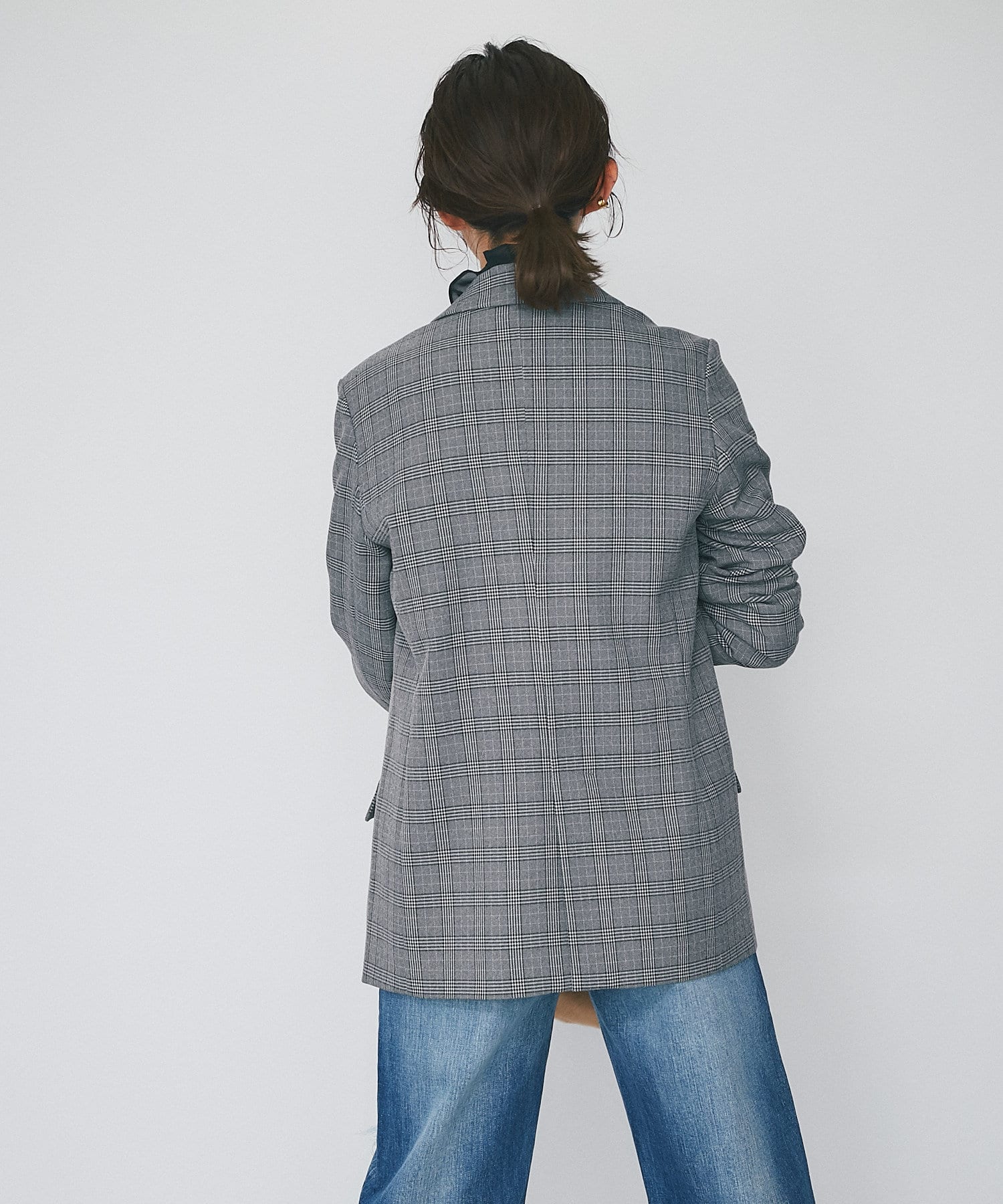 クラシックなグレンチェックを使用したダブルブレストのテーラードジャケット。