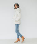 シンプルなデニムスタイルに羽織りだけでクリーンで洗練された印象になります。