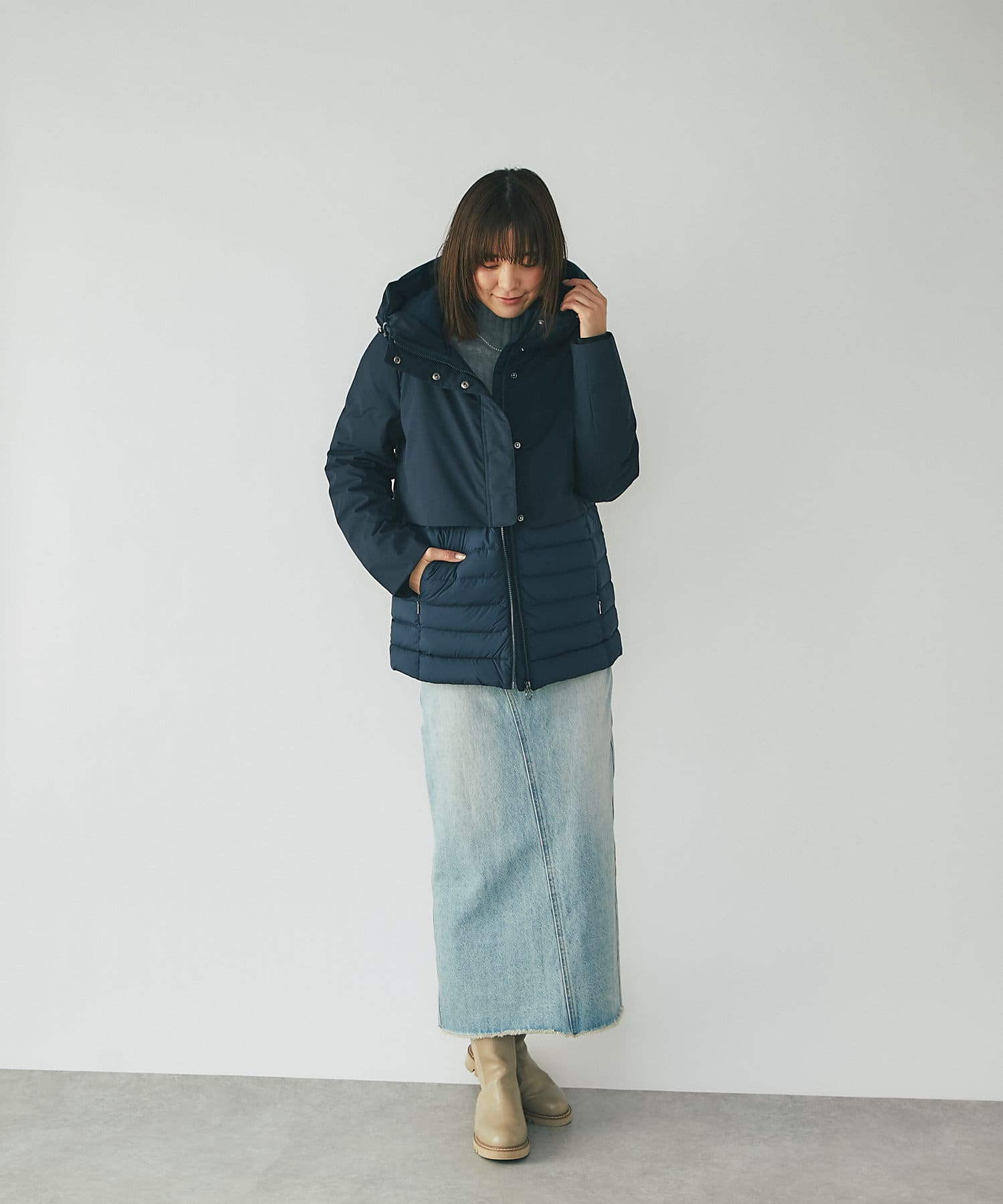 ファブリックには耐水性や防水性のナイロンを、中綿には新素材や羽毛、高級ダウンを用意し着心地や着丈にもこだわっています。