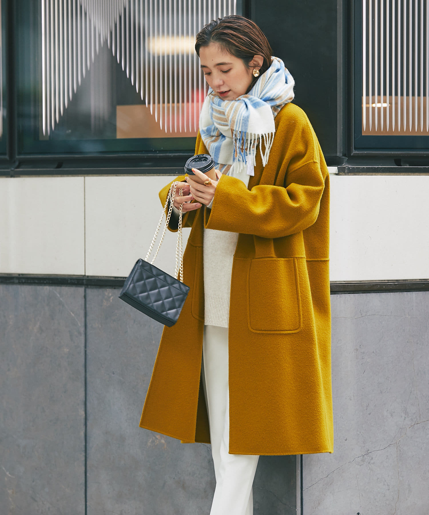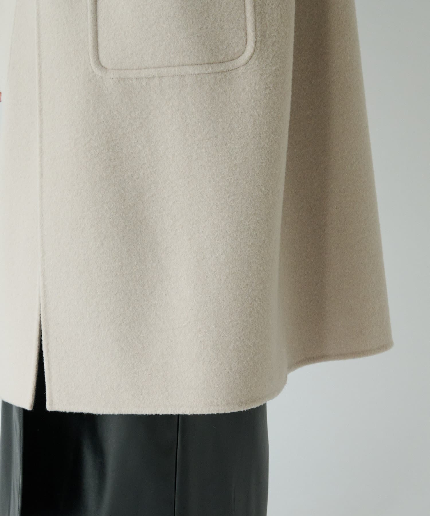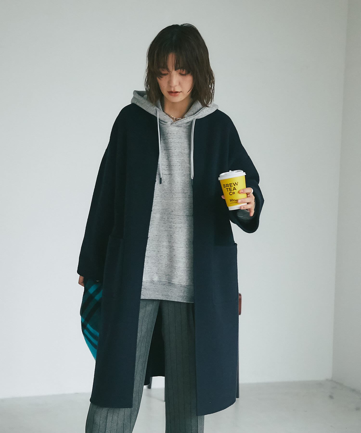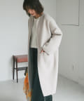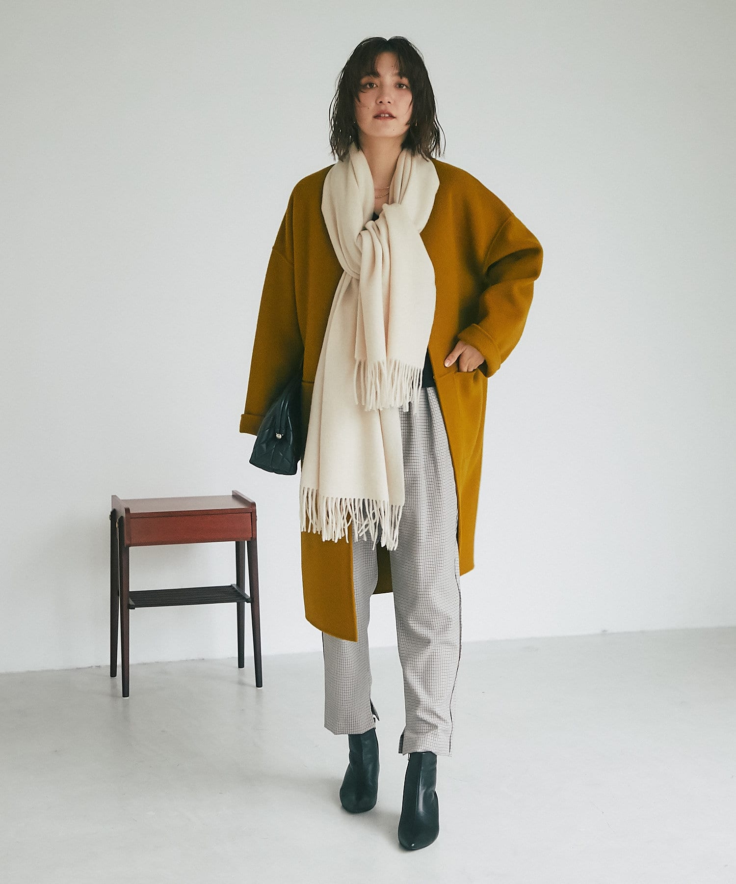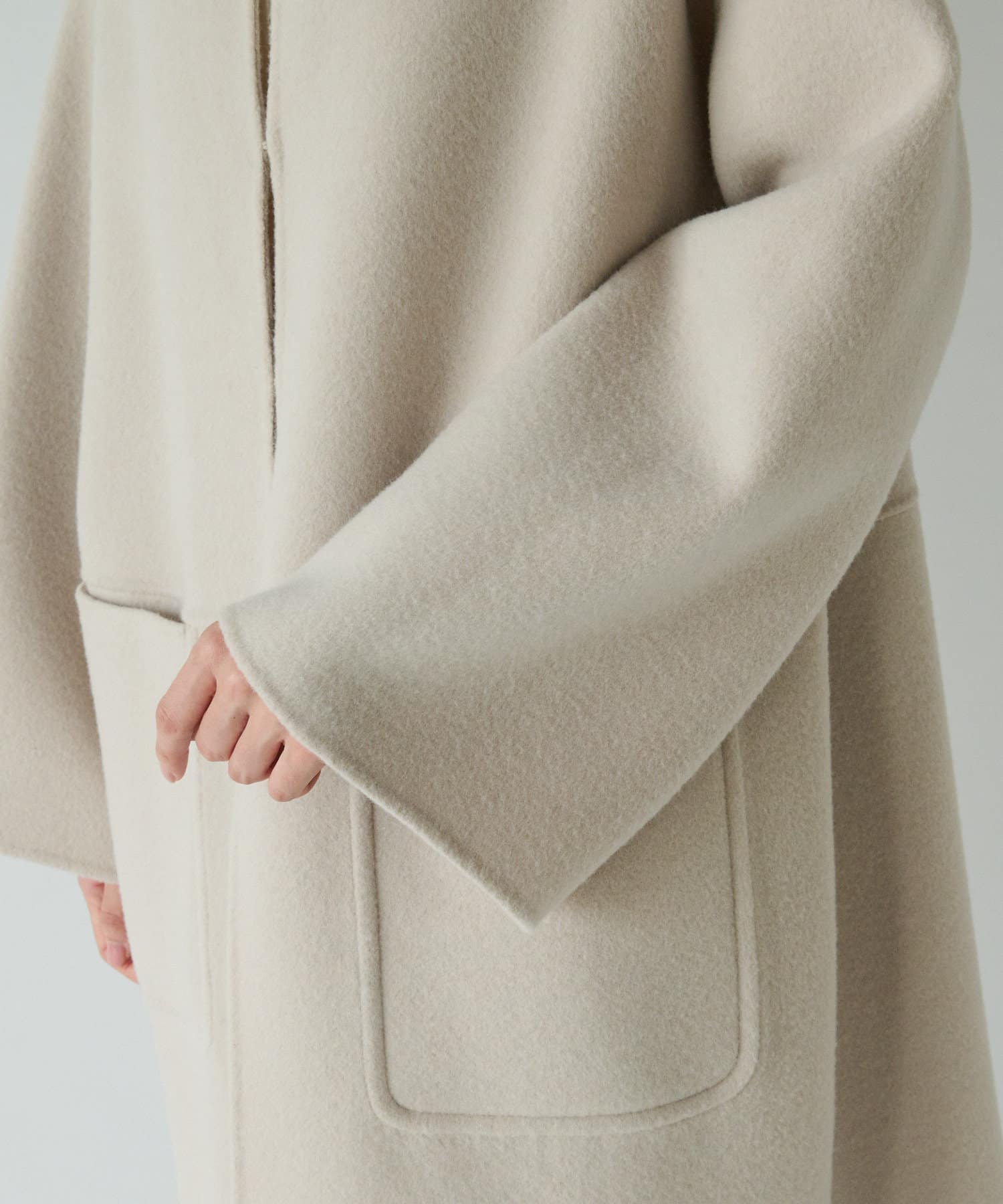 たっぷりした身幅は厚手のニットやインナーダウンと重ねても着膨れしにくく、シーズンを通してマルチに活用していただけます。                                                                      スタンダードなノーカラーデザインはインナーを選ばず、小物アレンジで印象を変えて着用できるところもポイント。                                                                             キレイめからカジュアルまで幅広く着用していただけます。