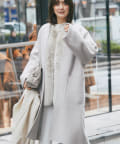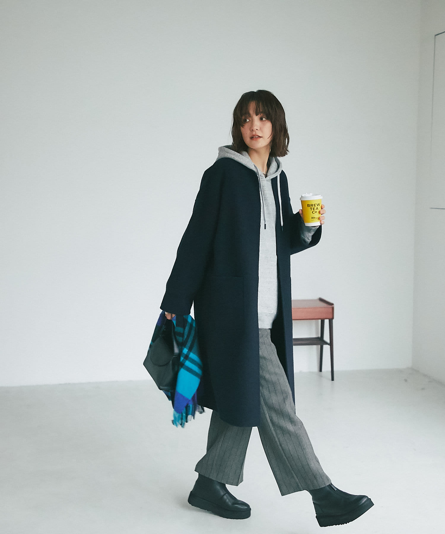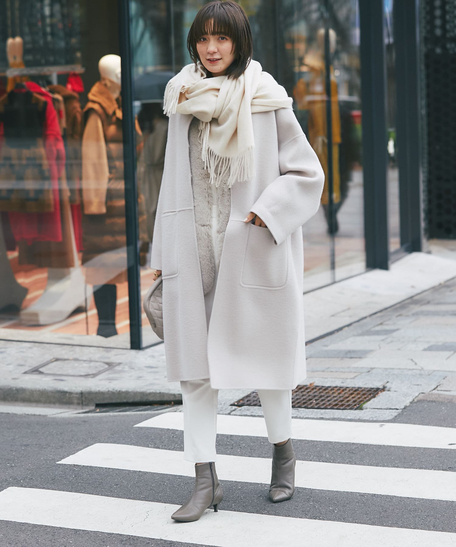 昨年よりも柔らかな膨らみと暖かみのあるプレミアムウール素材を使用しており、ロング丈でも軽さのある着心地が魅力。