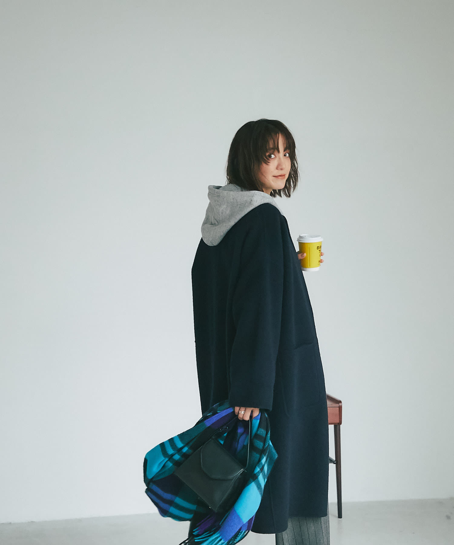 • たっぷりした身幅は厚手のニットやインナーダウンと重ねても着膨れしにくい