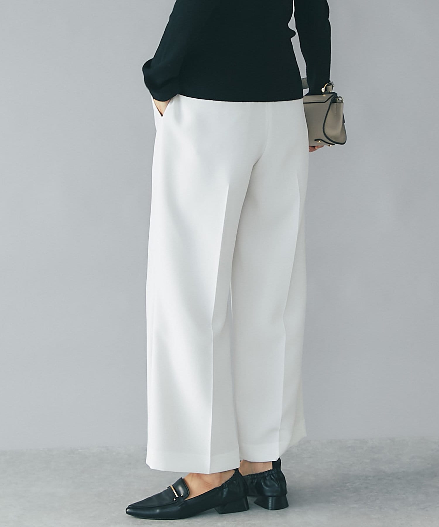 膨らみとハリが特徴のダブルクロスを使用したセミワイドパンツ。