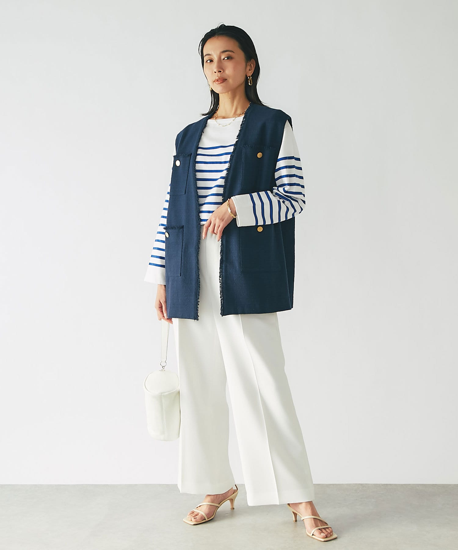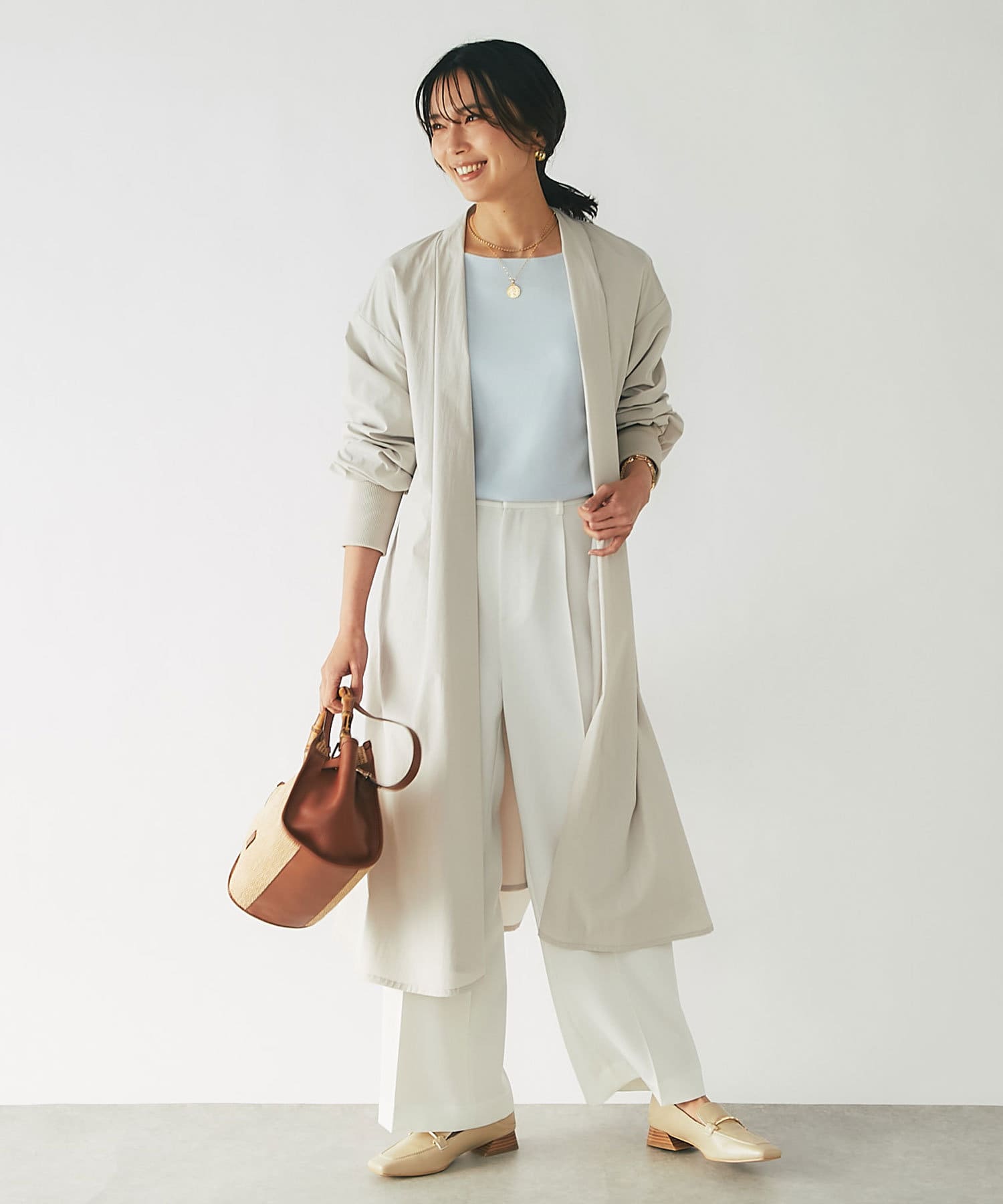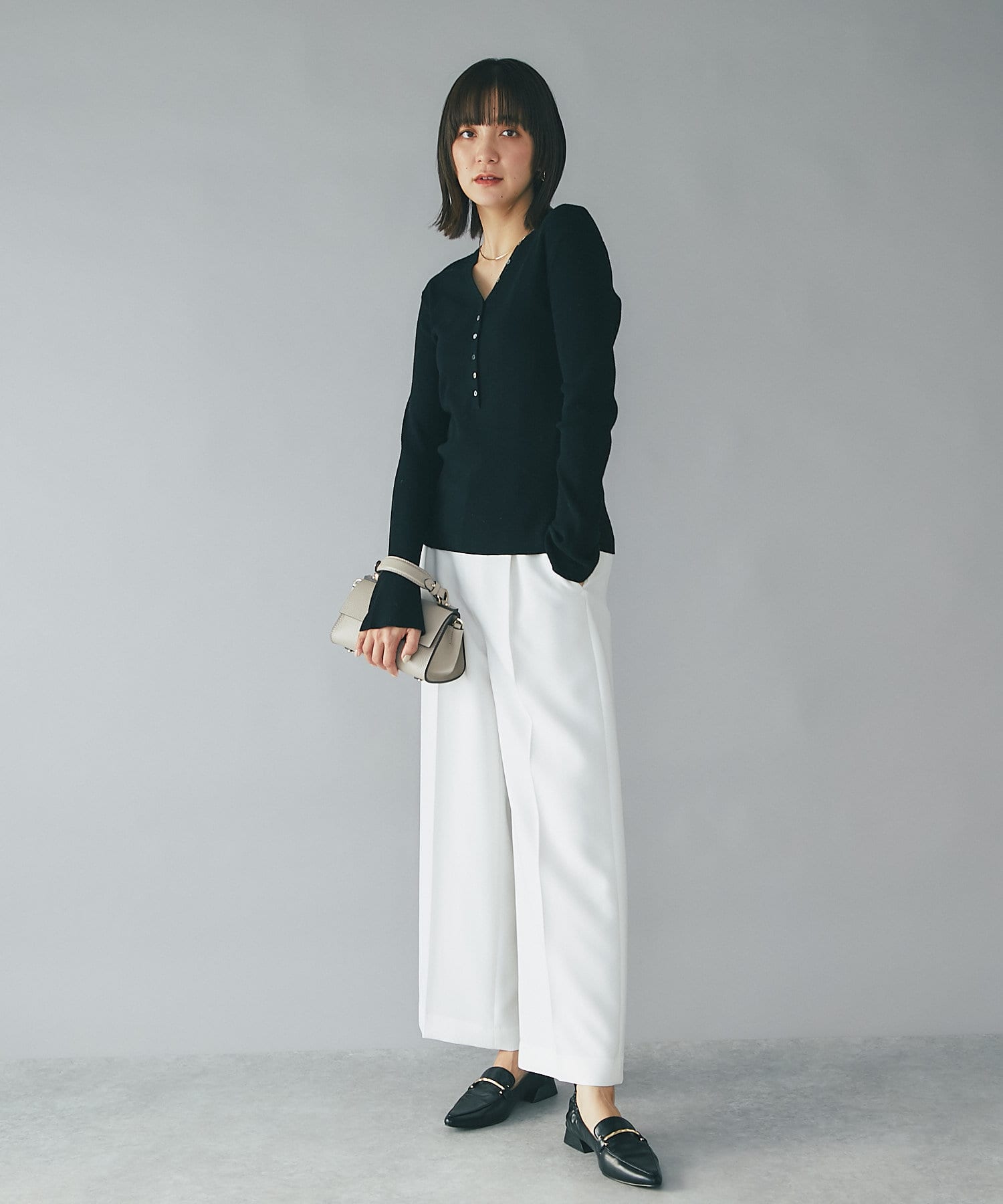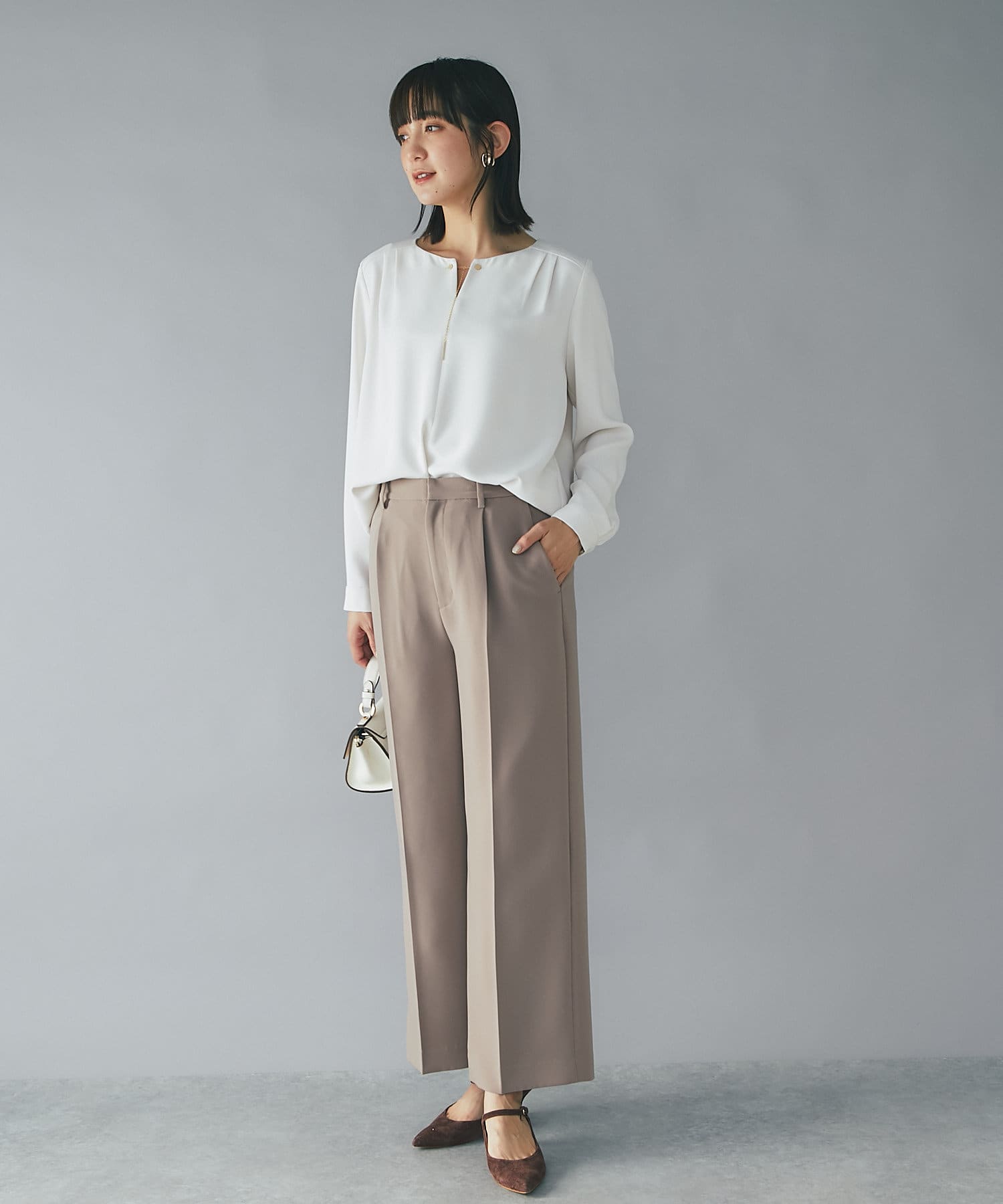 また、綺麗めコーディネートにはとろみブラウスやコンパクトニットなどのメリハリを付けた素材を合わせて頂くと大人コーディネートが楽しめます。