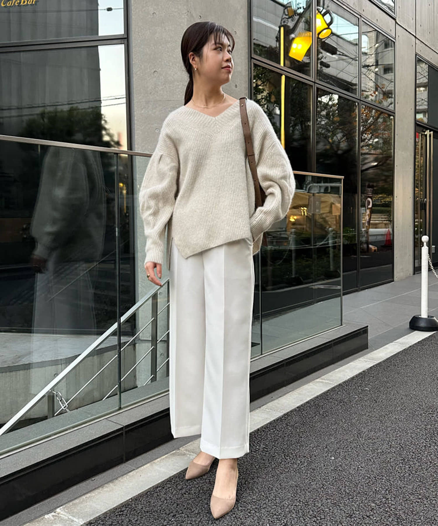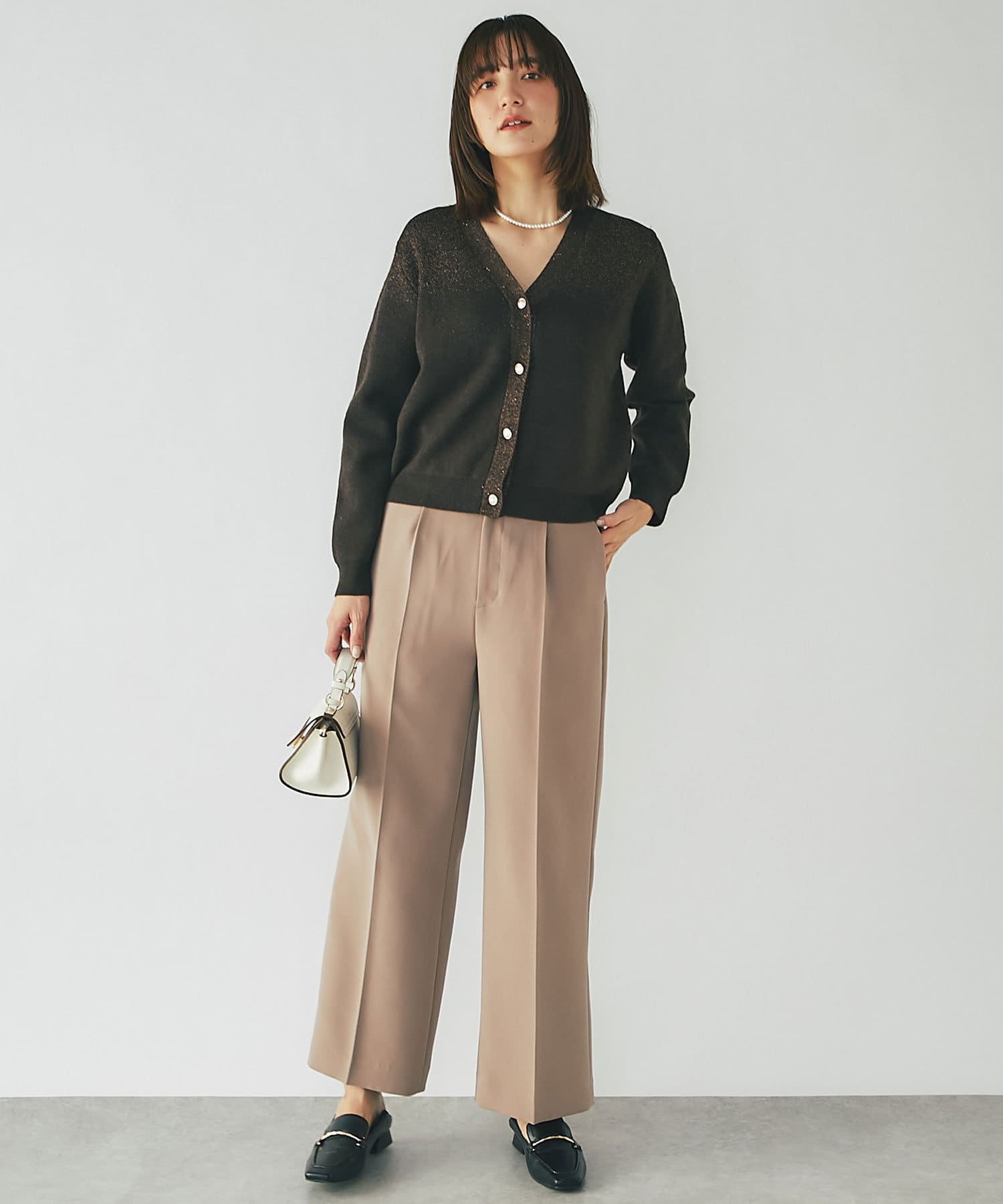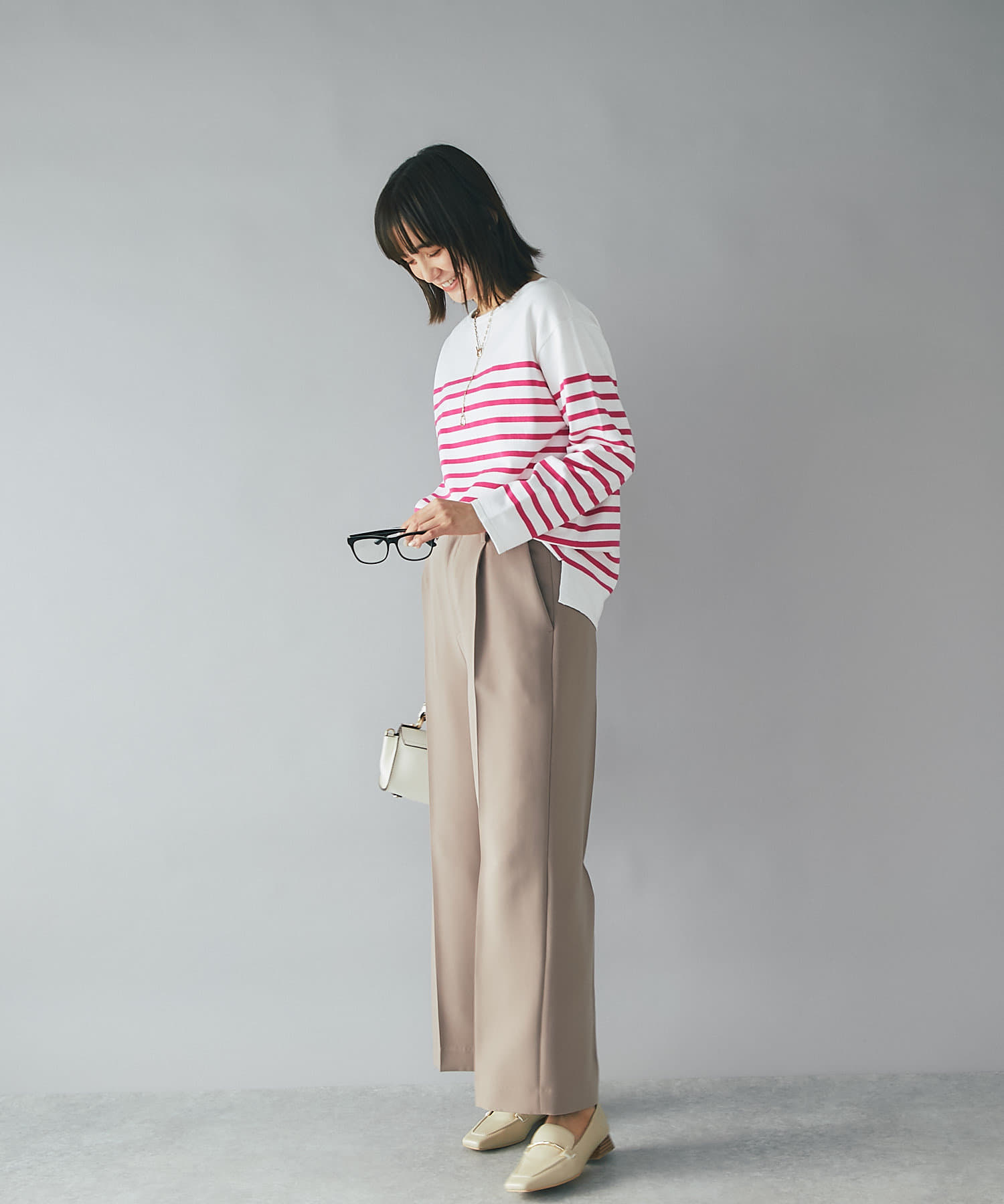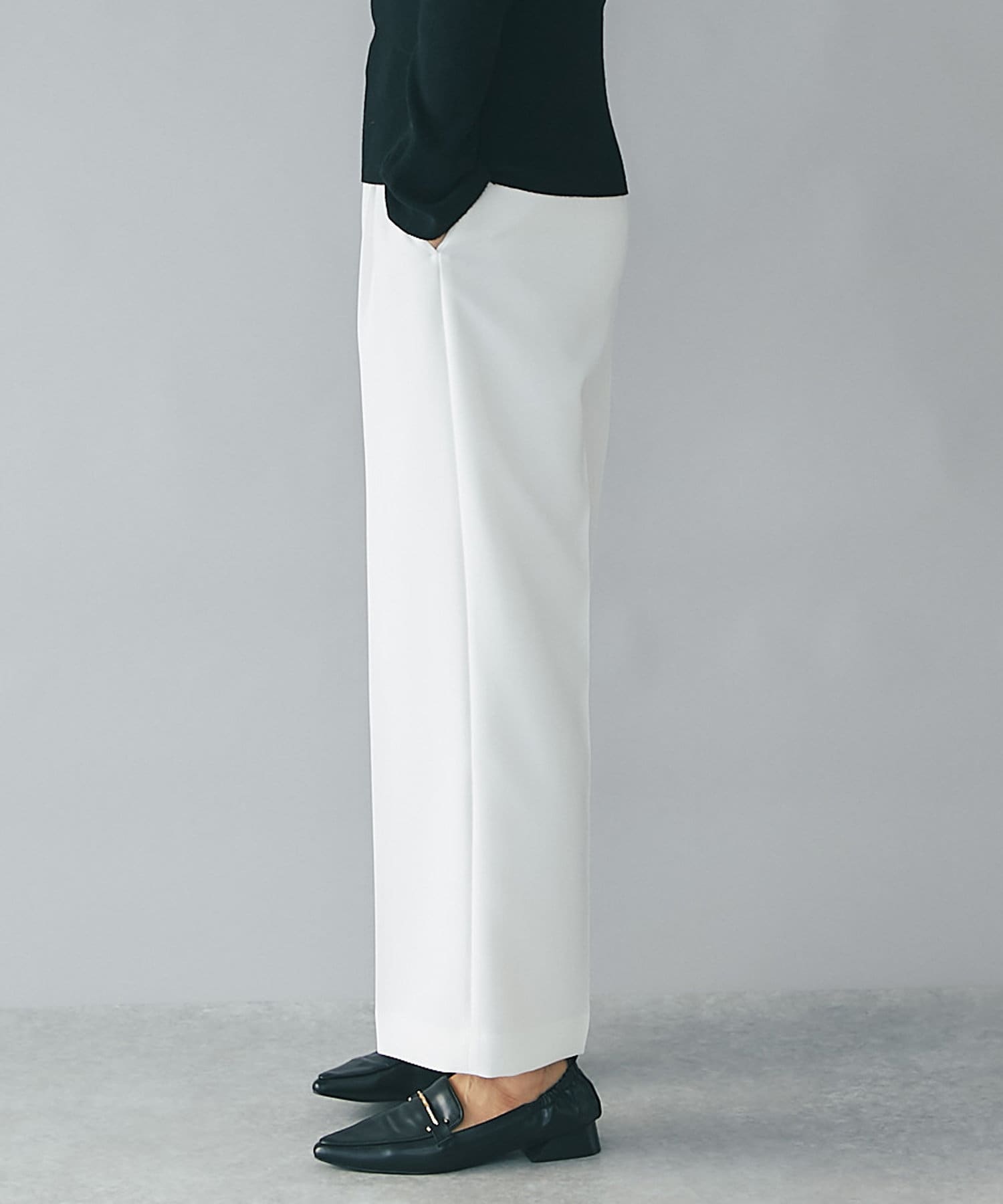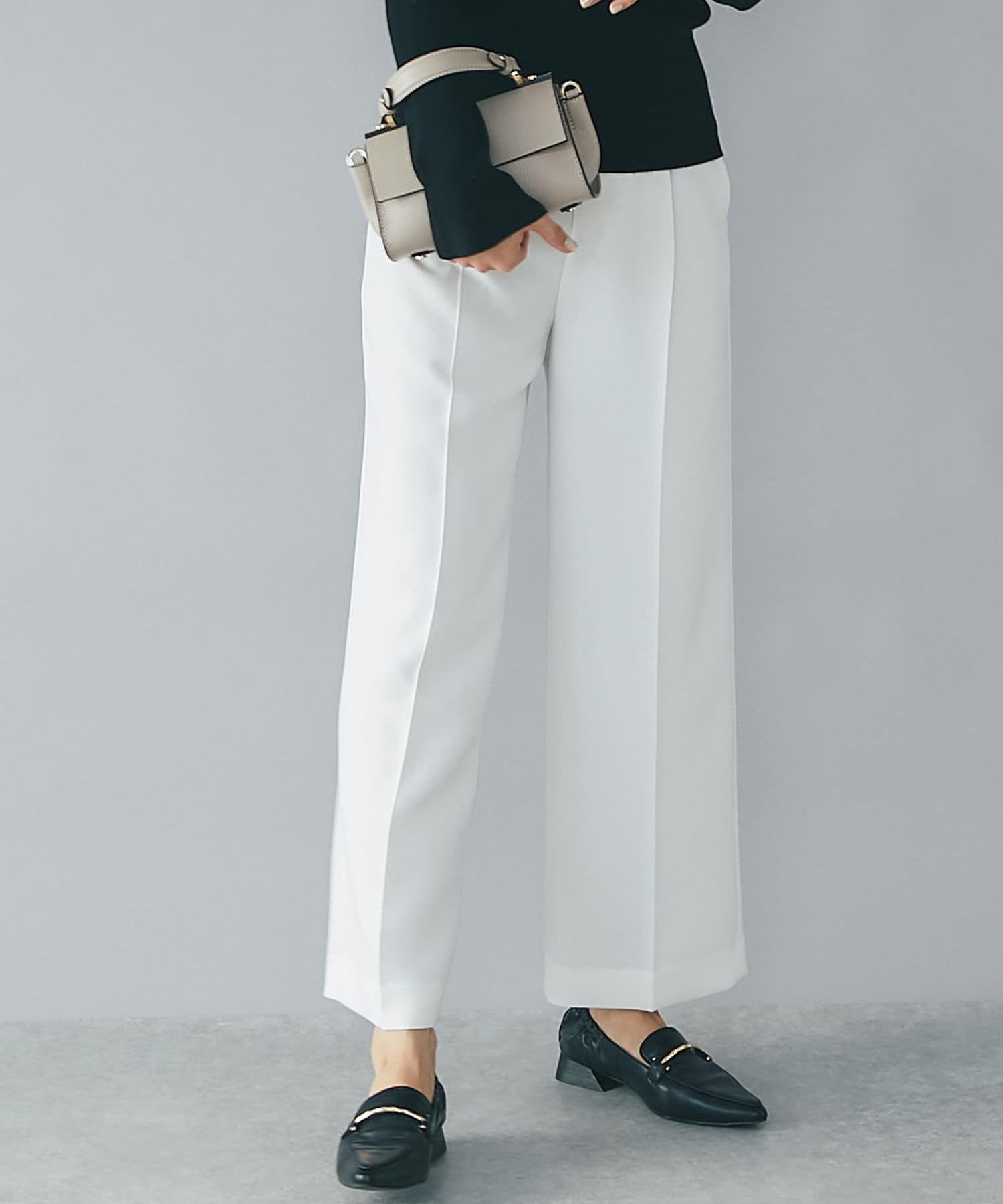 今季らしいカラーニットとの相性抜群の上品シルエットパンツ!カジュアルスタイルにも◎