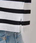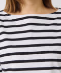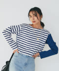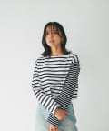 太さやカラーの違うボーダーの切り返しが目を惹く、一枚でオシャレ見え間違いなしのボーダーカットソー。