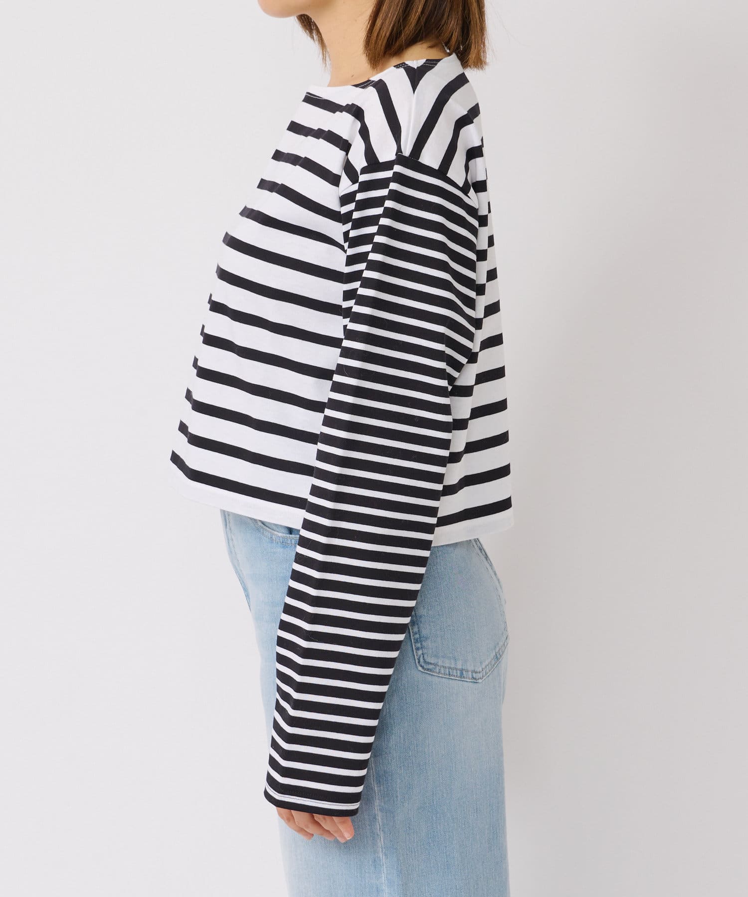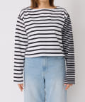 【切り返しのボーダーで遊び心をプラス】クレイジーボーダークロップカットソー