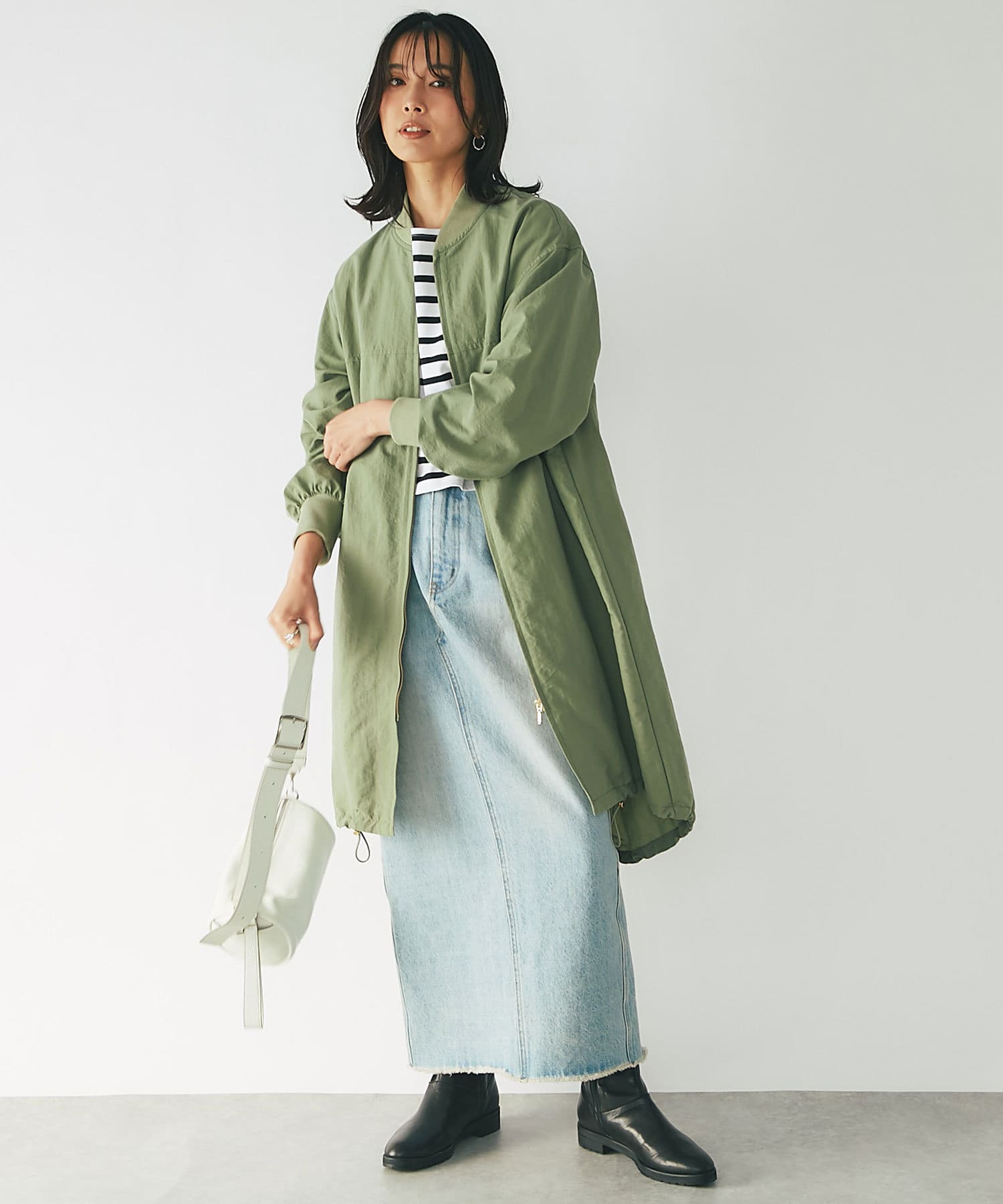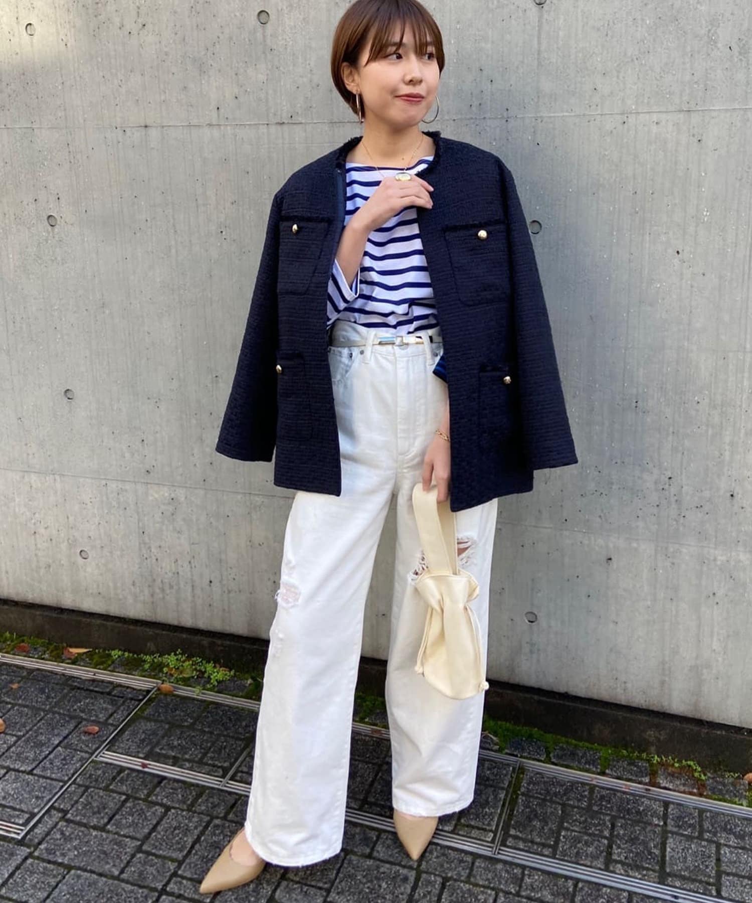 ややゆったりとしたシルエットとクロップド丈のバランスが今季らしい一枚となっております。
