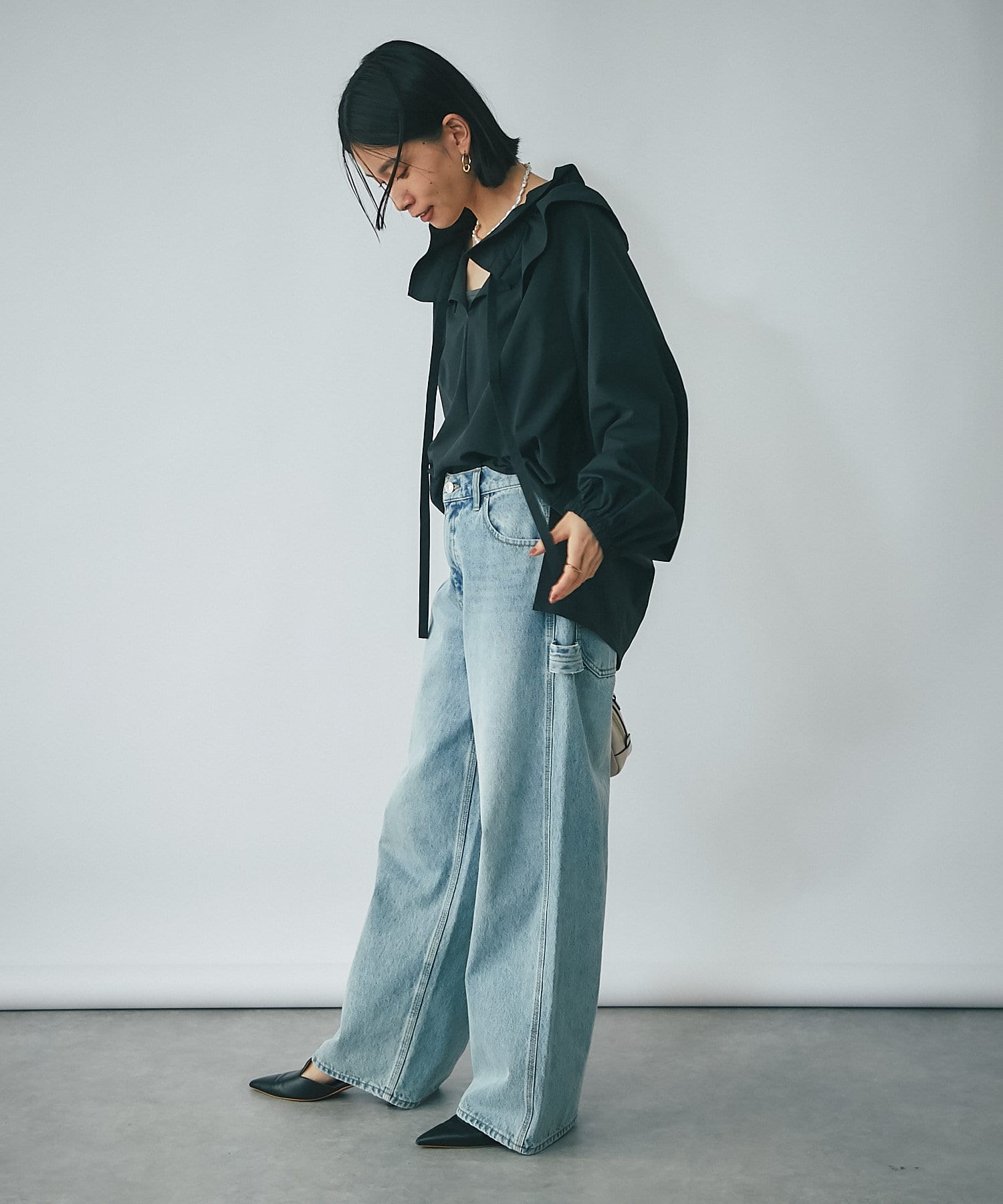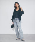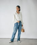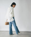 身頃には少しゆとりのあるシルエットになっているので、リラックス感のあるワイドシルエットのパンツと合わせたコーディネートがおすすめです。