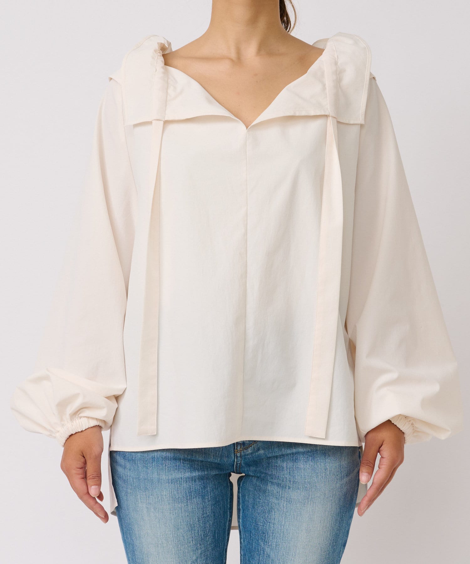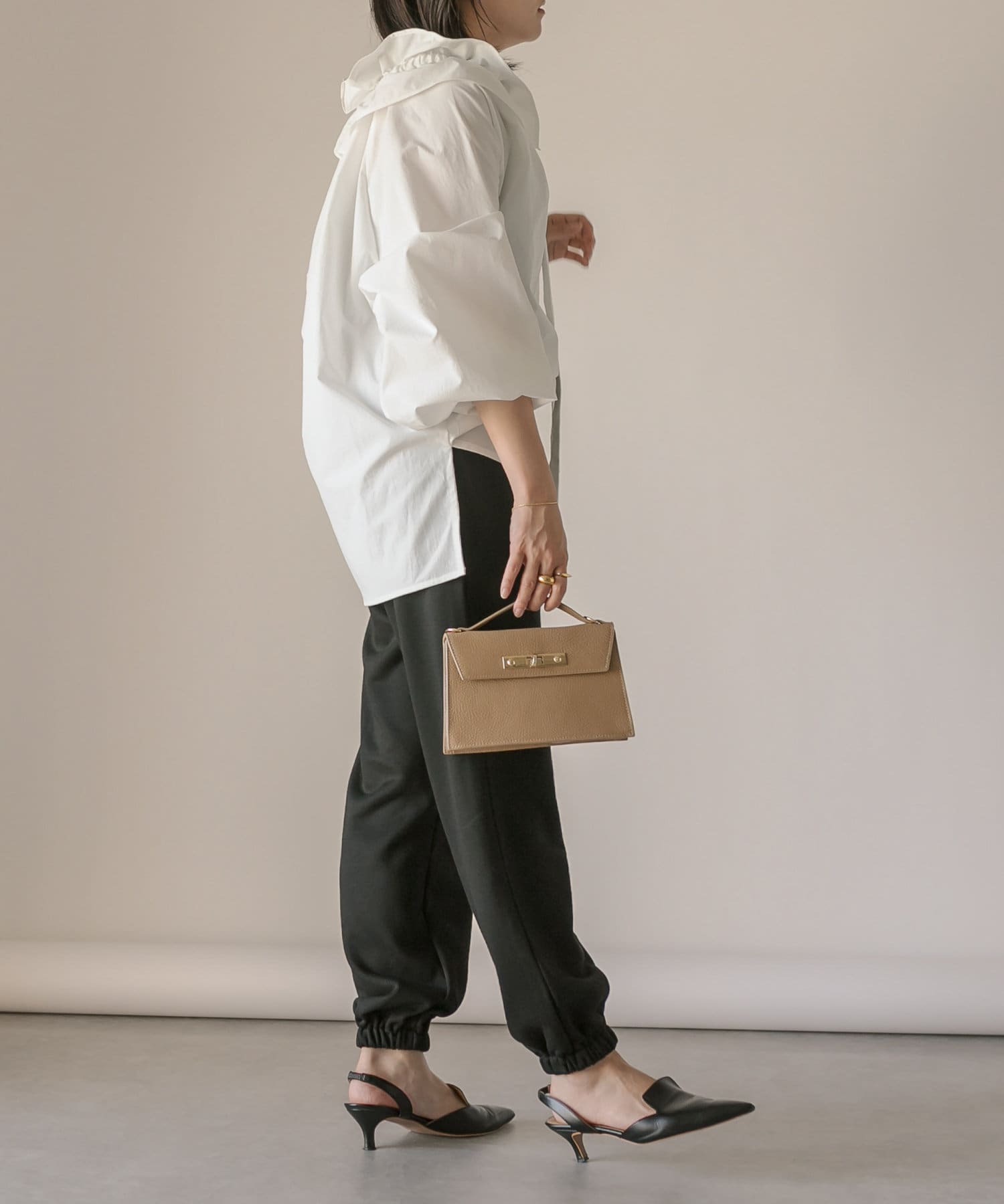 くしゅくしゅっとギャザーを寄せてフェミニンに仕上げたり、ギャザーを寄せずにフラットな衿にしてみたりと自由自在です。