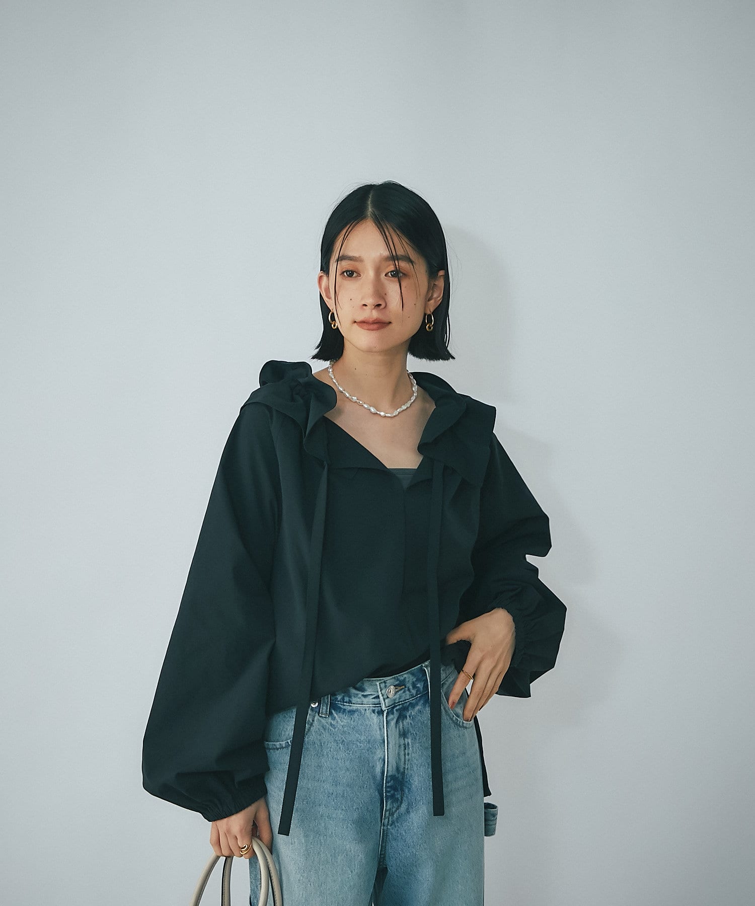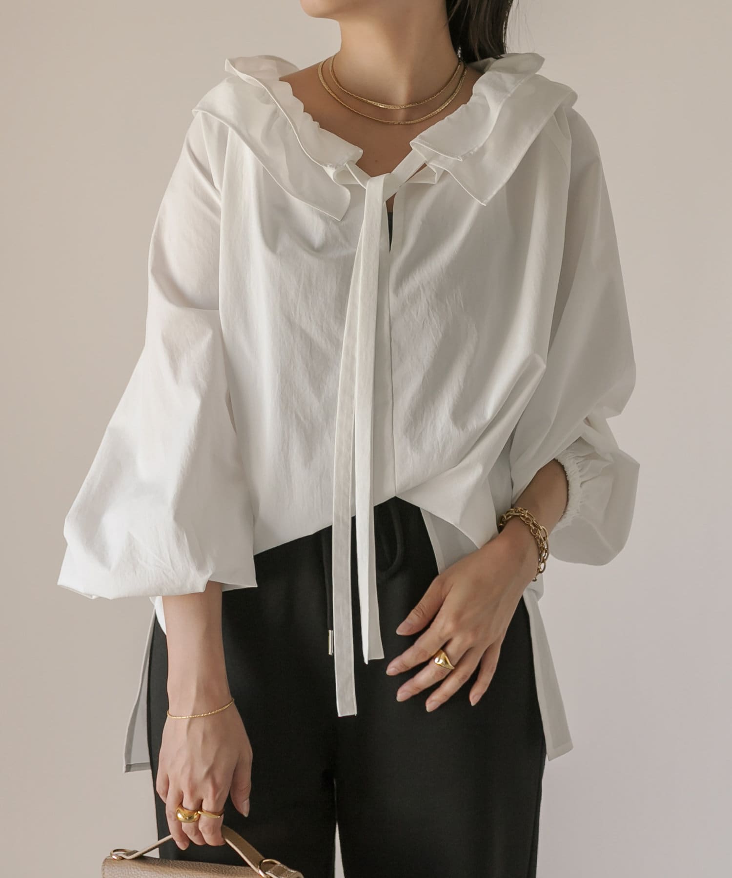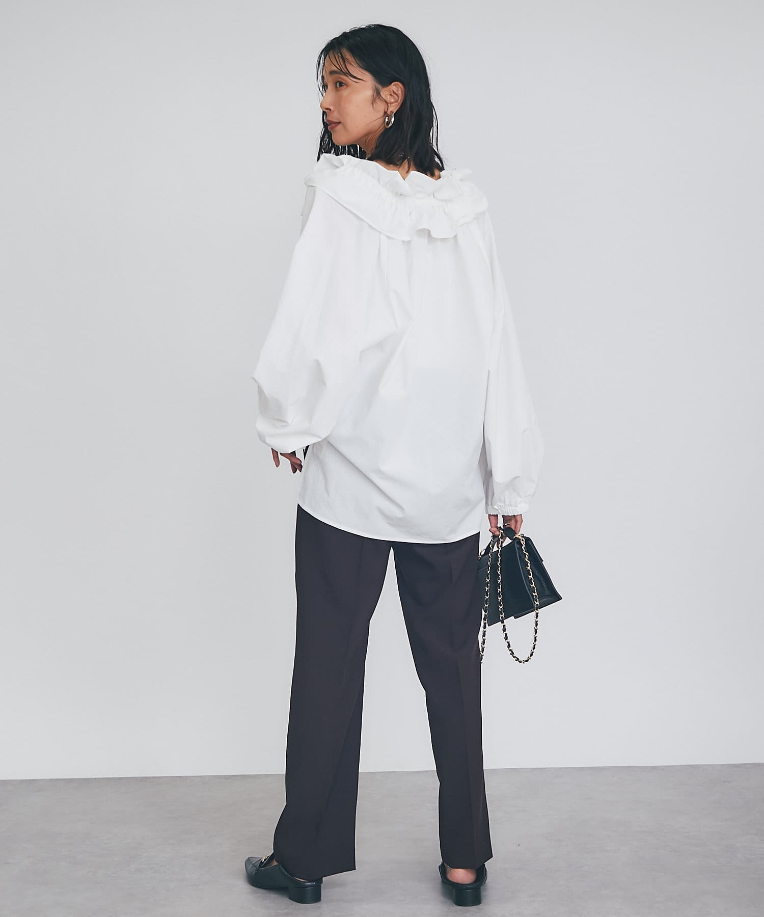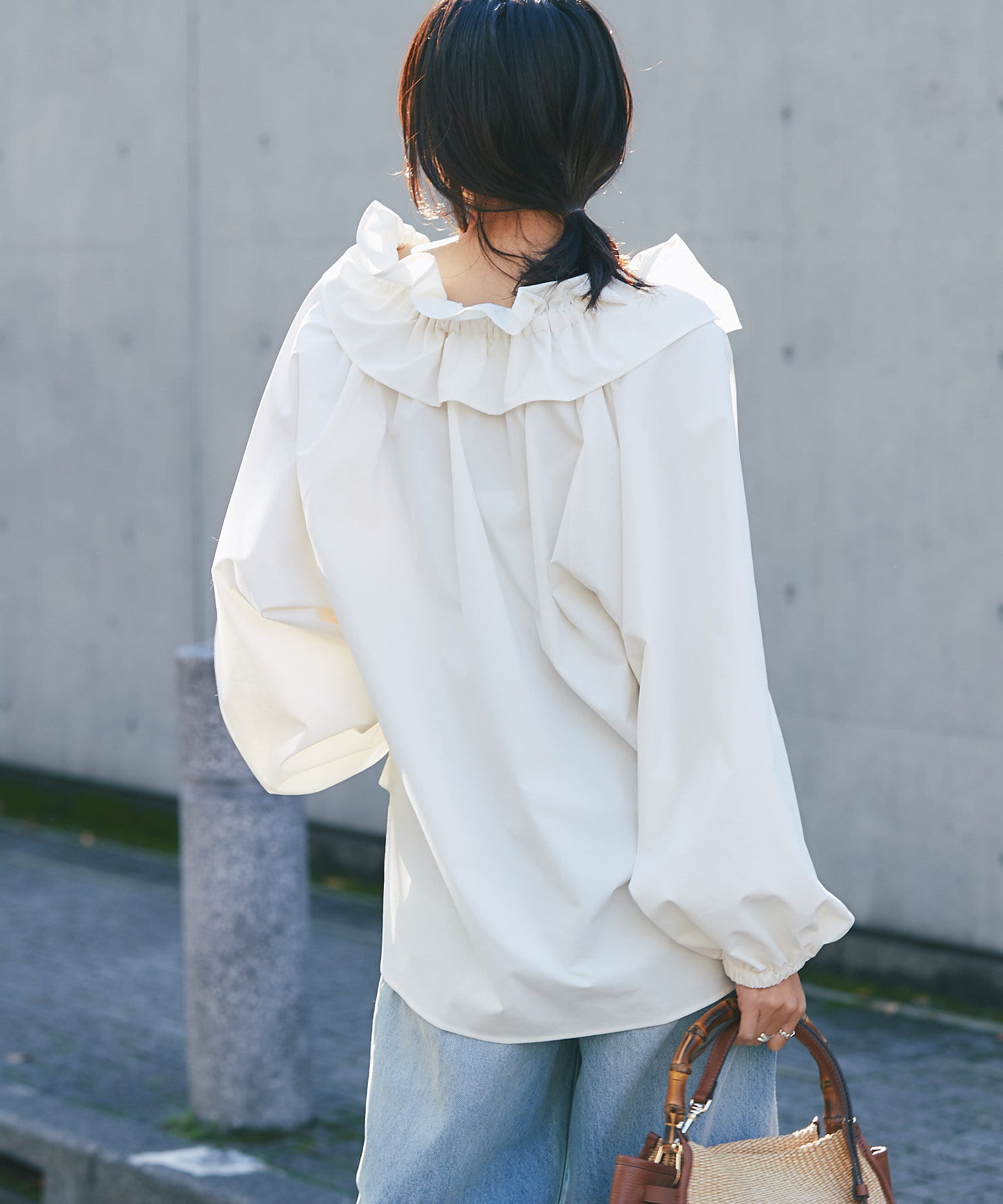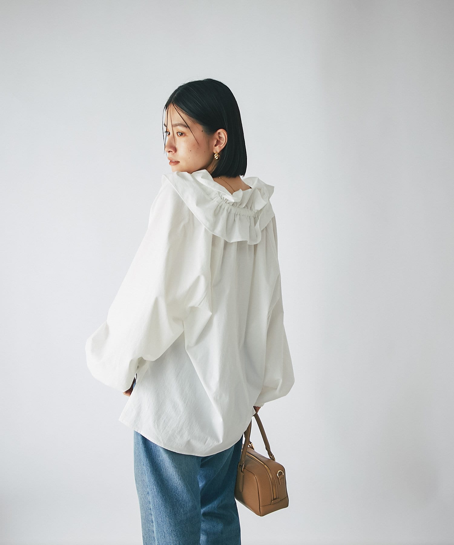 【スタイリングにプラスしたい!】ギャザーフリルカラーブラウス