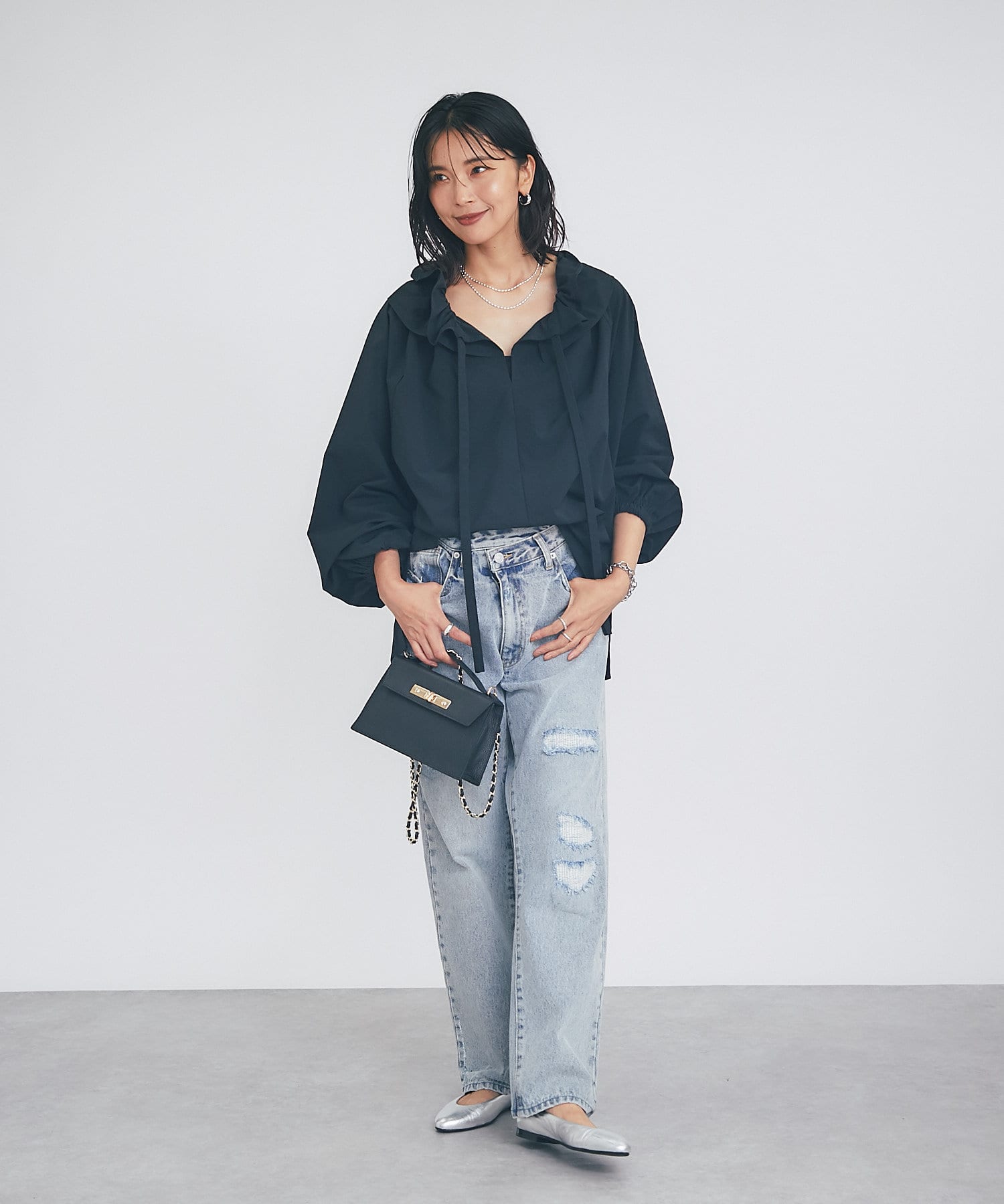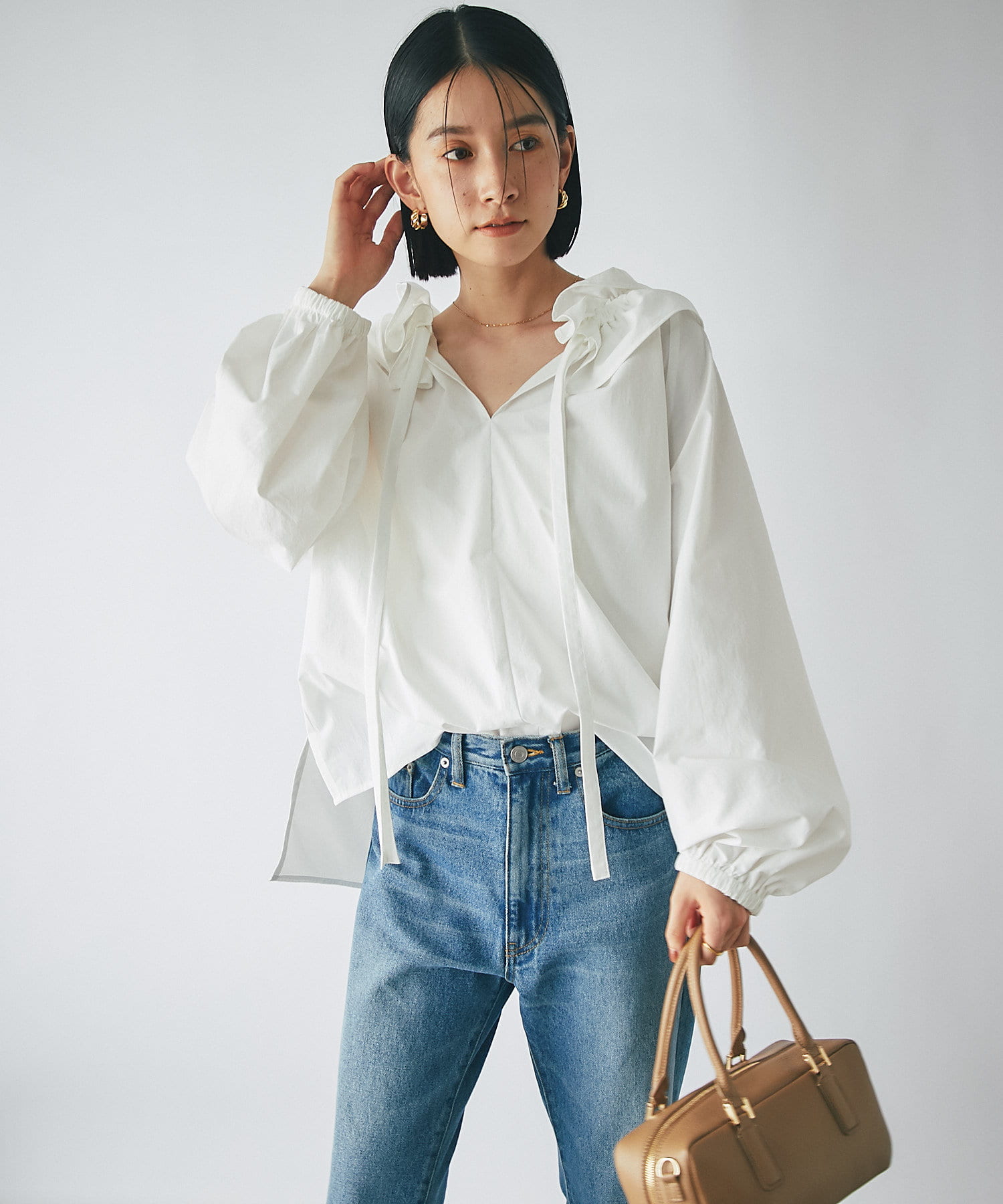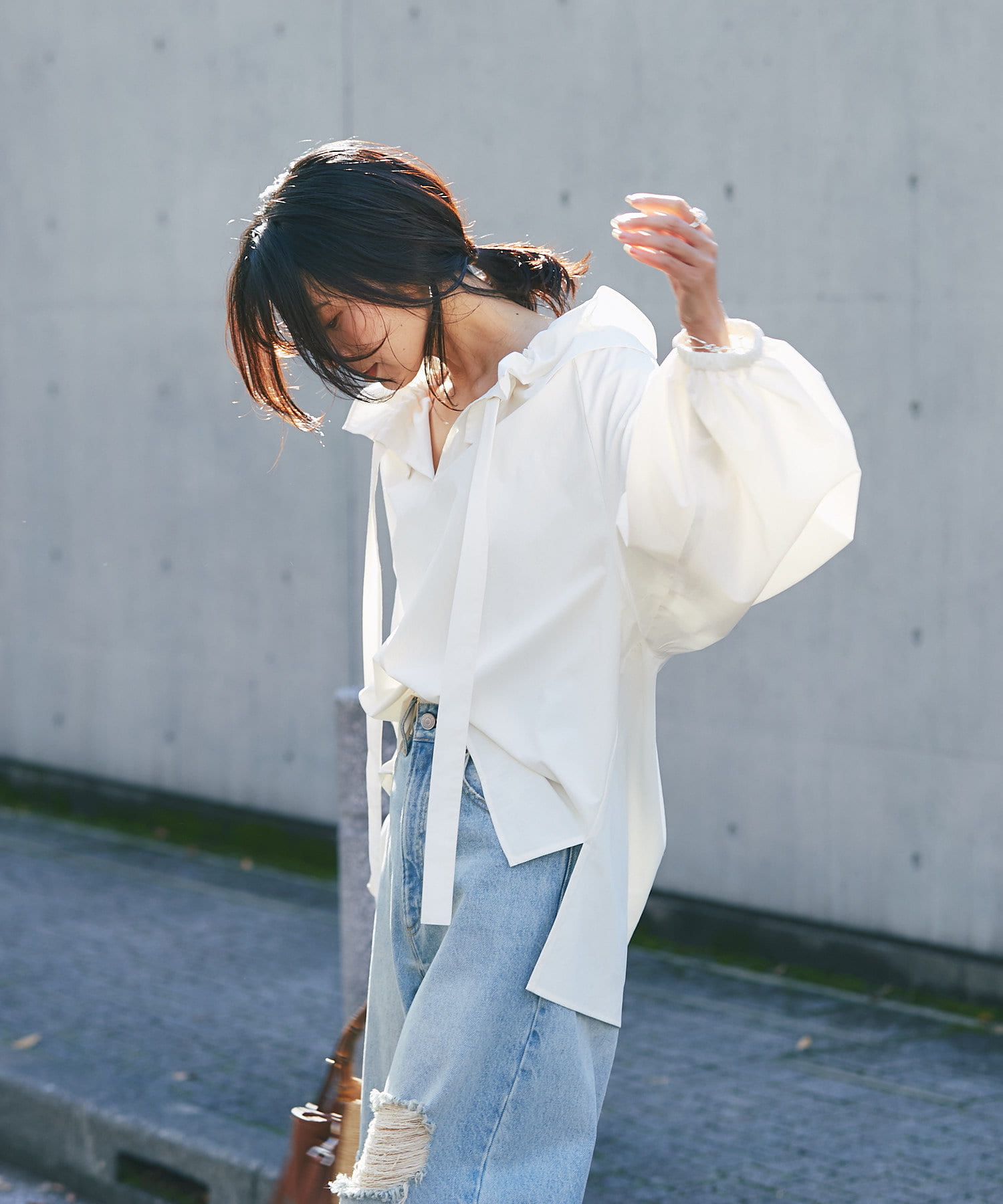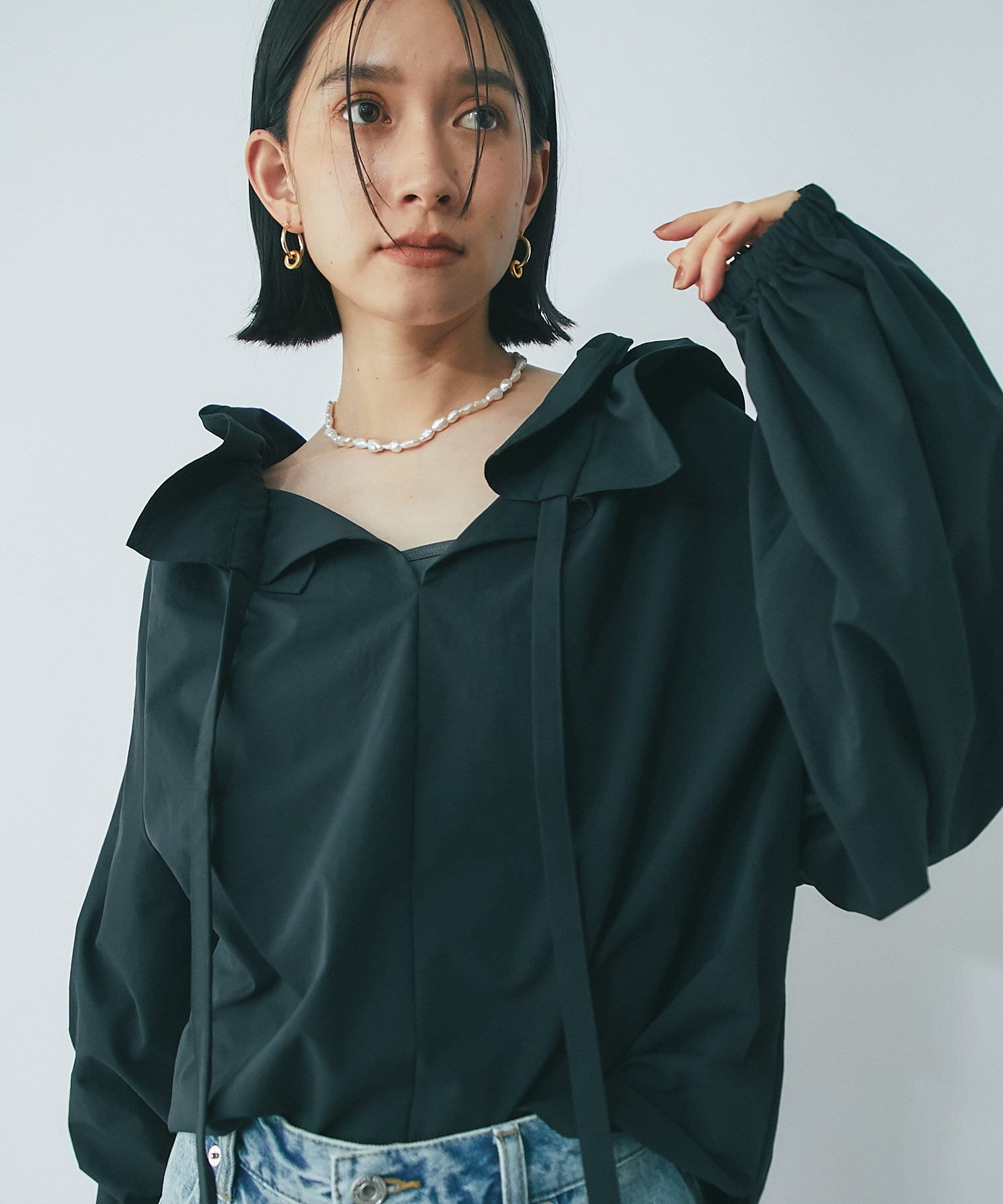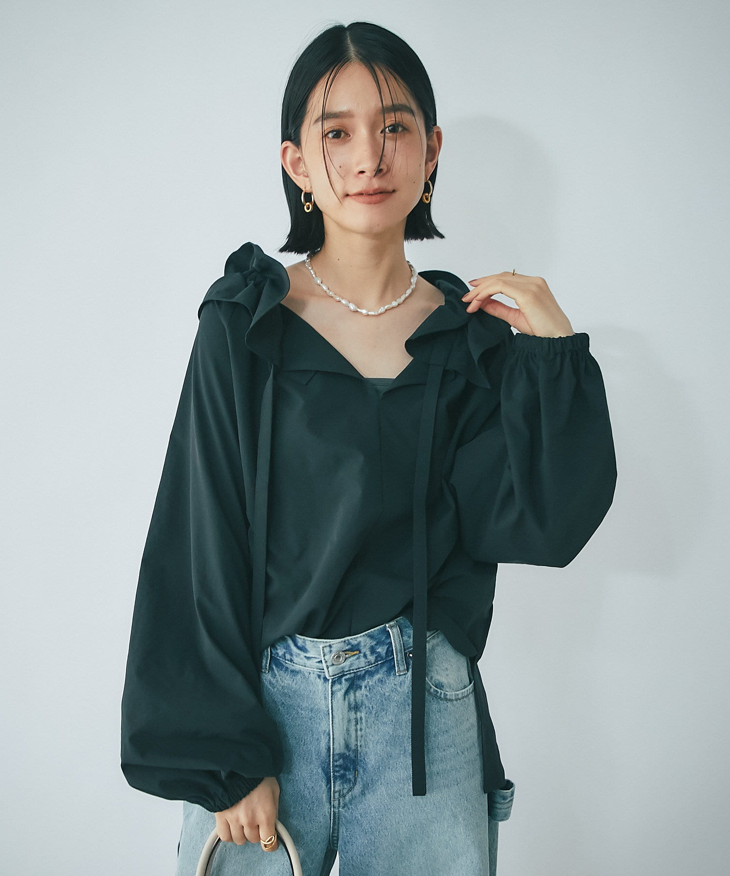 【スタイリングにプラスしたい!】ギャザーフリルカラーブラウス