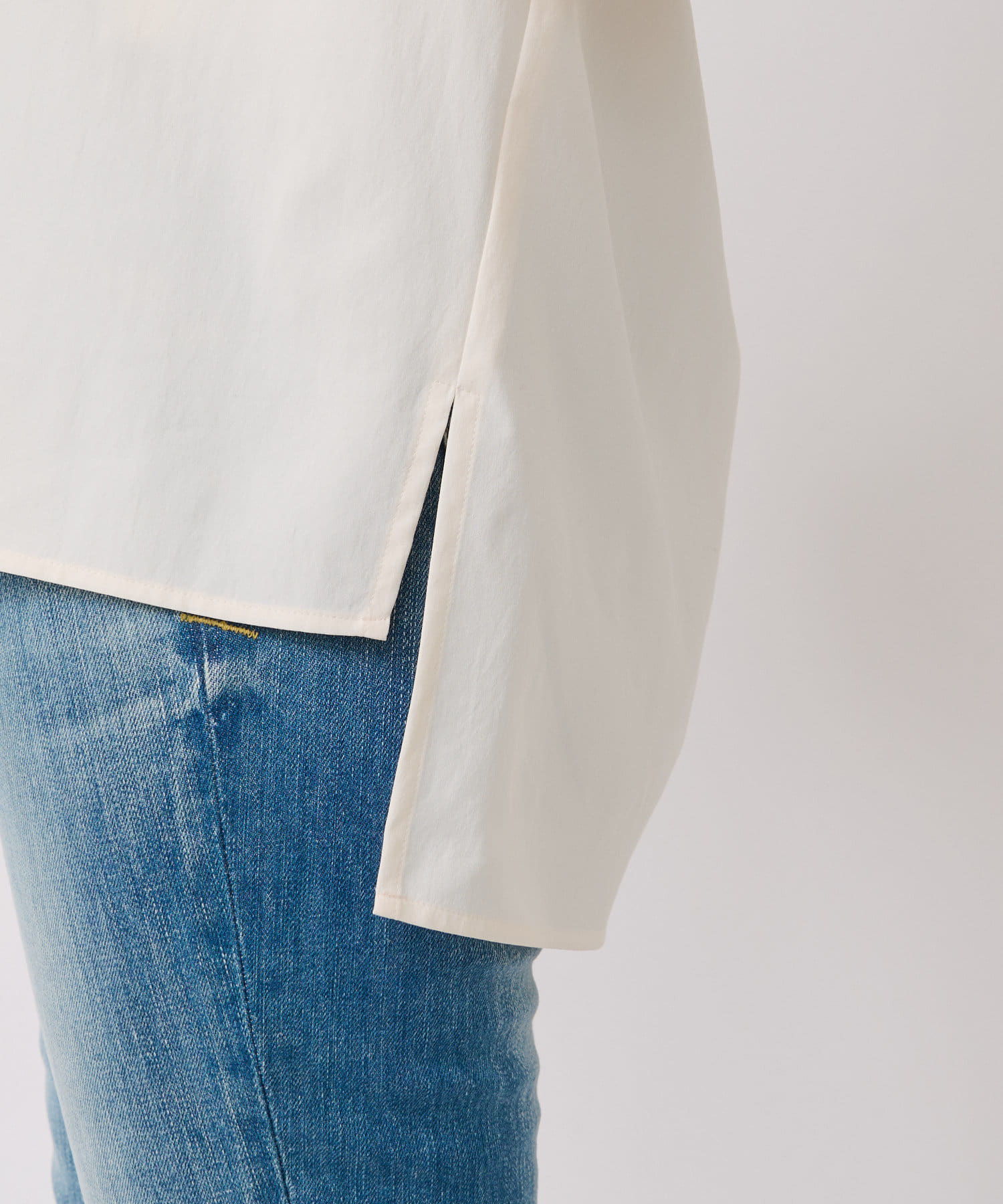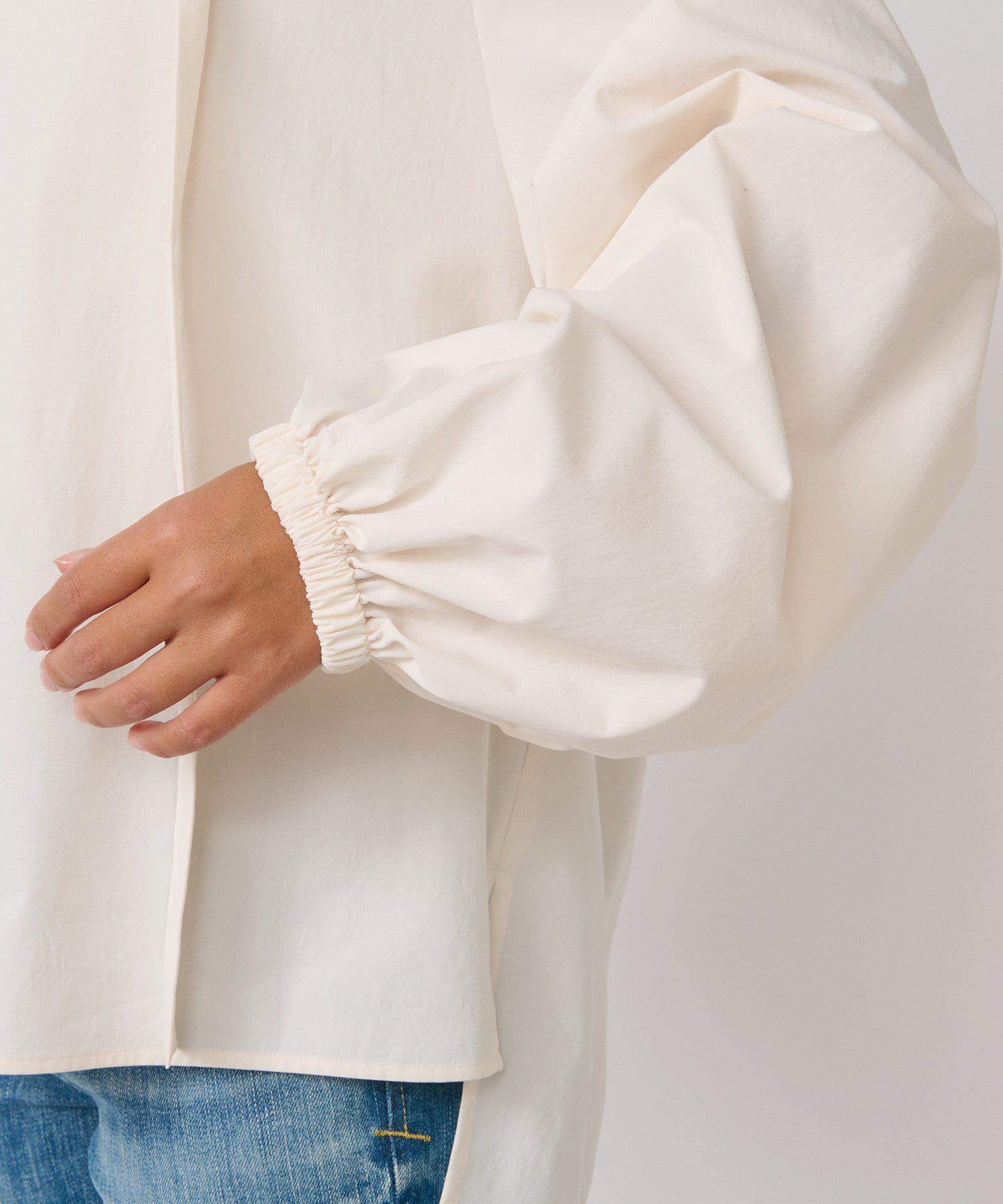袖口はギャザーが寄ったゴム仕様になっているので、より軽やかな印象の一枚です。