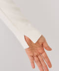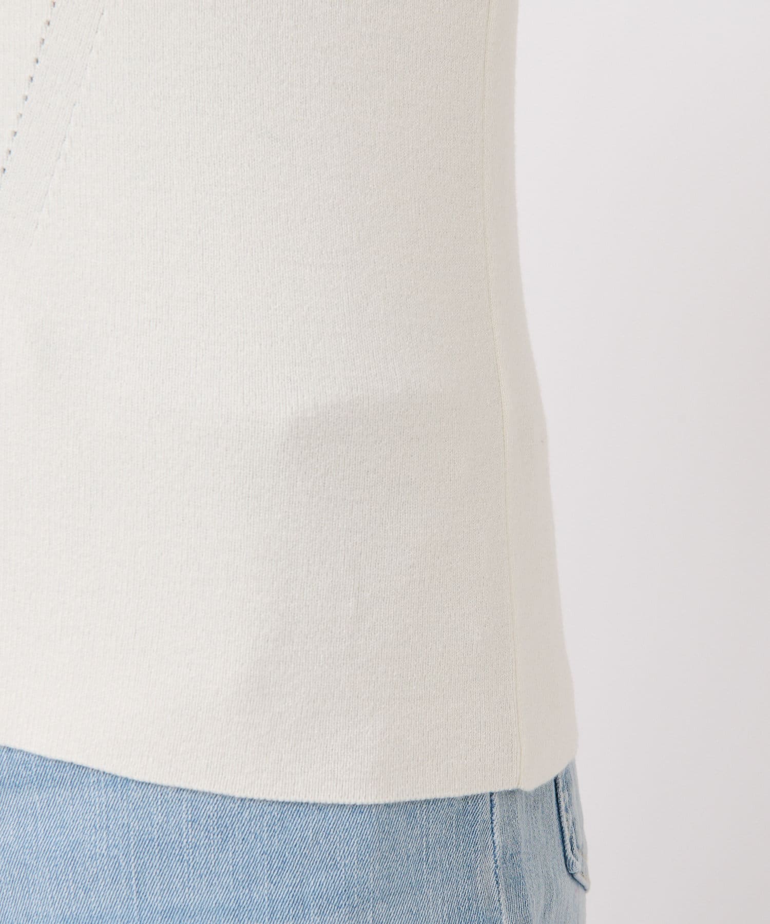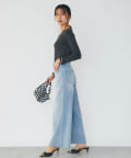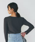 ⇒ジャストなサイズ感で着ていただくアイテムのため、フィット感はありますが肉感は拾わずに程よく身体に沿うようなシルエットです。インナーのラインが気になる際はシームレスのインナーを着用していただくとよりきれいに着ていただけます。