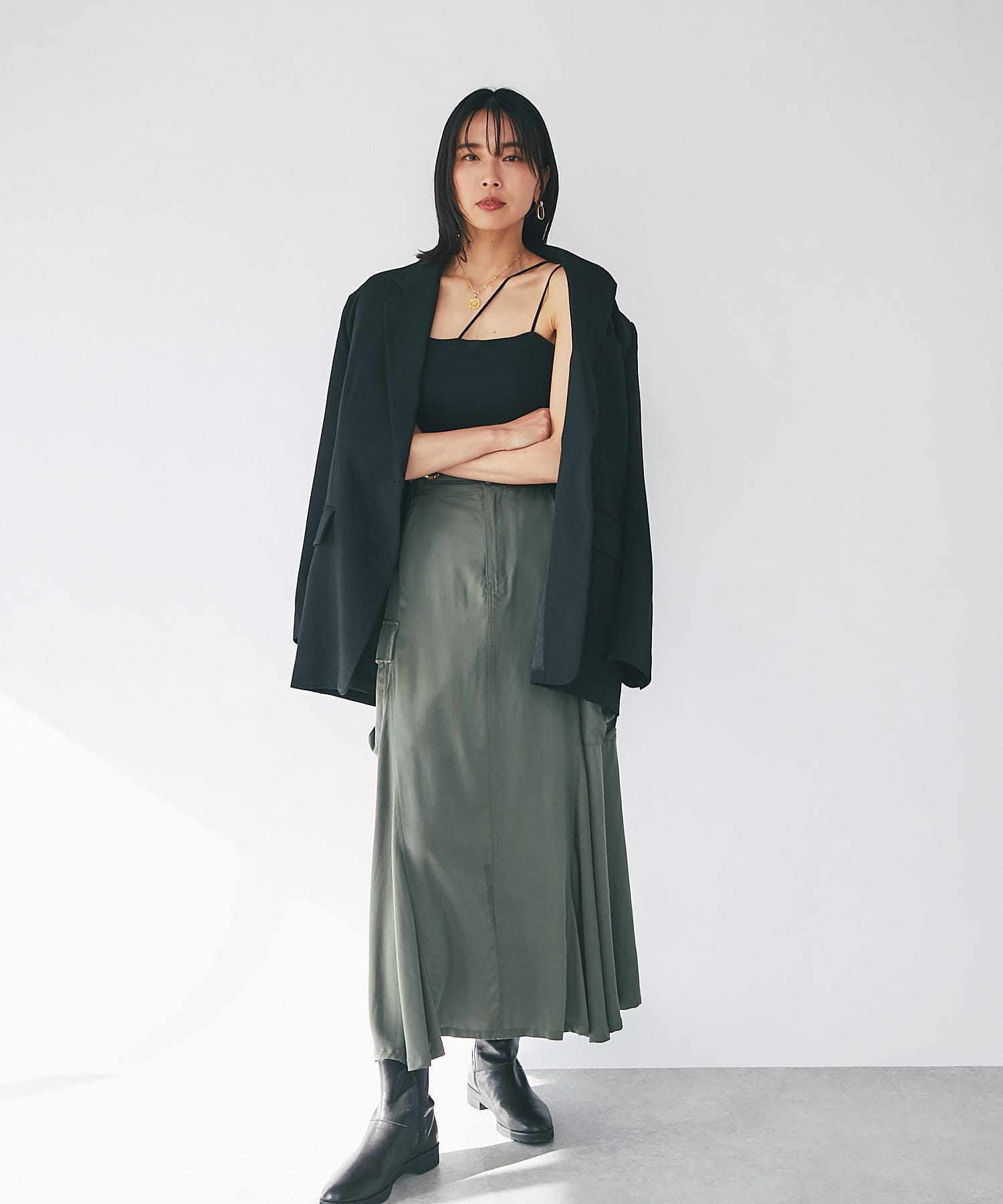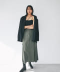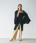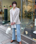 ゆったりとしたサイズ感でVカーデやフーディスエットなど防寒アイテムもインナーに仕込めるため、シーズンのスイッチにも活躍するアイテムとなっています。