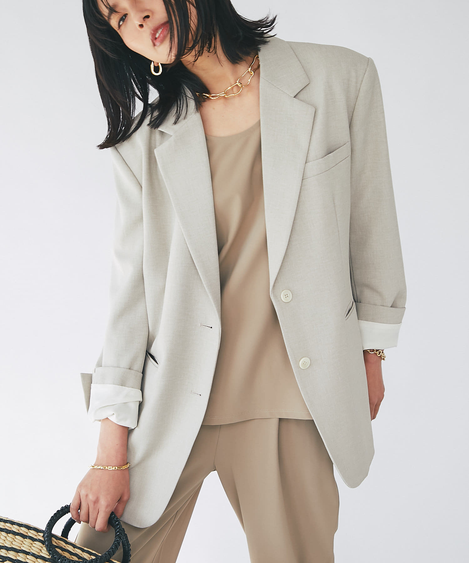 マスキュリンなテーラリングを軸にした今季らしいオーバーサイズジャケット。