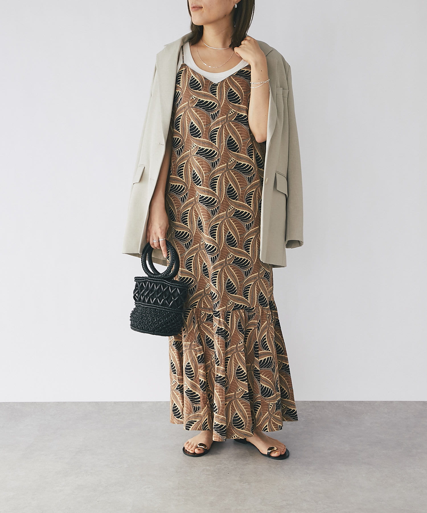 暖かくなってきたらキャミソールの上からバサッと羽織って、女性らしさがのぞく肌見せスタイルもおすすめです。