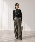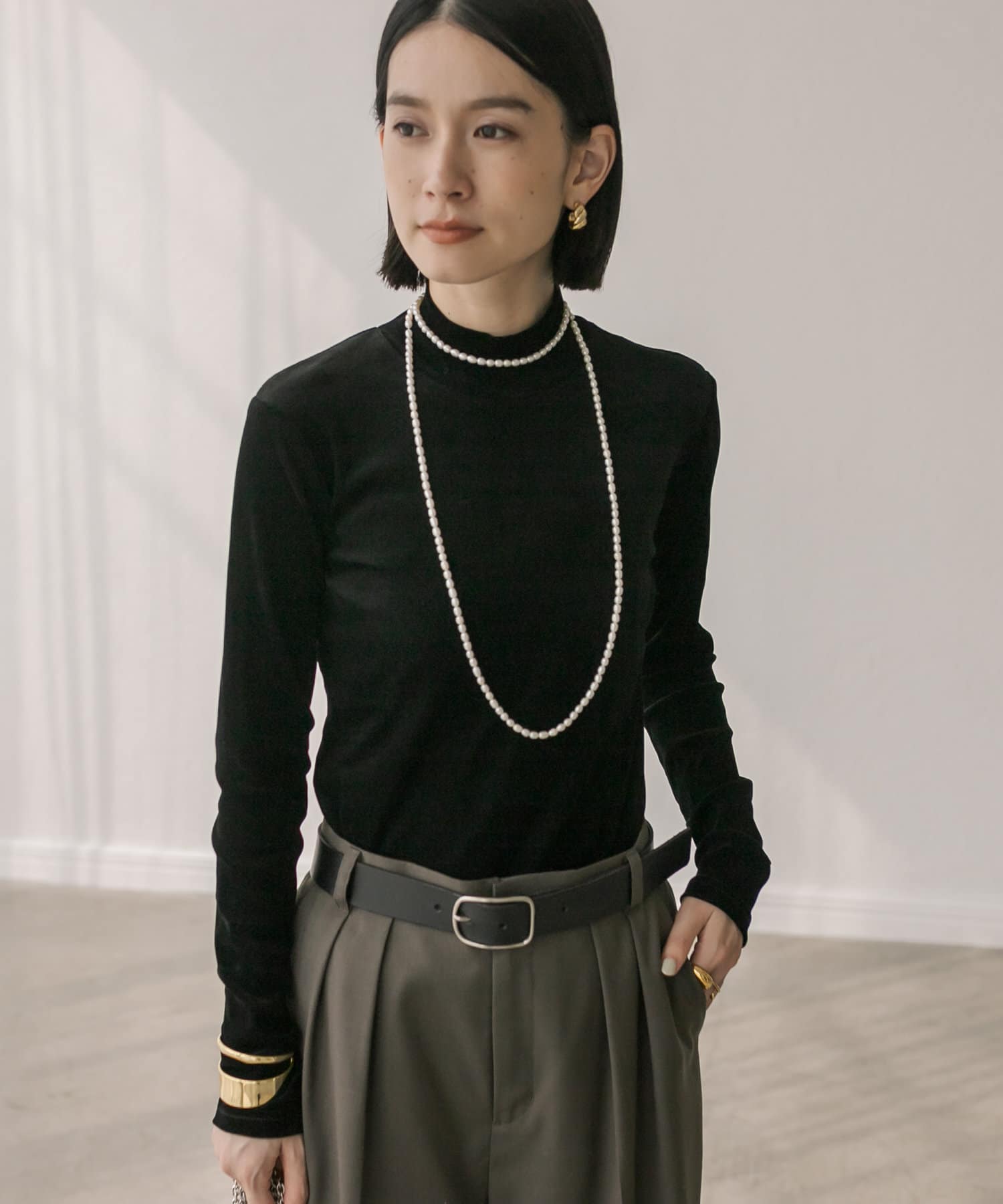 ⇒Tシャツやデニムと合わせたスタイルがおすすめ!カジュアルな要素が強めのアイテムを使ったコーディネートも、パールネックレスと合わせると女性らしさが覗くスタイルに早変わり。スタイリングのはずしアイテムとしてカジュアル好きさんにもおすすめのアイテムです。