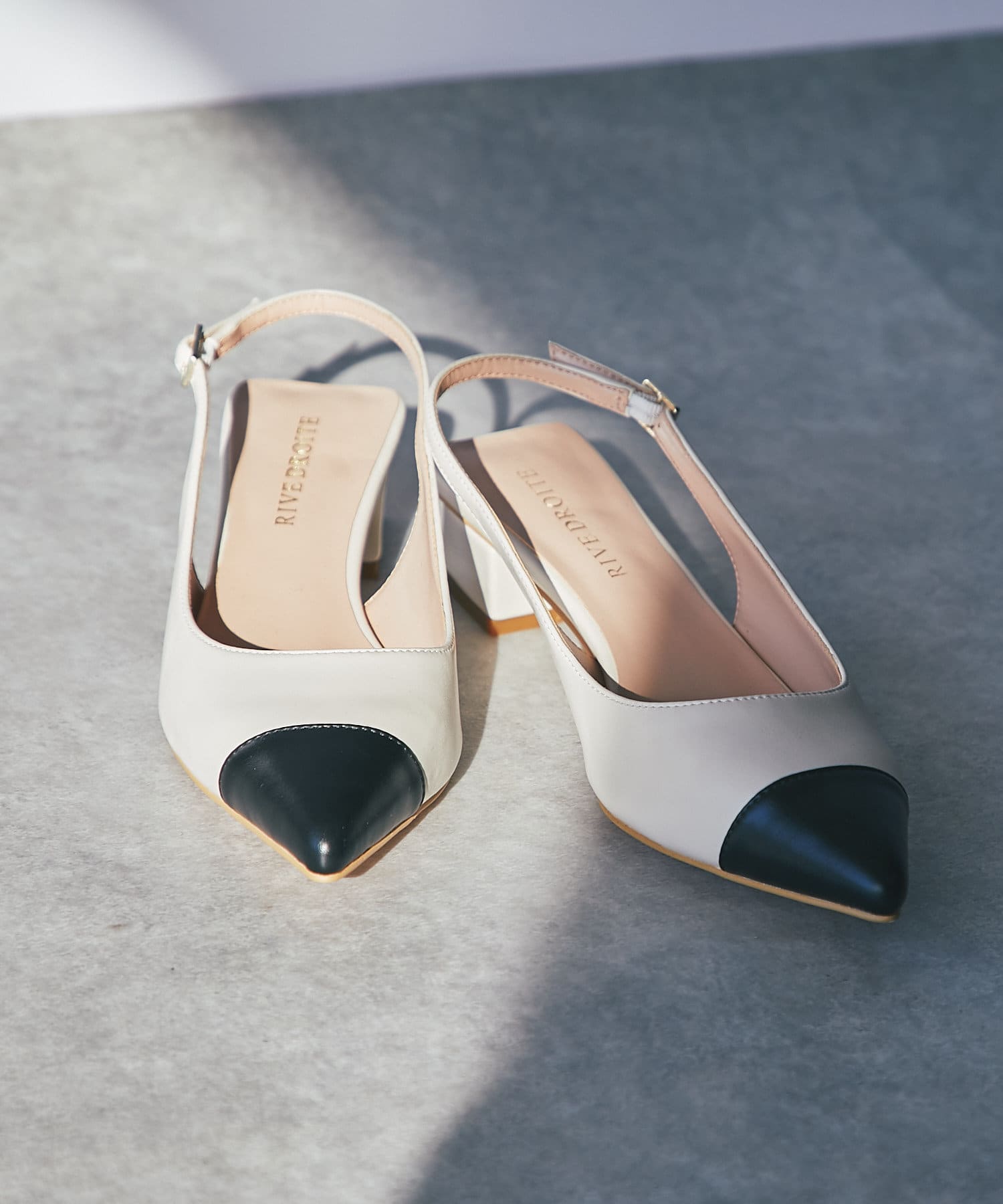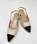 大人の足元を上品に演出するバイカラーパンプス。