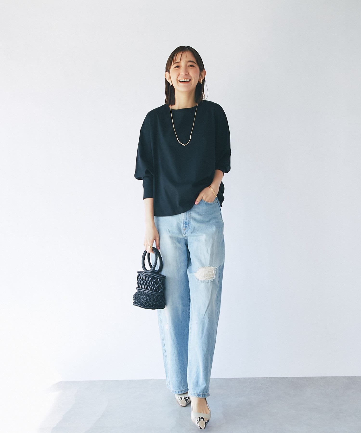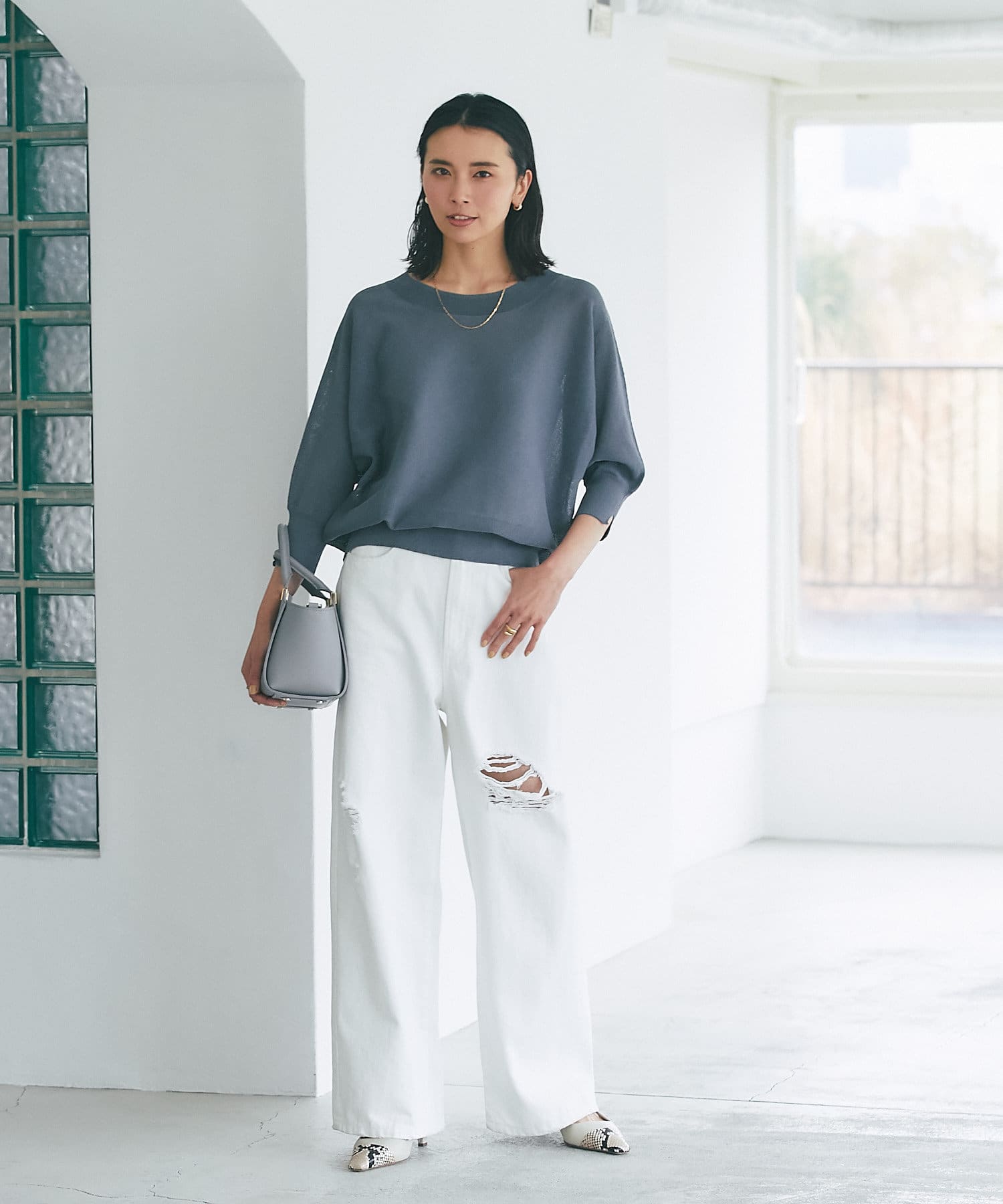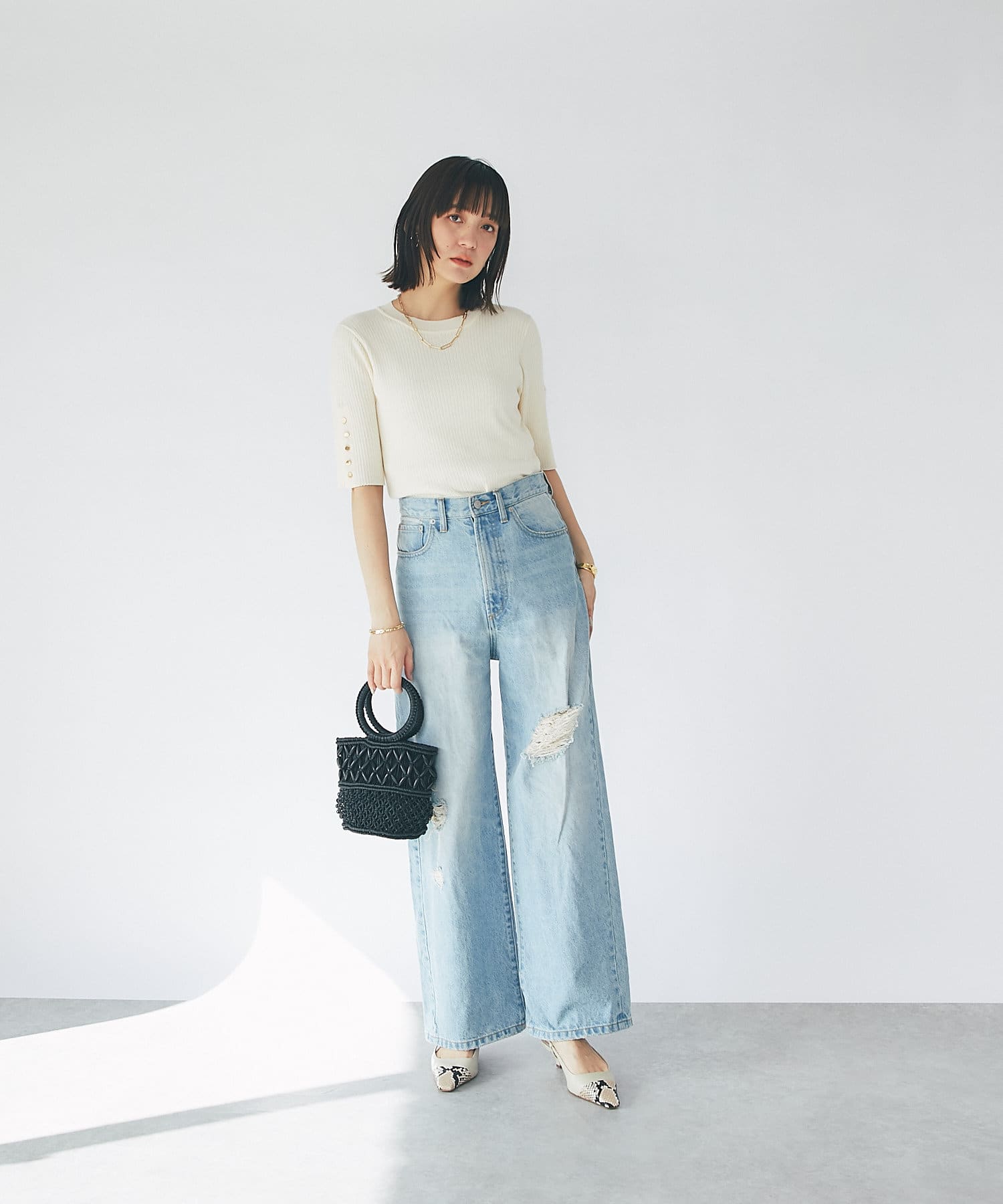 今季らしくデニムと合わせたり、キレイめなパンツ/タイトスカートと合わせたコーディネートがおすすめです。