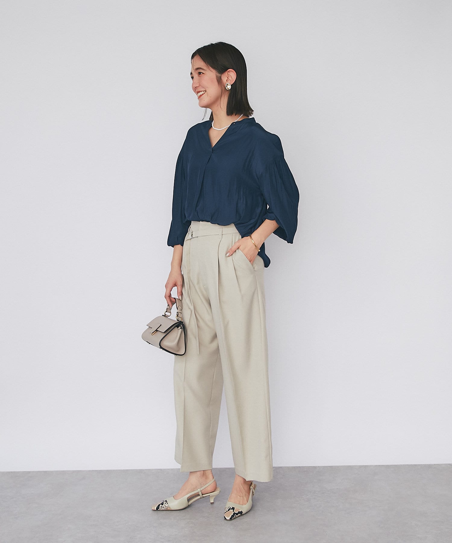 上品で洗練されたデザインは飽きが来ず、どんなコーディネートも女性らしい雰囲気に仕上がるのはファビオルスコーニならでは。