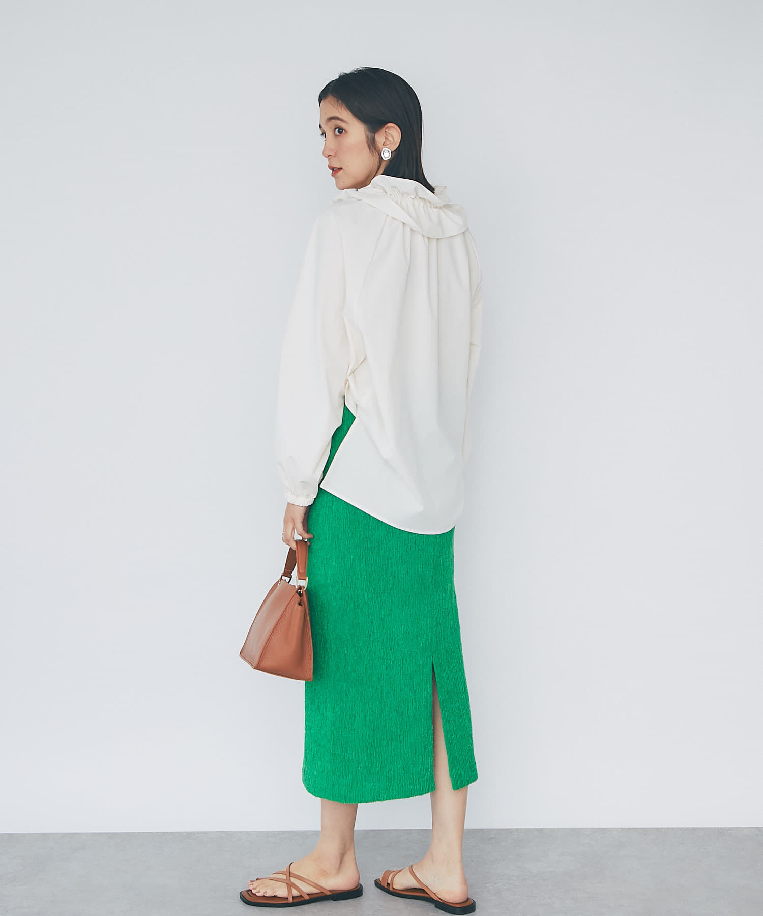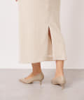 伸縮性のある柔らかい素材感なので履き心地が良く、後ろ中心にスリットがあるため足さばきが良く歩きやすいのもポイント。