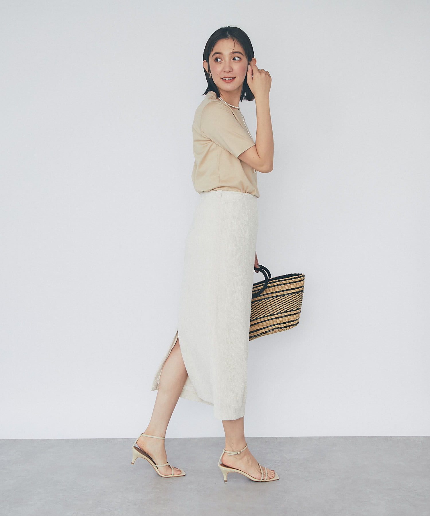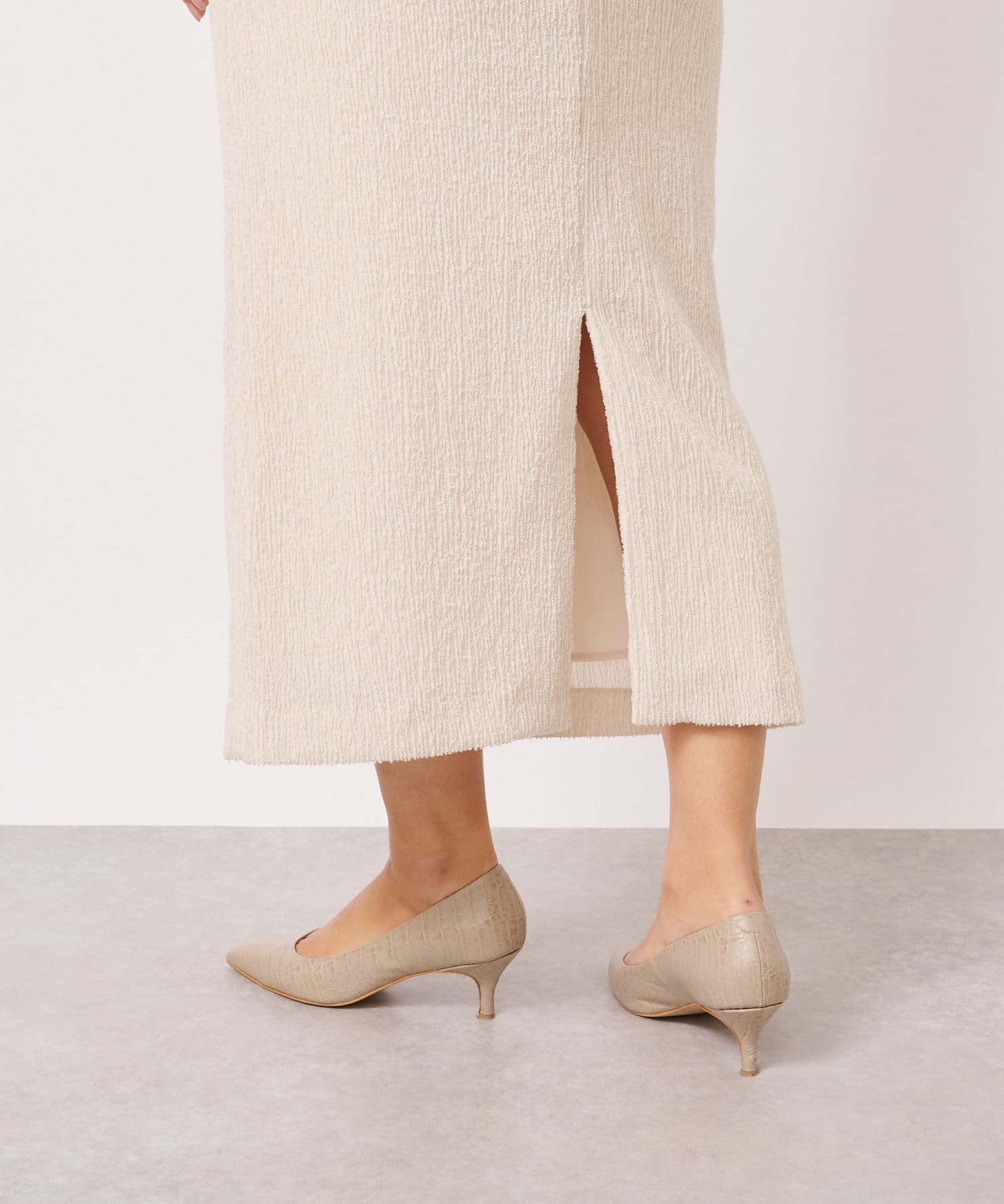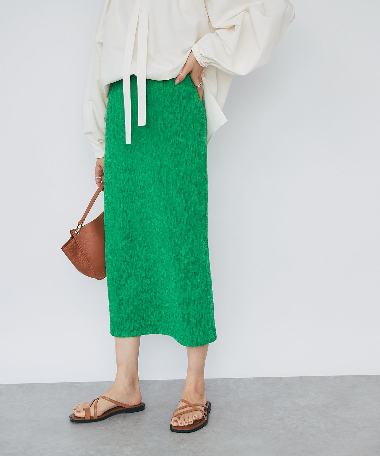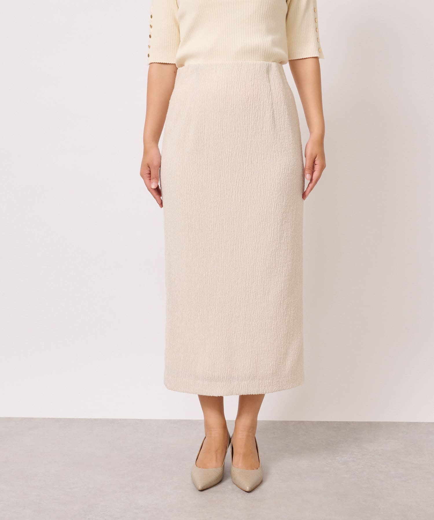 ポコポコとした生地の表面感が可愛いタイトスカート。