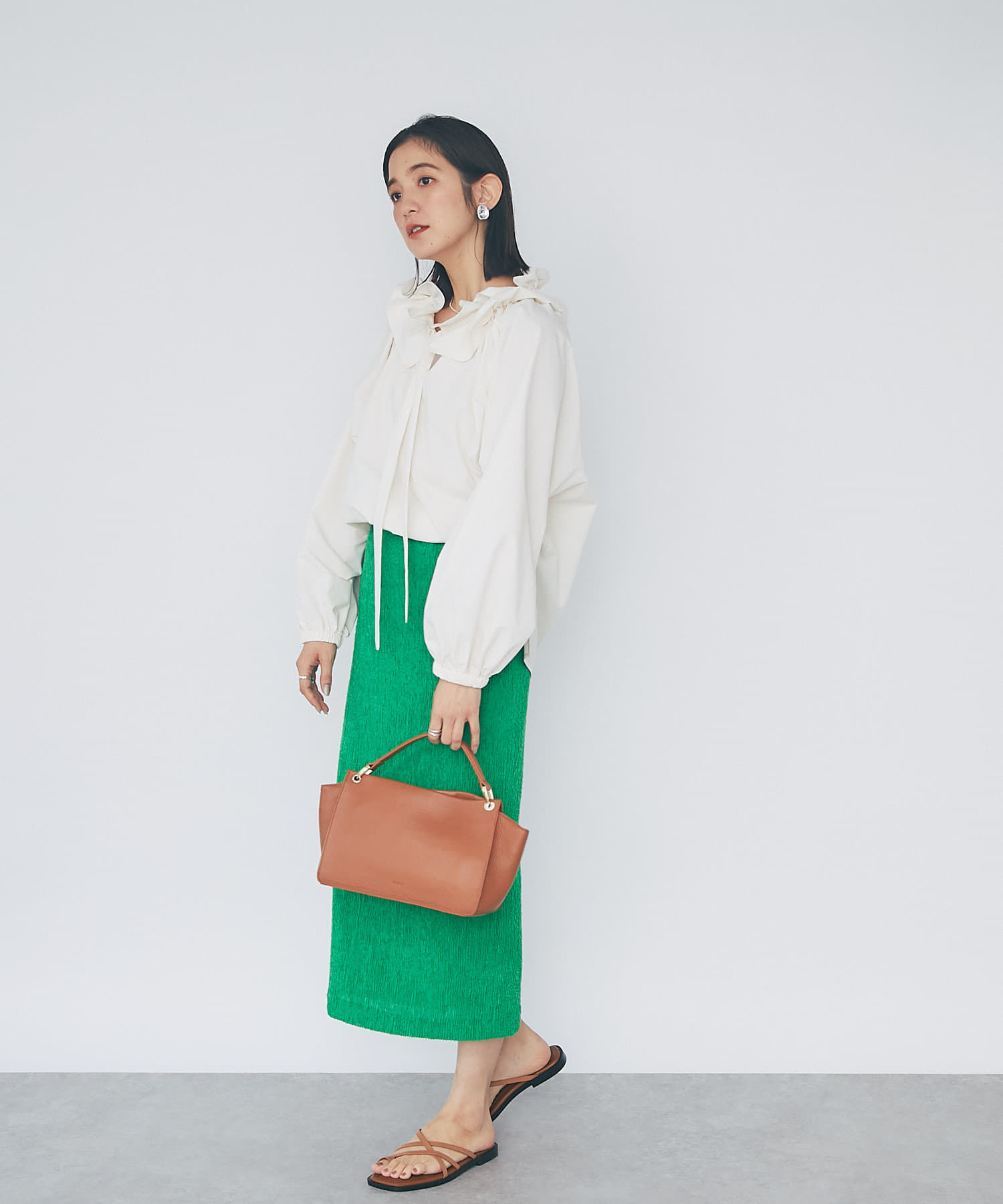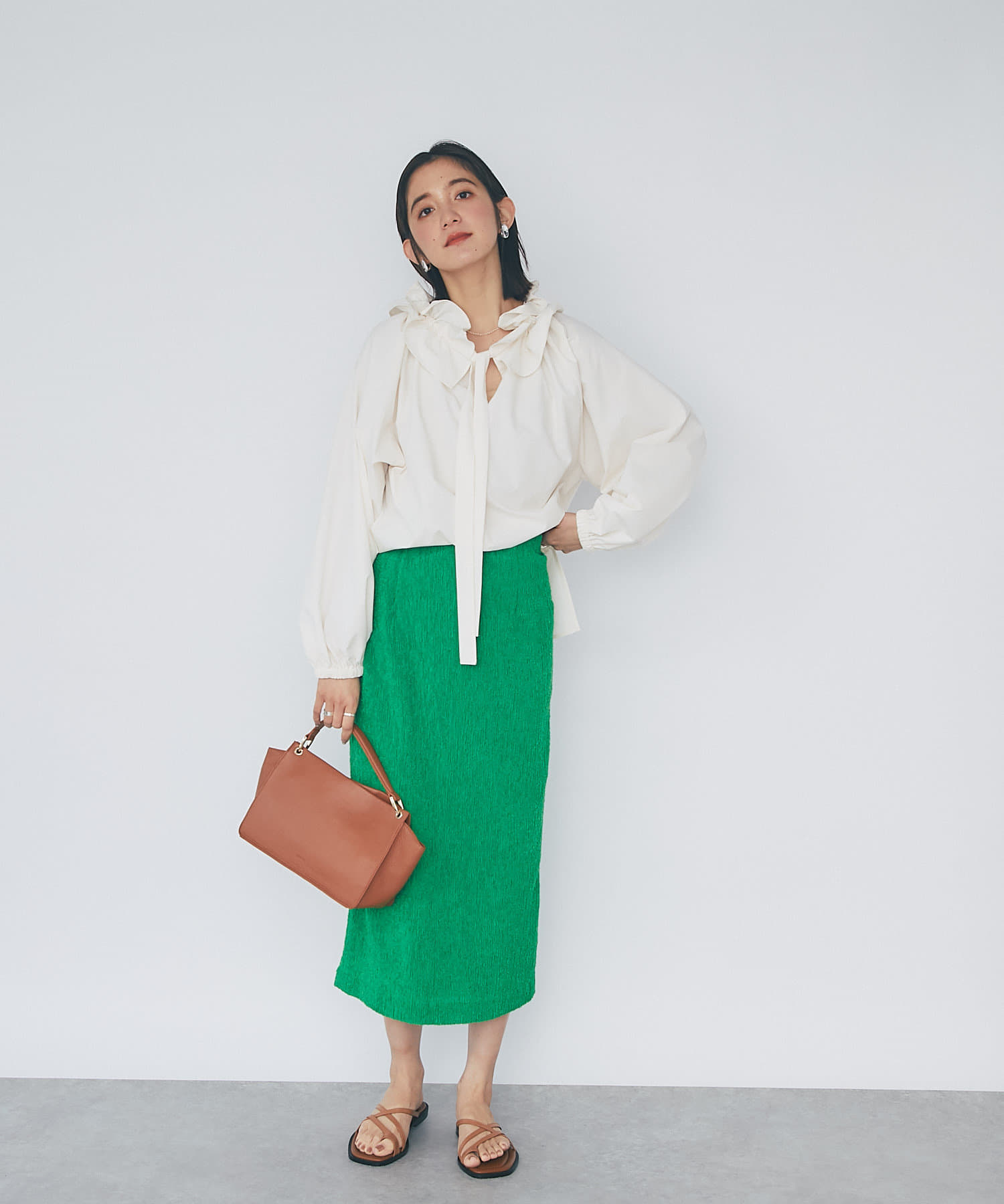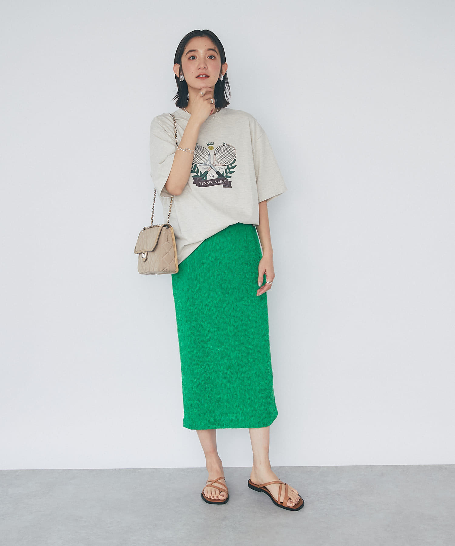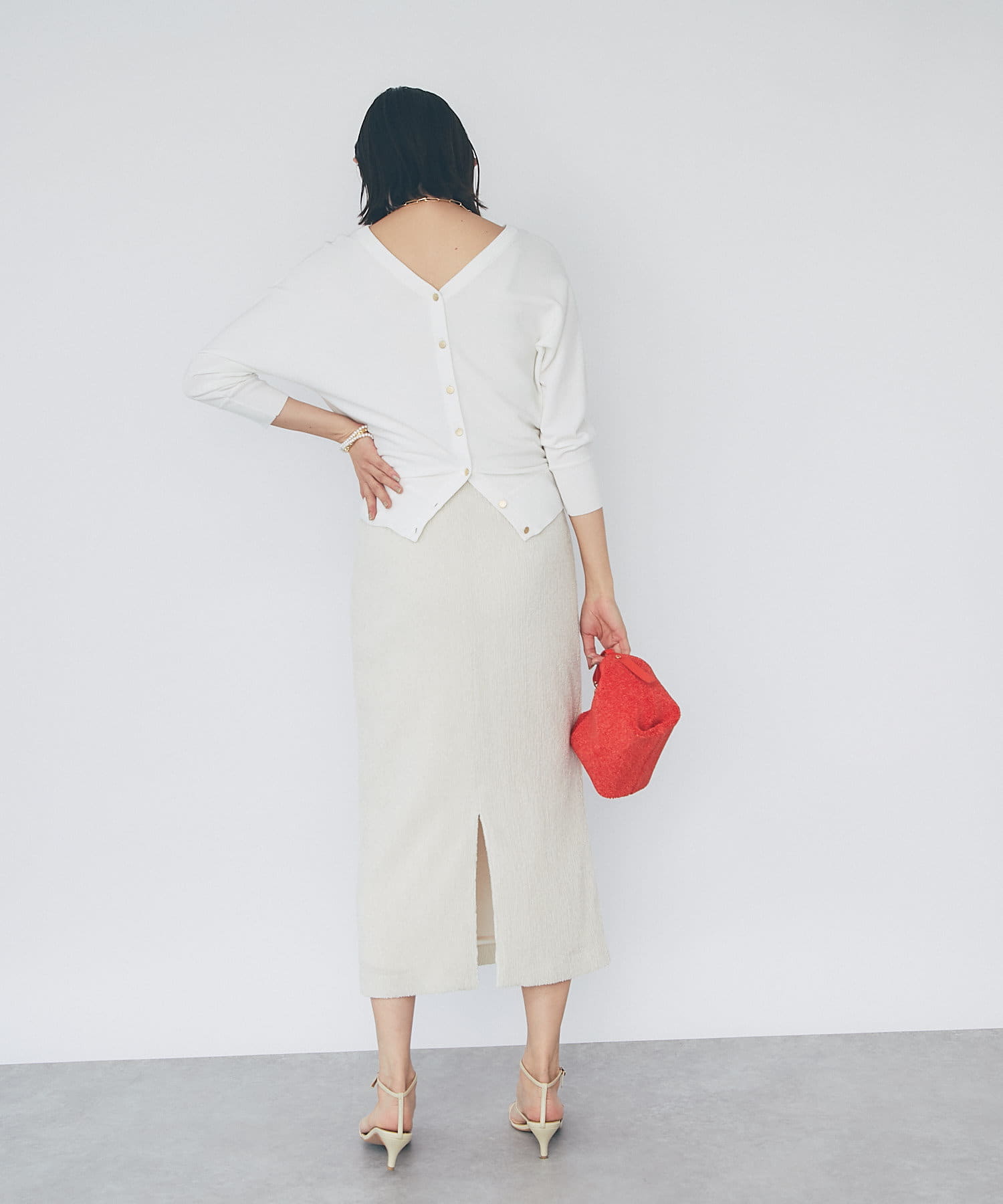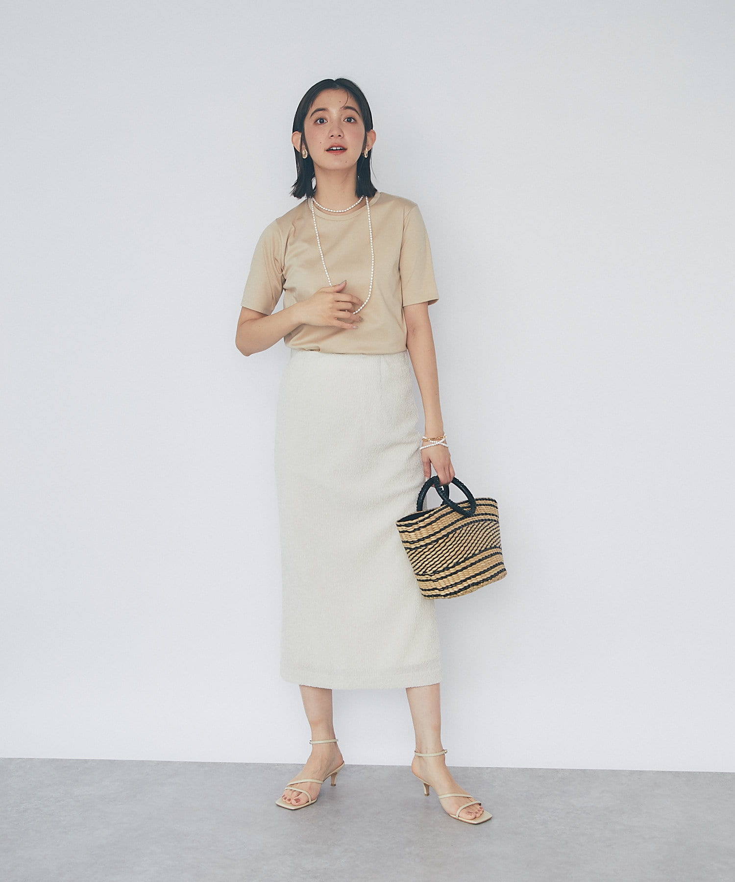 ポコポコとした生地の表面感が可愛いタイトスカート。