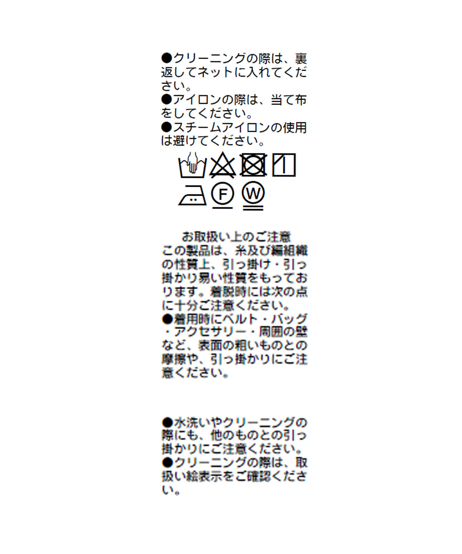 ⇒立体的な素材感が印象的なスカート。細やかな生地感でざっくりとしていないぶん引っ掛かりにくいです。細いフック上のものや木の木目、針などには引っ掛かる恐れがあるため、お洗濯の際一緒に洗うものや椅子の材質などには注意してください。