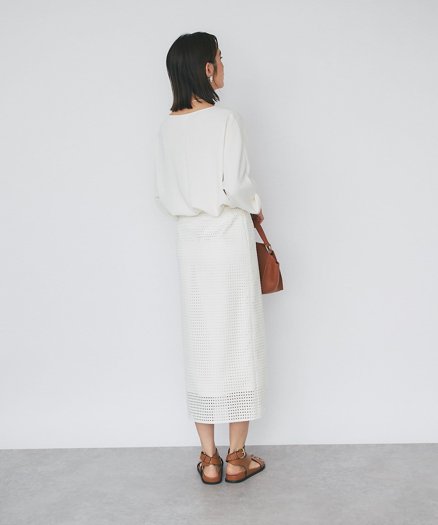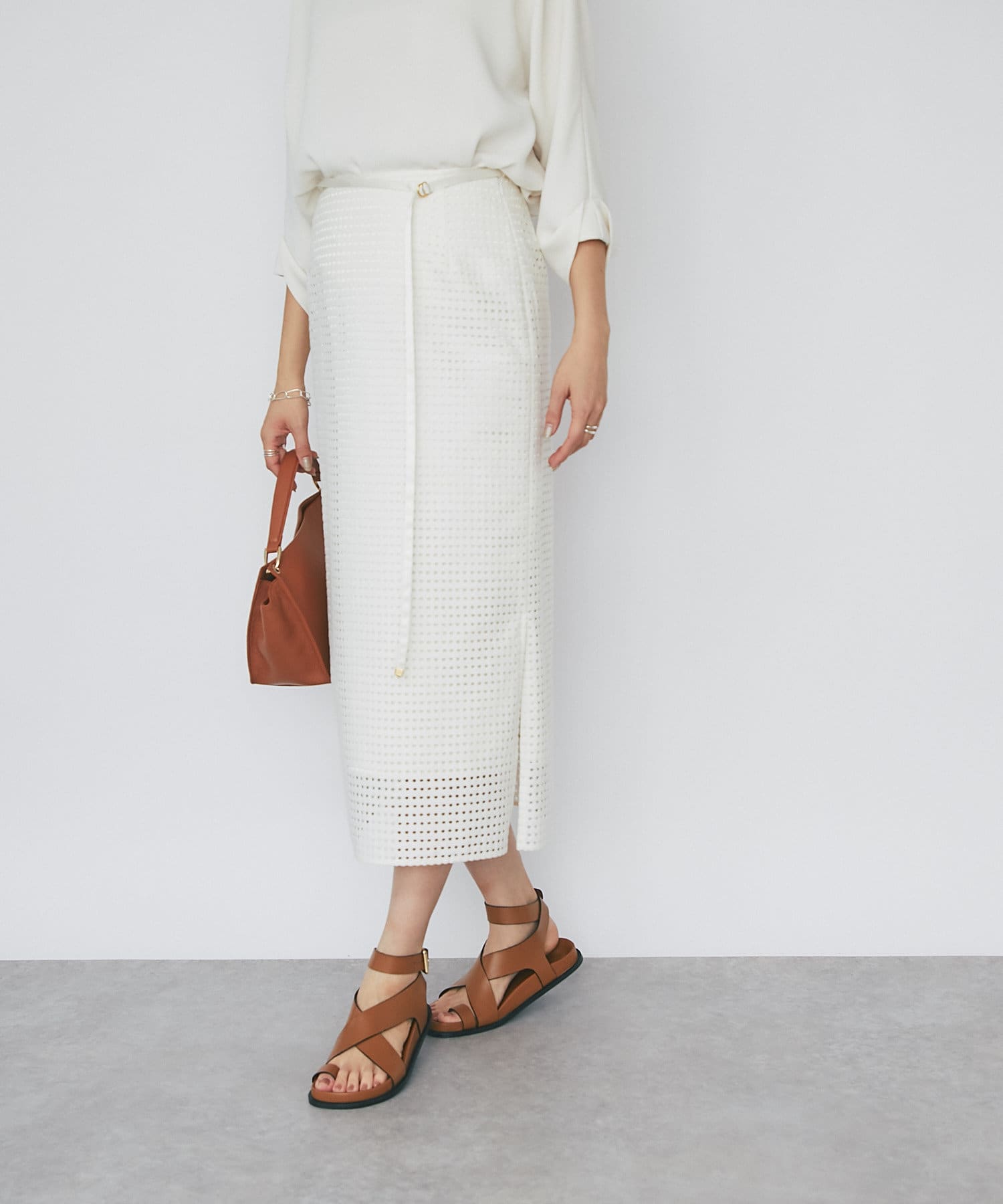 【クリーンな雰囲気が今っぽい】ドットレースタイトスカート